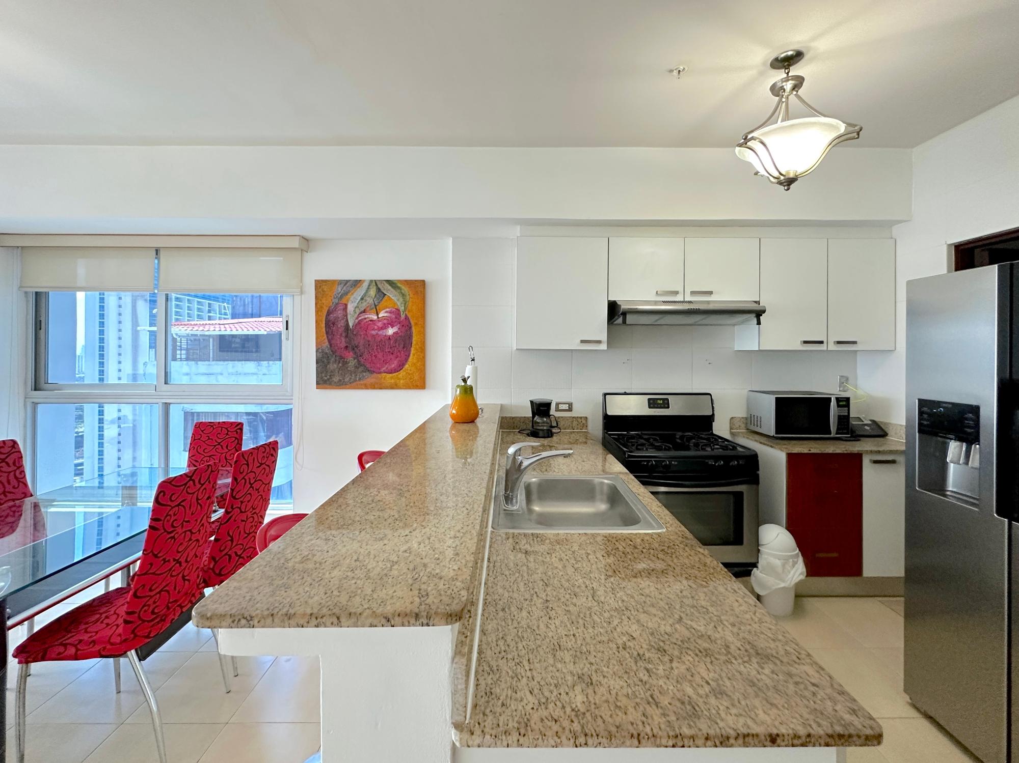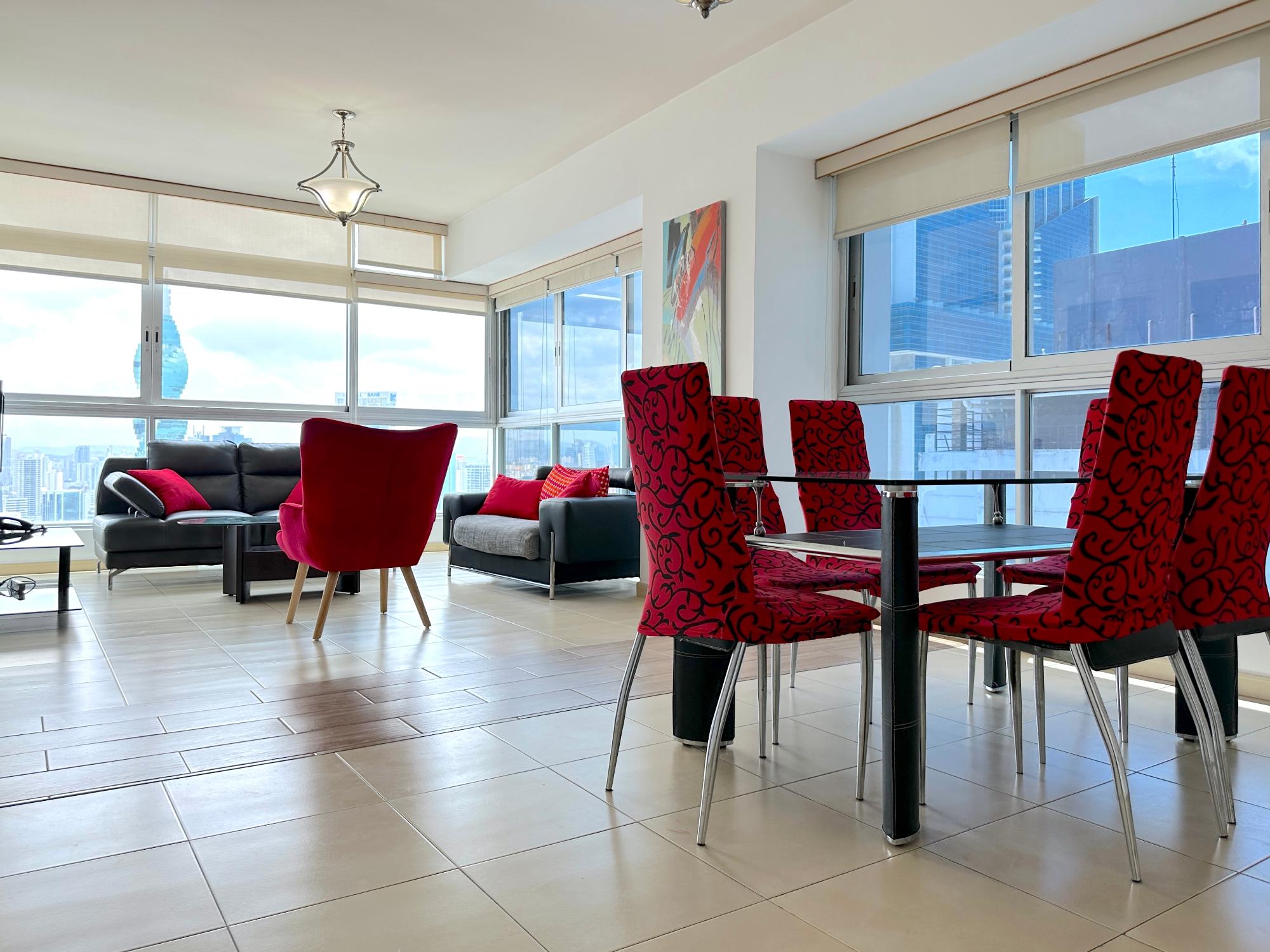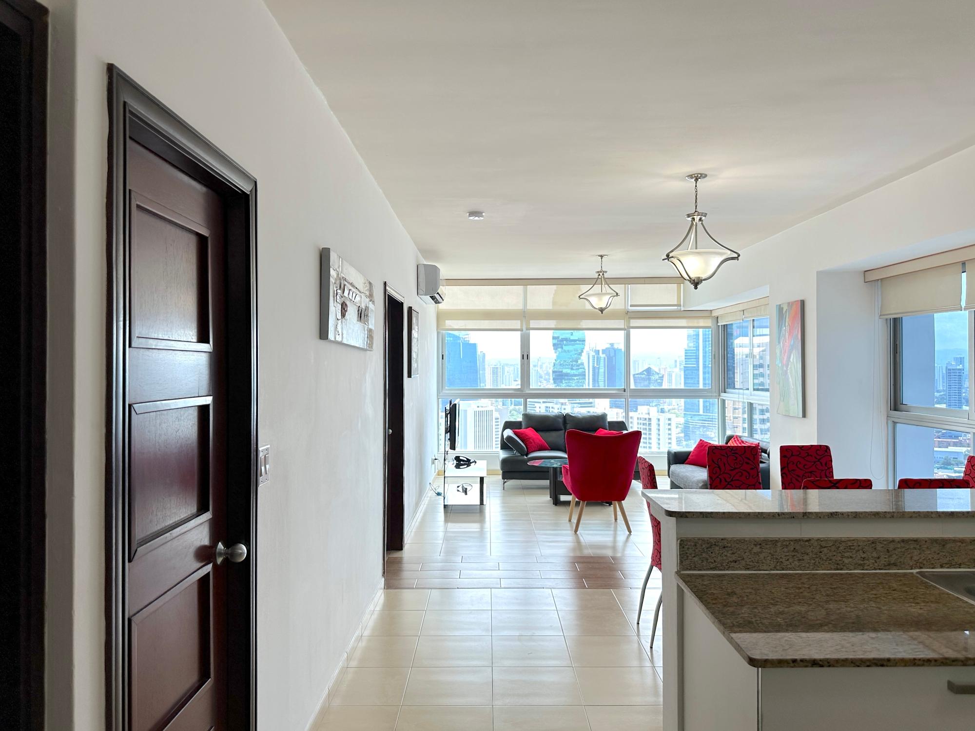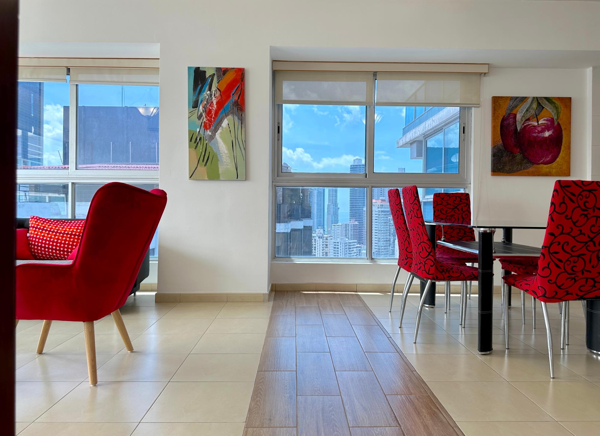 Panama Home Realty offers our distinguished clients a wonderful apartment located on Avenida Balboa with exceptional views of Panama City and the bay. From the building itself, you can walk to the Multicentro shopping center in less than 5 minutes. The apartment building has excellent security, with a doorman who verifies the entry of all visitors. The apartment is 96 square meters with two bedrooms and two bathrooms, a spacious living room with a beautiful ocean view and views of beautiful Panama City. The Tower enjoys beautiful views of the sea and the city. The nearest shopping centers are just a 5-minute walk from the property, where you will find the nearest restaurants, bars, and nightlife on Uruguay Street, just a 10-minute walk away. It is a 15-minute walk to the tourist center of the Old Town, a 15-minute drive to Panama la Vieja, and a 20-minute drive to the Albrook Shopping Center and many other shops. The Panama Canal is a half-hour drive away. This luxury building offers air-conditioned facilities including a lobby with 24-hour reception, a safe, a cloakroom, and an elevator. It features fully furnished apartments with high standards and state-of-the-art architecture. Sports enthusiasts can work out in the gym or relax in the sauna.