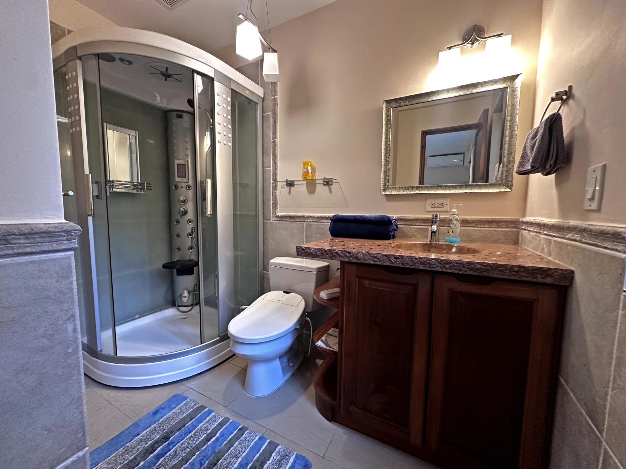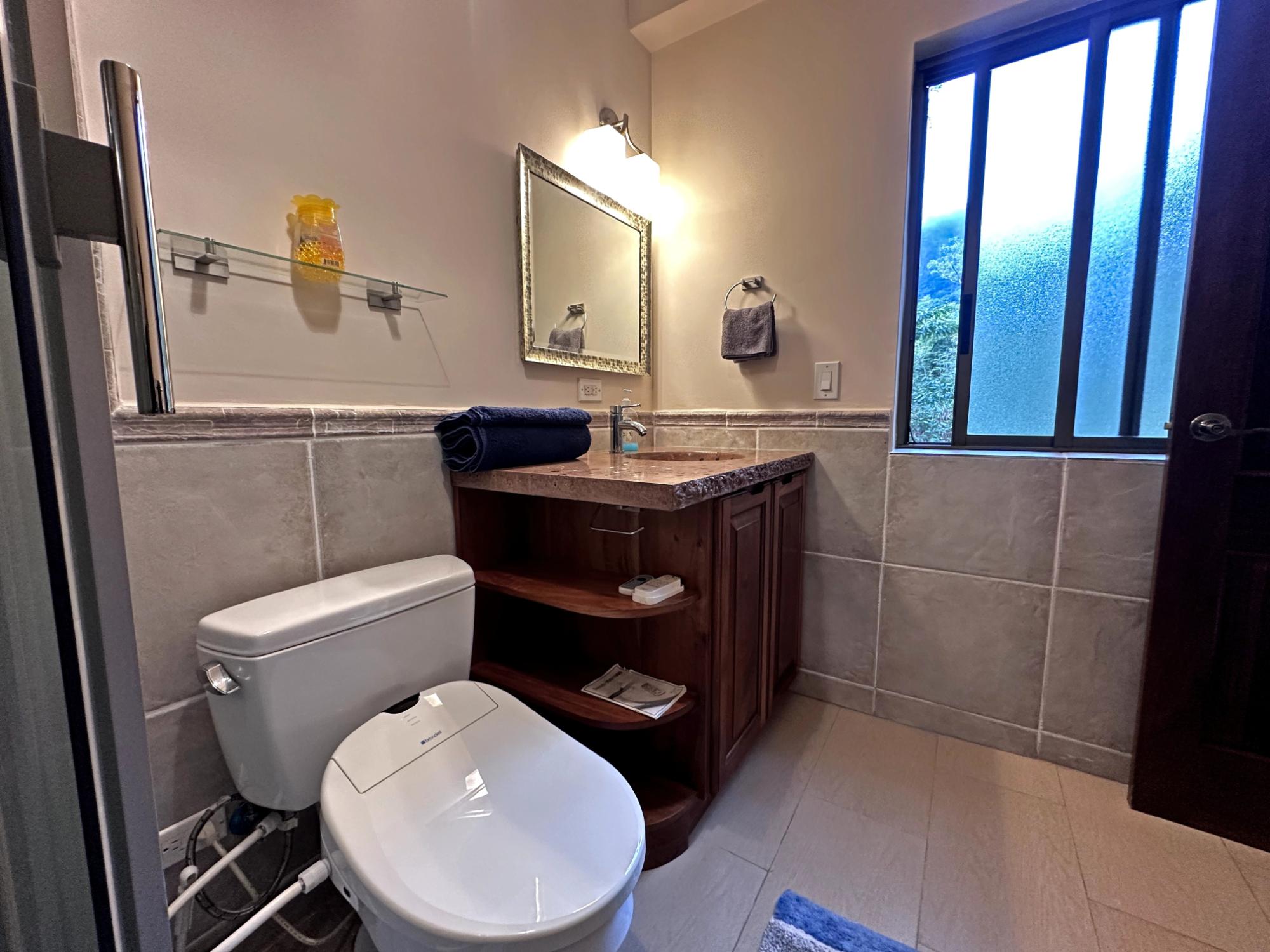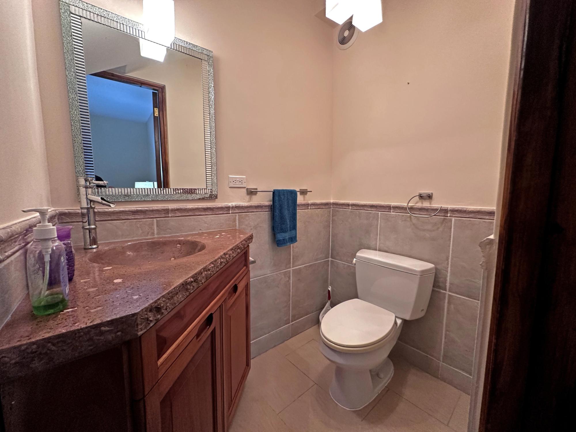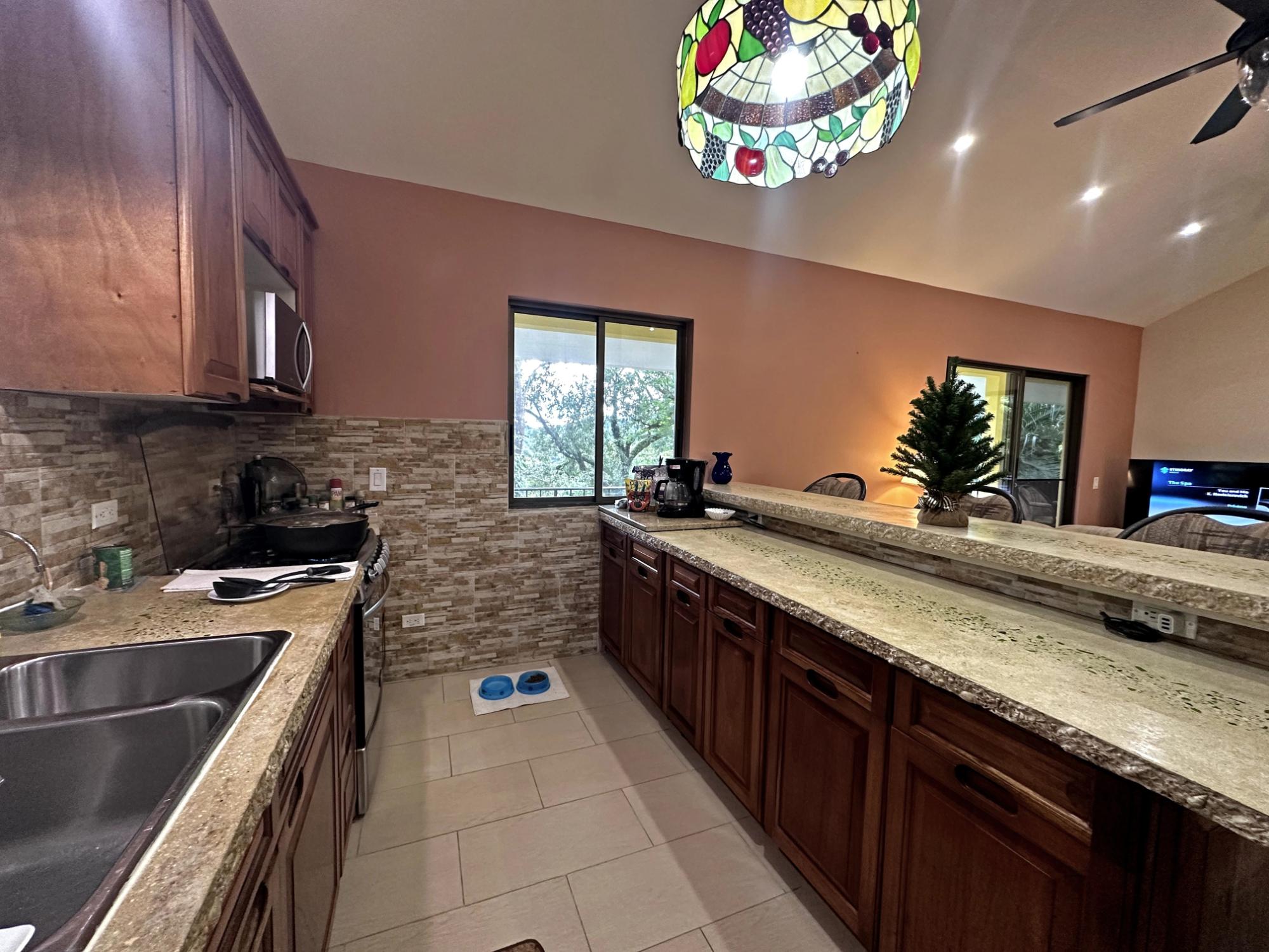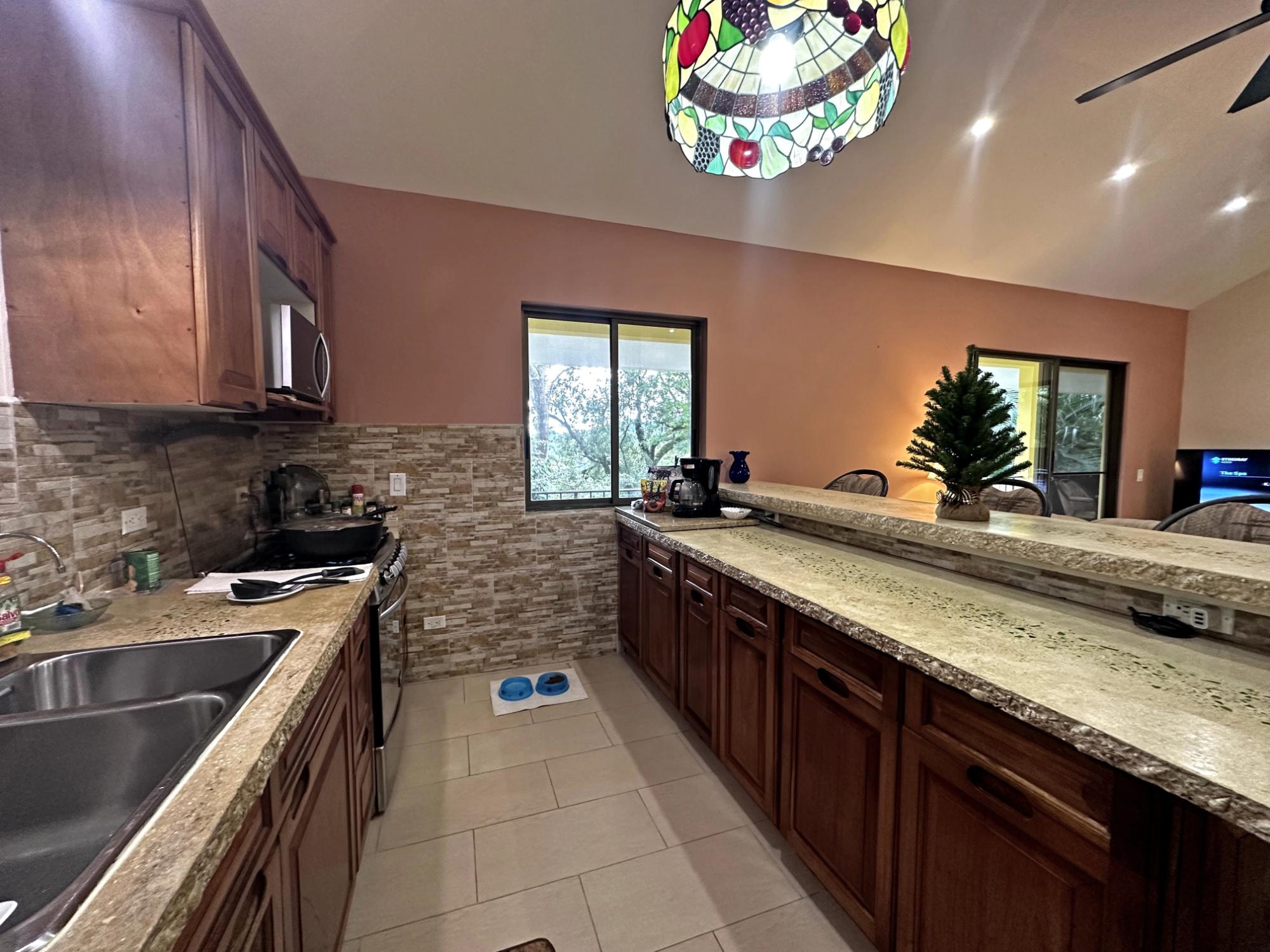 Located in the exclusive mountain community of Altos del María, Chame (Sora), at 500 meters above sea level. This property offers a perfect blend of comfort, privacy, and stunning natural surroundings. **Layout** - **Lot size**: 1,468 m² - **Construction**: 241 m² - **American-style floor plan**: - 3 bedrooms, all with 7'x7' sliding glass doors providing natural light and spectacular views. - Master bedroom: king-size bed, custom-made headboard, spacious walk-in closet with a safe, and ensuite bathroom. - Second bedroom: queen-size bed and ensuite bathroom. - 2.5 bathrooms in total. - Living room with two large sliding glass doors offering views and access to the outdoor spaces. - Spacious **covered terrace** with views of Cerro Picacho and direct access to the pool. - Kitchen equipped with high-quality appliances (Panasonic refrigerator, gas stove with oven, dishwasher, microwave) and custom countertops. - Laundry room with stacked washer/dryer combo, sink, and shelves. ### **Key Features** - **Exteriors**: - Private location at the end of a cul-de-sac, adjacent to a natural green zone. - Covered, tiled terrace with forest views. - Additional patio facing the sunrise, perfect for enjoying morning coffee. - Pool with night lighting, solar heating, and an automatic chemical system. - Spacious covered parking area with storage for garden tools. - Lush landscaping with mature trees and vibrant plants. A variety of beautiful birds visit the property. - **Finishes and Details**: - Spanish-style barrel