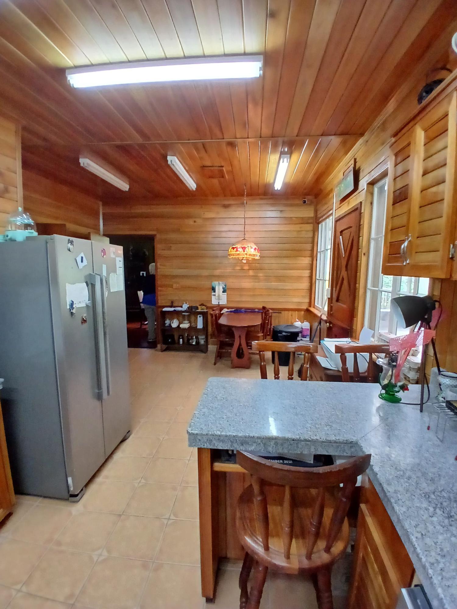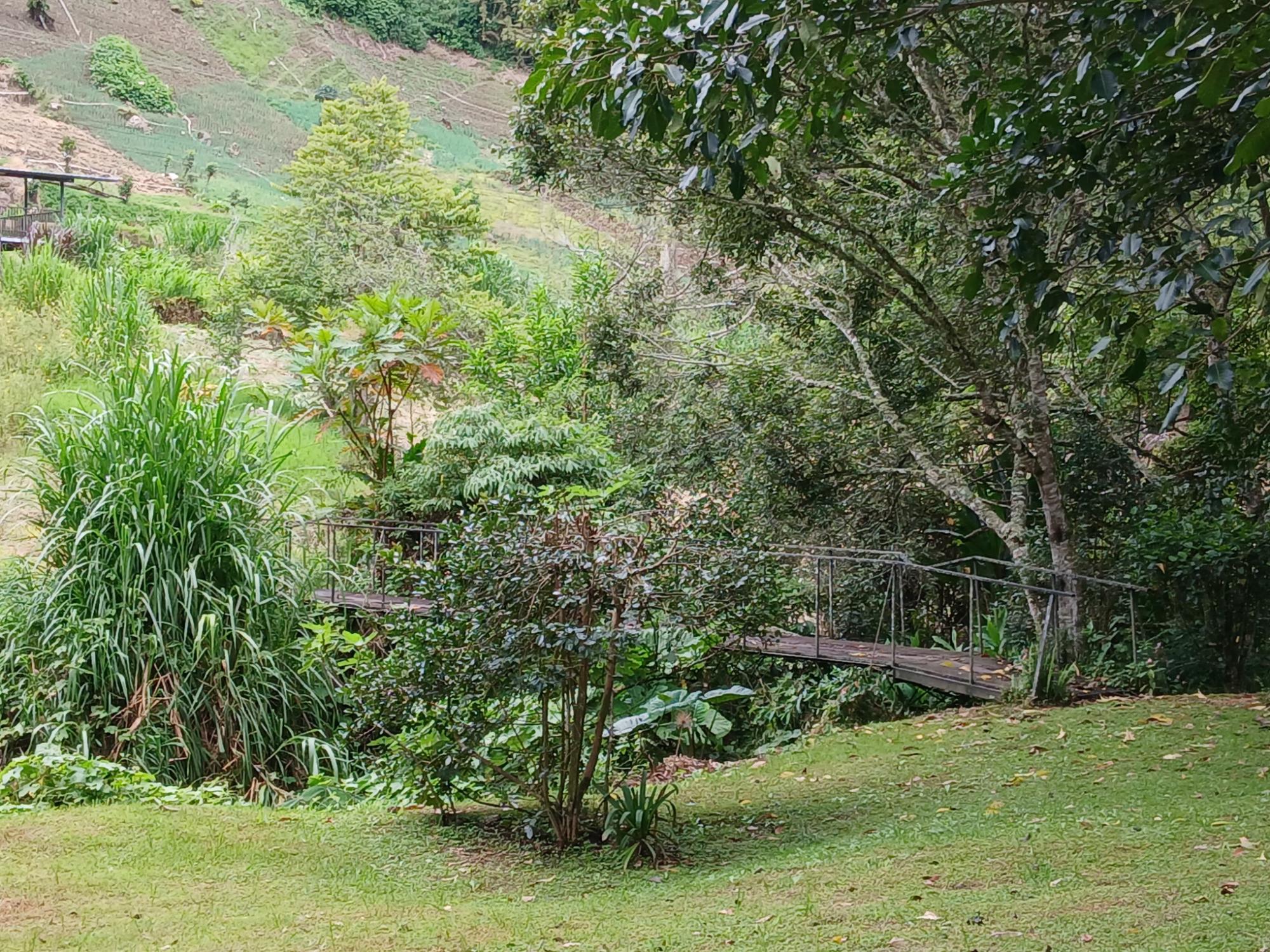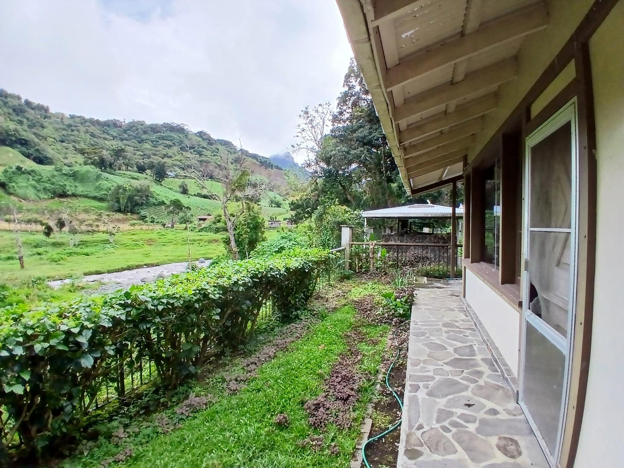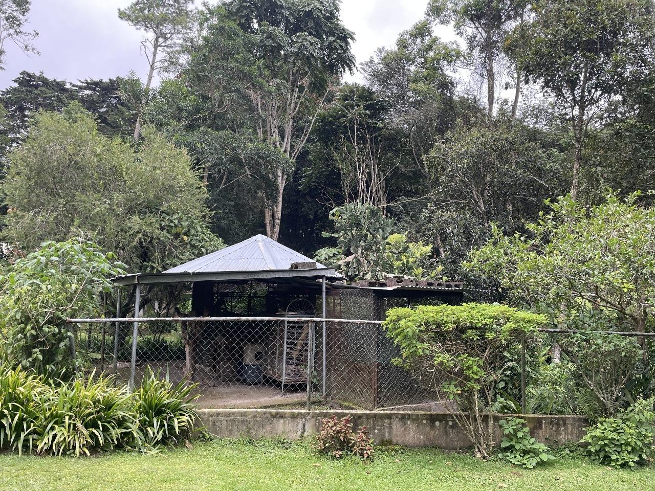 Your personal oasis is located in the Nueva Suiza district, which rightly bears this name, between Cerro Punta and Volcán. On a lovingly landscaped park-like area of 13,630 m² with mature trees, exotic plants, numerous fruit trees, and an enchanted garden pond, nothing stands in the way of realizing your dreams at a pleasantly refreshing altitude of 1,750 meters above sea level. Whether you are a passionate gardener, seeking peace and quiet from everyday life in a peaceful, tranquil environment, looking for a vacation home or a home for the whole family, or a starting point for extended hikes in the area, or whether you want to create an extraordinary retreat: Here is your opportunity! The property features a cozy wooden house with two bedrooms, a large living-dining room with a fireplace, a well-equipped kitchen, and spacious terraces to enjoy the view of the countryside. Separated only by a covered area with an outdoor fireplace is a small one-bedroom apartment. There are also numerous outbuildings on the fully-fenced property, such as a large workshop, an outdoor kitchen, and various pavilions and stables for small animals. The property is lovingly maintained. Houses in the neighborhood are mainly used as vacation homes. The property is accessed from the paved road via a 300 m gravel path, just a 15-minute drive from the center of Volcán, where you will find everything you need for daily life. David, Panamá's second largest city with its own airport, can be reached in an hour.