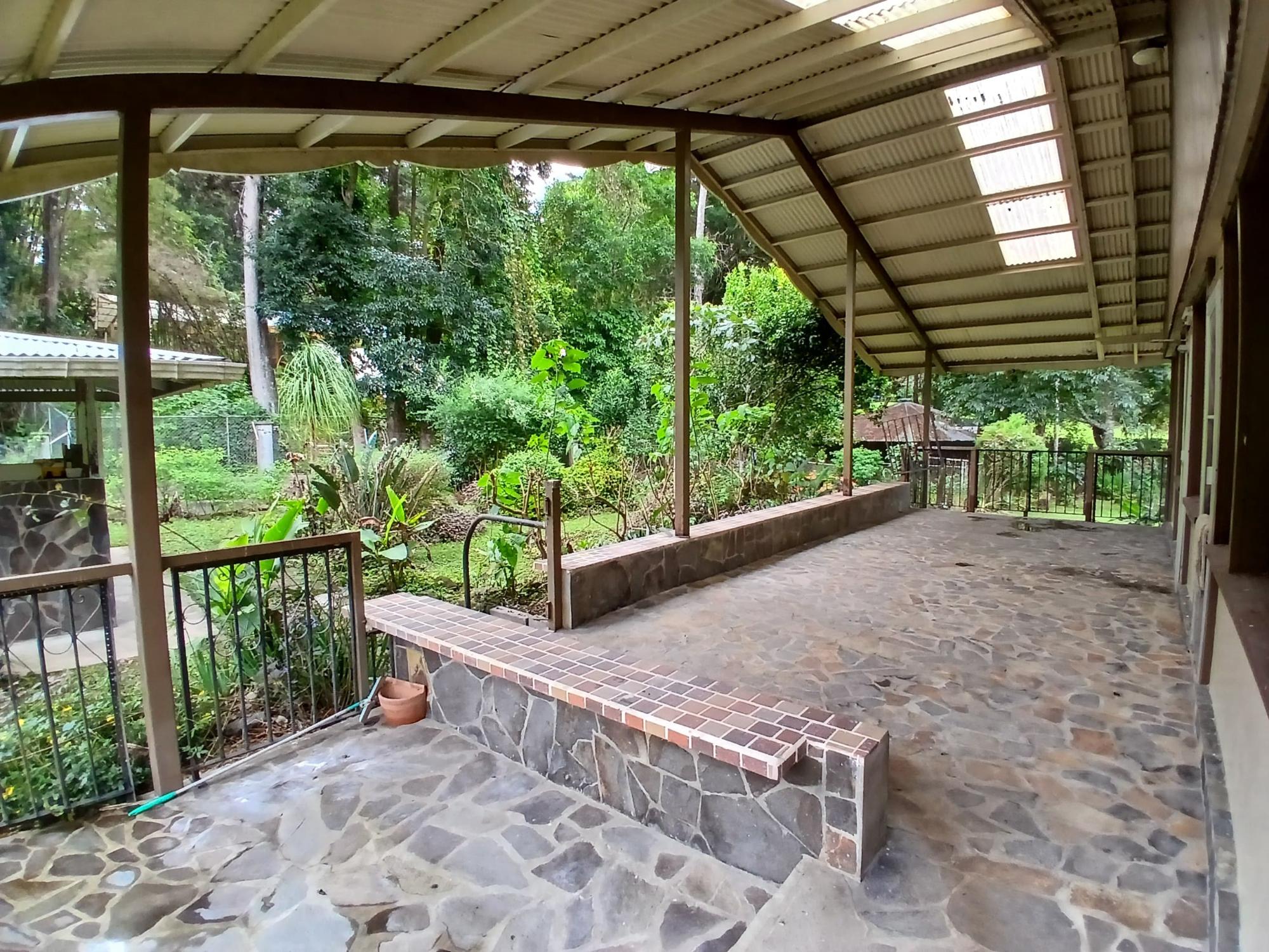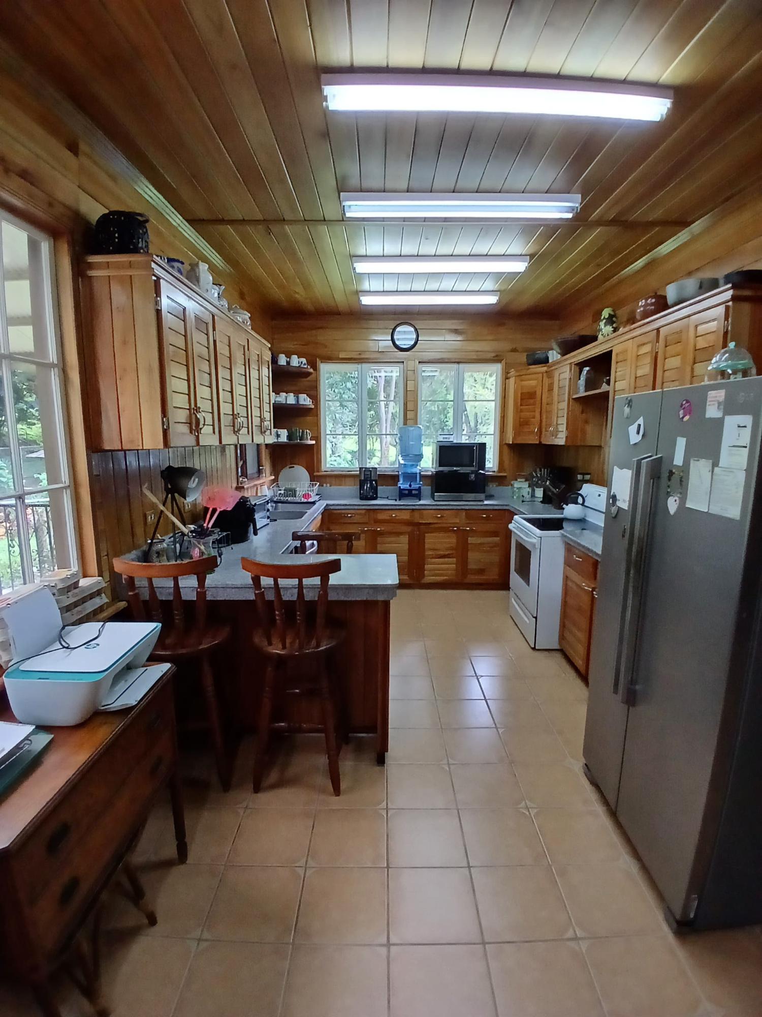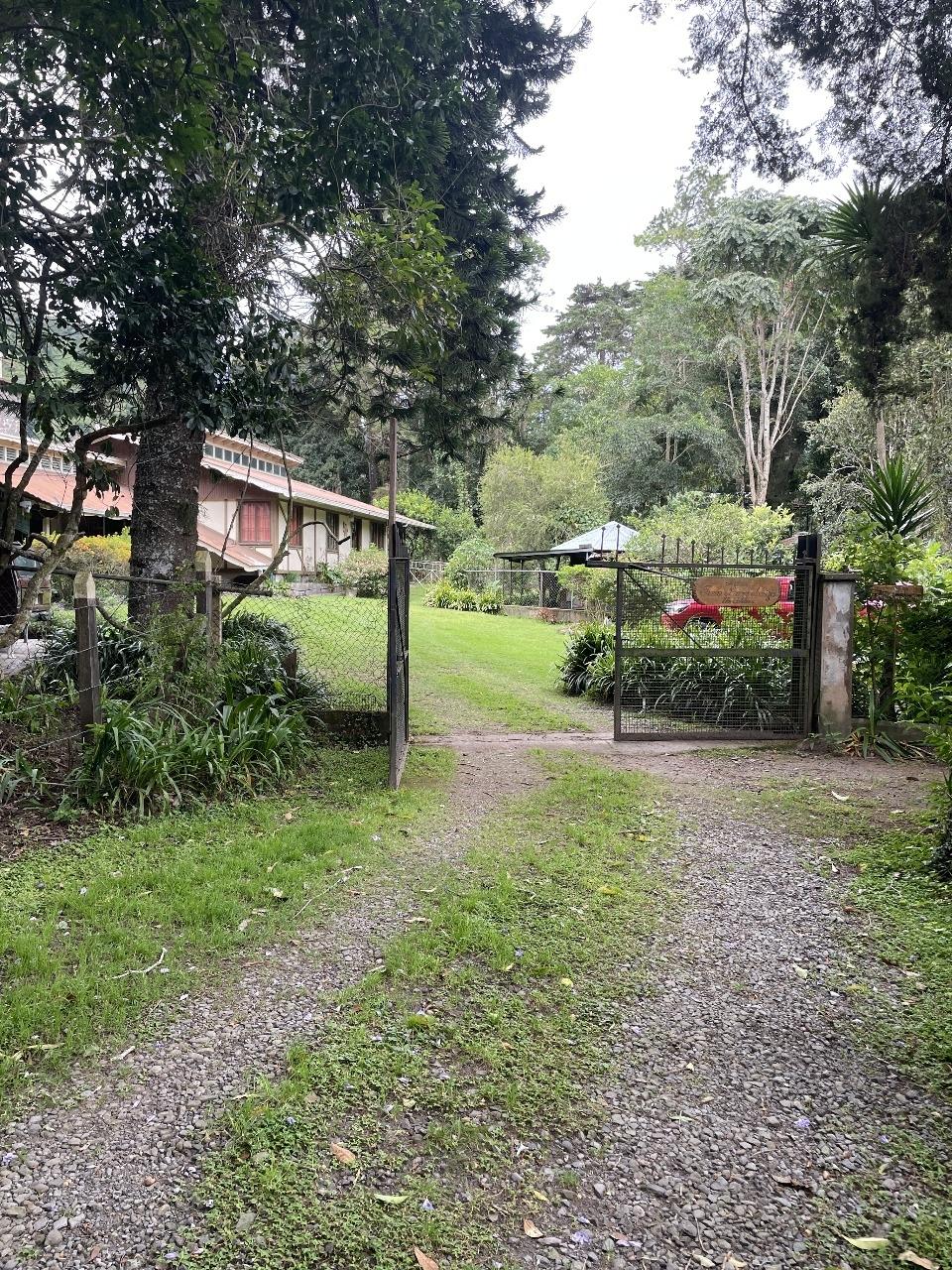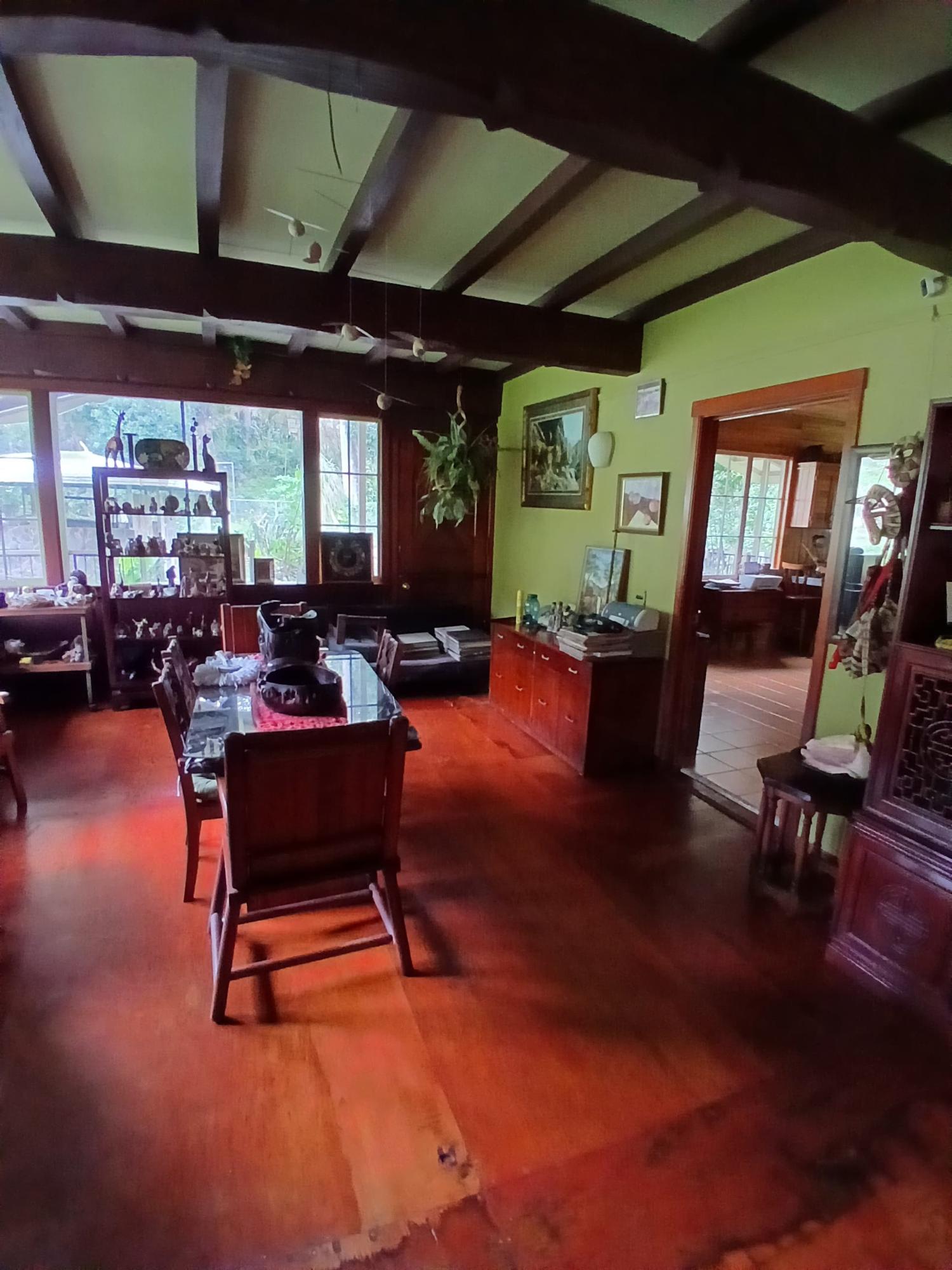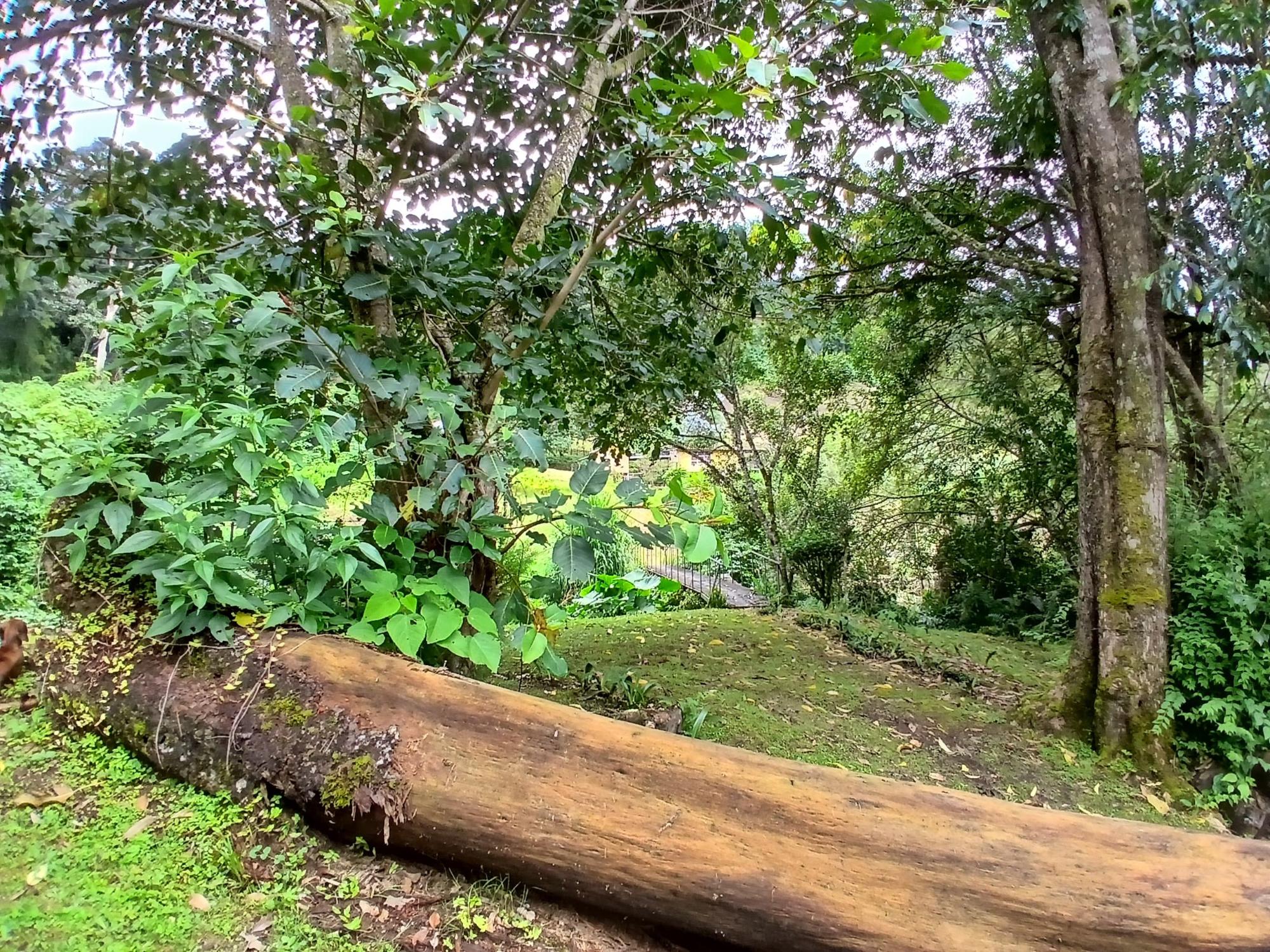 Your personal oasis is located in the Nueva Suiza district, which rightly bears this name, between Cerro Punta and Volcán. On a lovingly landscaped park-like area of 13,630 m² with mature trees, exotic plants, numerous fruit trees, and an enchanted garden pond, nothing stands in the way of realizing your dreams at a pleasantly refreshing altitude of 1,750 meters above sea level. Whether you are a passionate gardener, seeking peace and quiet from everyday life in a peaceful, tranquil environment, looking for a vacation home or a home for the whole family, or a starting point for extended hikes in the area, or whether you want to create an extraordinary retreat: Here is your opportunity! The property features a cozy wooden house with two bedrooms, a large living-dining room with a fireplace, a well-equipped kitchen, and spacious terraces to enjoy the view of the countryside. Separated only by a covered area with an outdoor fireplace is a small one-bedroom apartment. There are also numerous outbuildings on the fully-fenced property, such as a large workshop, an outdoor kitchen, and various pavilions and stables for small animals. The property is lovingly maintained. Houses in the neighborhood are mainly used as vacation homes. The property is accessed from the paved road via a 300 m gravel path, just a 15-minute drive from the center of Volcán, where you will find everything you need for daily life. David, Panamá's second largest city with its own airport, can be reached in an hour.