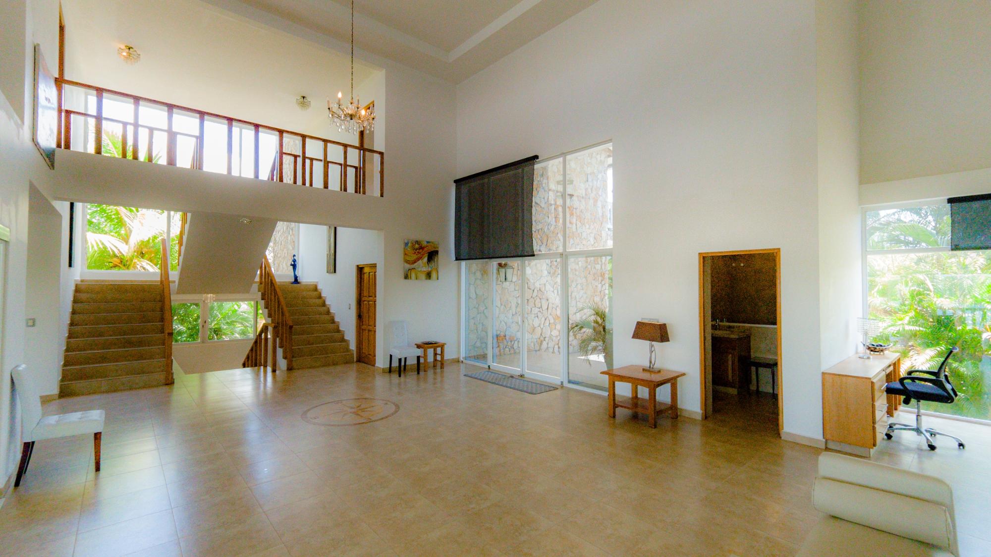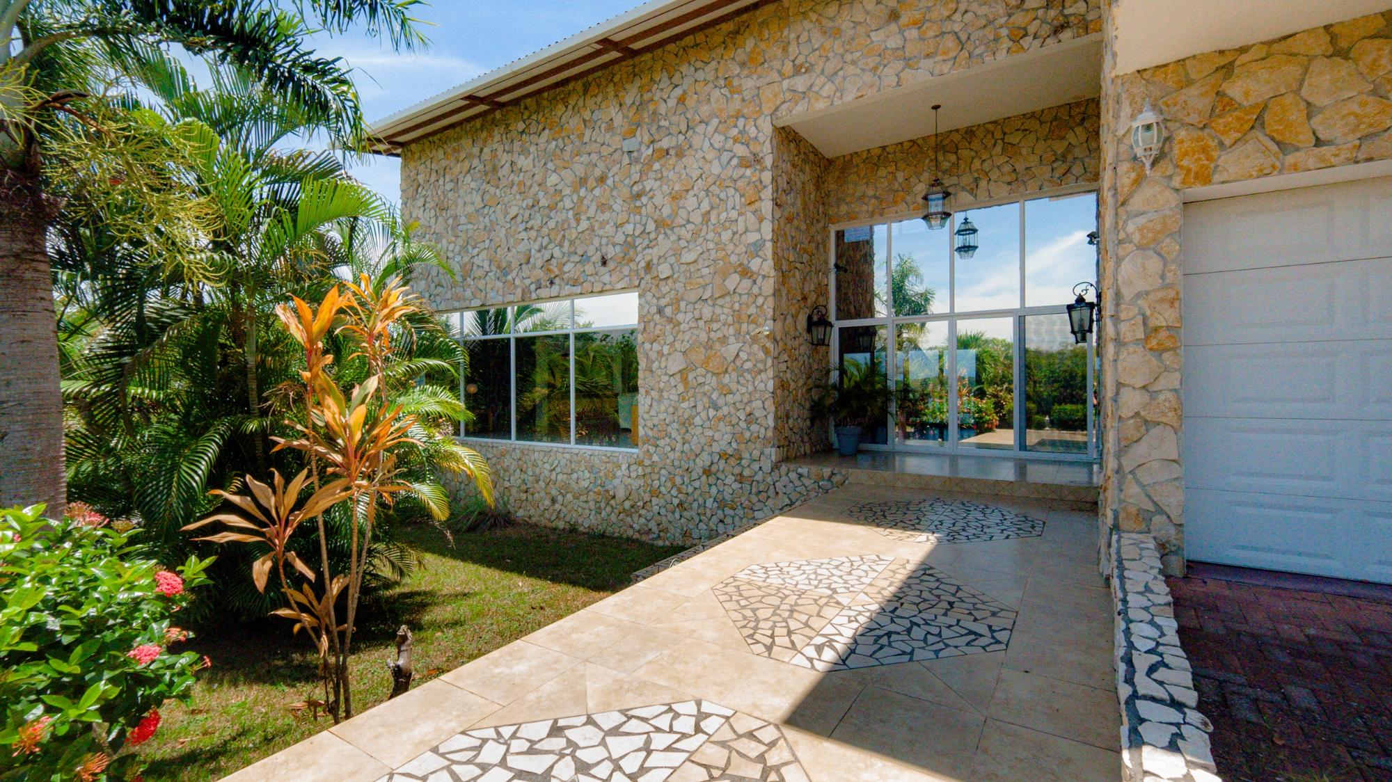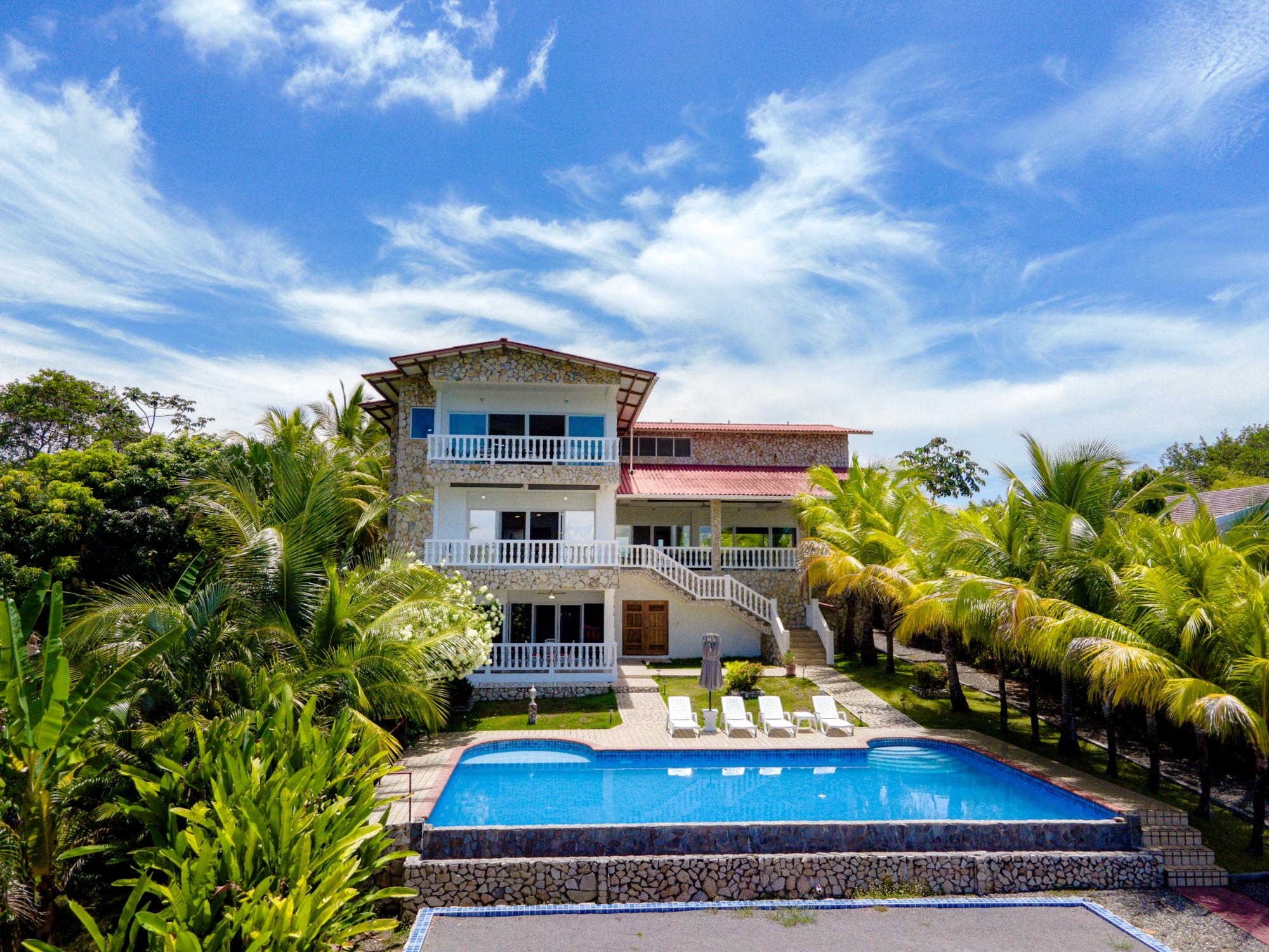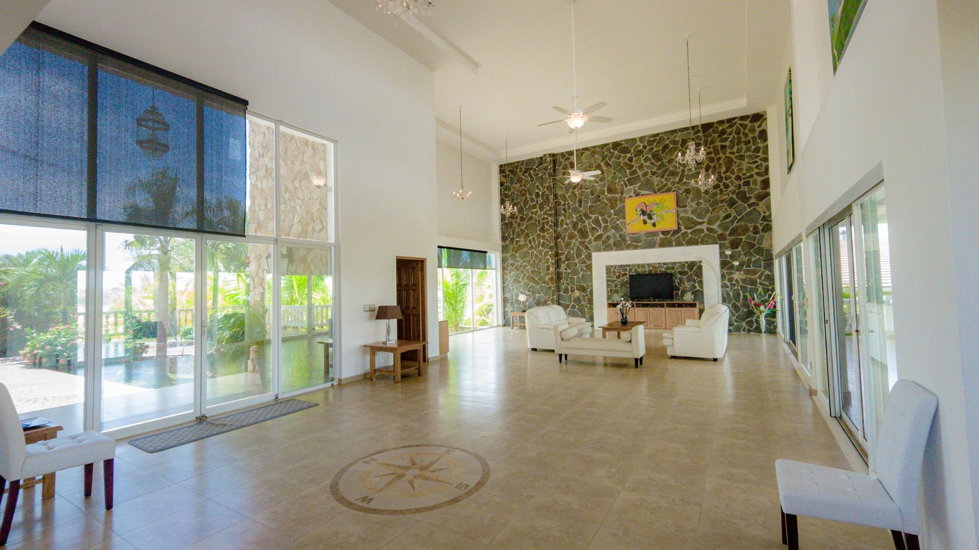Nestled in the heart of prestigious Lobster Cove, this stone villa represents the pinnacle of coastal elegance. Situated on a pristine half-acre lot, the property spans over 4,140 square feet of luxurious living space, designed to provide unmatched comfort & privacy; a seamless blend of modern architecture in the natural surroundings of Hermosa Bay, Boca Chica. As you approach the villa, the charm of the stonework and the elegance of its design are immediately apparent. The meticulously crafted stone exterior harmonizes with the lush greenery, offering a sense of sophistication and timeless appeal. The gated community ensures utmost privacy, allowing residents to enjoy their natural sanctuary with peace of mind. The open-concept layout of the villa boasts soaring ceilings which create a sense of space and grandeur. Every room is bathed in natural light, with expansive glass doors that offer breathtaking views of the bay, and lead seamlessly to multiple terraces. These outdoor spaces are perfect for entertaining or relaxing, whether it’s a sunset cocktail hour, intimate dinner, or simply soaking in the tranquil atmosphere of the pool, private bocce court or the idyllic bahio/gazebo area. The main floor features a gourmet kitchen with dual pantries, perfect for hosting family and friends. The kitchen flows effortlessly into the elegant dining area and the spacious living room, making it the perfect hub for entertainment. The infinity pool seems to spill into the horizon, offering panoramic views of Hermosa Bay that are nothing short of mesmerizing.