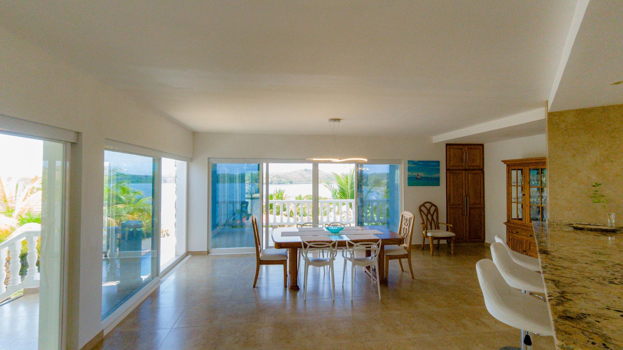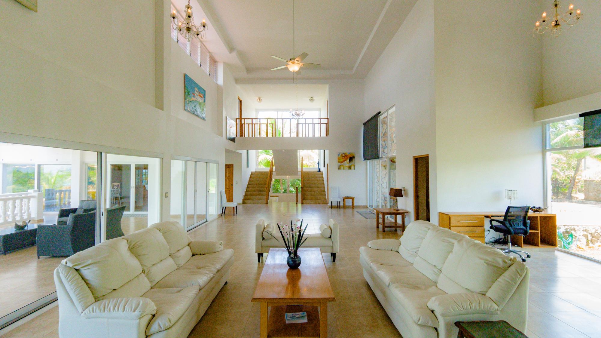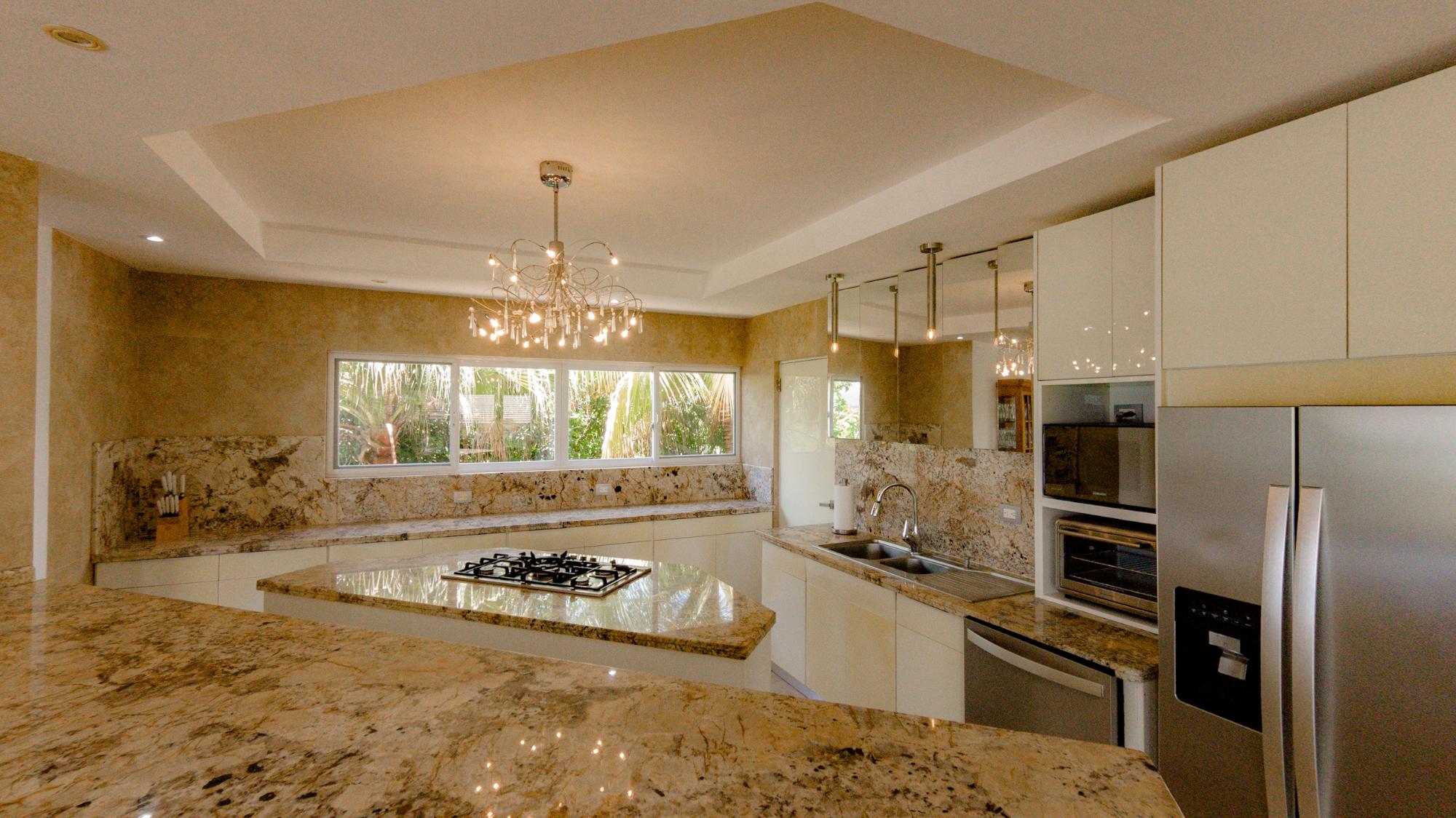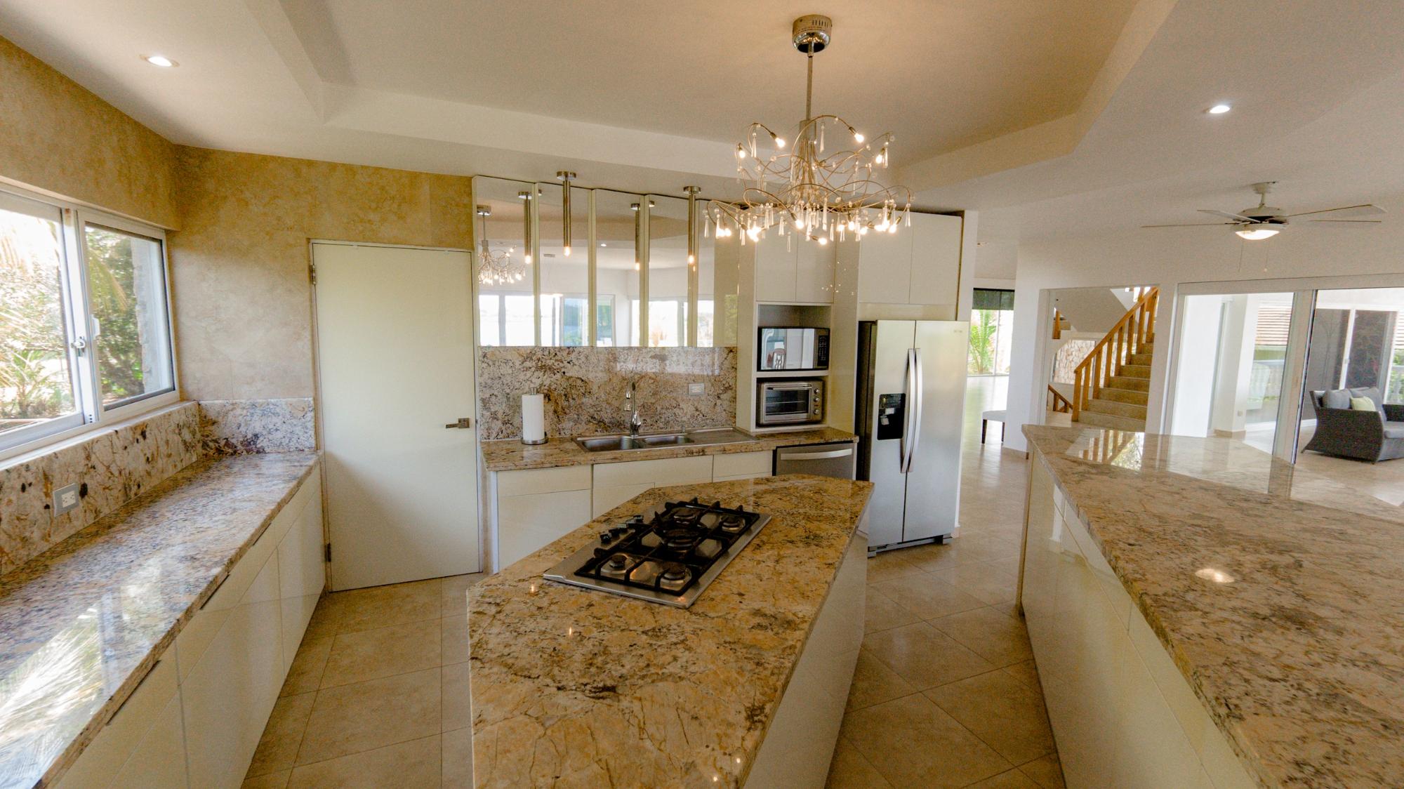 Nestled in the heart of prestigious Lobster Cove, this stone villa represents the pinnacle of coastal elegance. Situated on a pristine half-acre lot, the property spans over 4,140 square feet of luxurious living space, designed to provide unmatched comfort & privacy; a seamless blend of modern architecture in the natural surroundings of Hermosa Bay, Boca Chica. As you approach the villa, the charm of the stonework and the elegance of its design are immediately apparent. The meticulously crafted stone exterior harmonizes with the lush greenery, offering a sense of sophistication and timeless appeal. The gated community ensures utmost privacy, allowing residents to enjoy their natural sanctuary with peace of mind. The open-concept layout of the villa boasts soaring ceilings which create a sense of space and grandeur. Every room is bathed in natural light, with expansive glass doors that offer breathtaking views of the bay, and lead seamlessly to multiple terraces. These outdoor spaces are perfect for entertaining or relaxing, whether it’s a sunset cocktail hour, intimate dinner, or simply soaking in the tranquil atmosphere of the pool, private bocce court or the idyllic bahio/gazebo area. The main floor features a gourmet kitchen with dual pantries, perfect for hosting family and friends. The kitchen flows effortlessly into the elegant dining area and the spacious living room, making it the perfect hub for entertainment. The infinity pool seems to spill into the horizon, offering panoramic views of Hermosa Bay that are nothing short of mesmerizing.