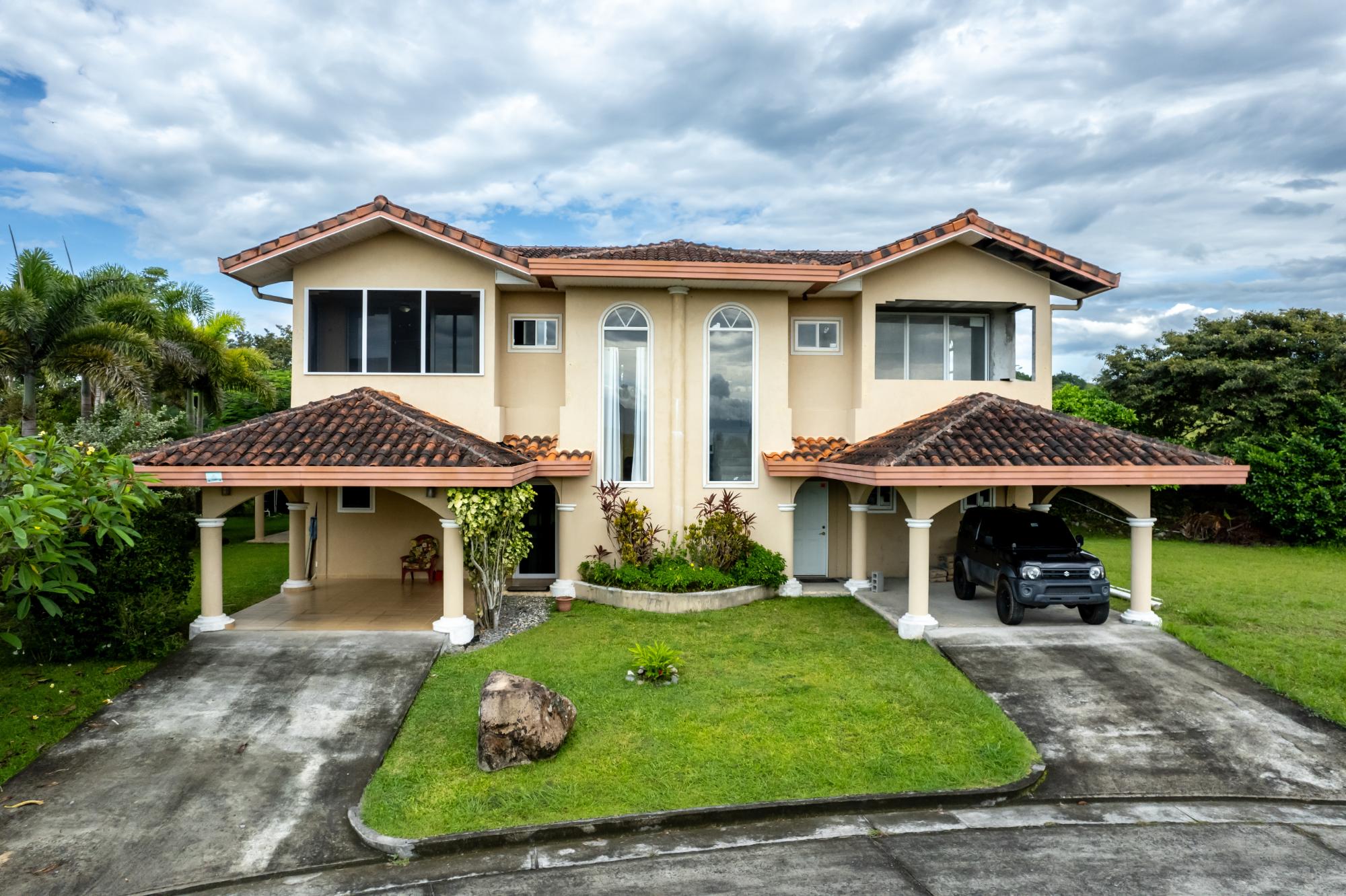 Located in the gated community of Boquete Canyon Village, this semi-detached two-story home is a perfect renovation opportunity. Built in 2008 to US standards, it offers a solid foundation and contemporary design for your creative touch. The main floor’s open layout includes a sunlit living room, dining area, and custom wood kitchen with granite counters and stainless appliances. A half bath, laundry room, and covered terrace with Fertec screens complete this level. Upstairs, two spacious bedrooms each feature an ensuite bath. The master suite boasts ample space, scenic views, and a walk-in shower. Offered below market value, this home invites you to personalize every detail. A fresh coat of paint and minor updates will transform it into your dream retreat in one of Boquete’s most desirable locations.