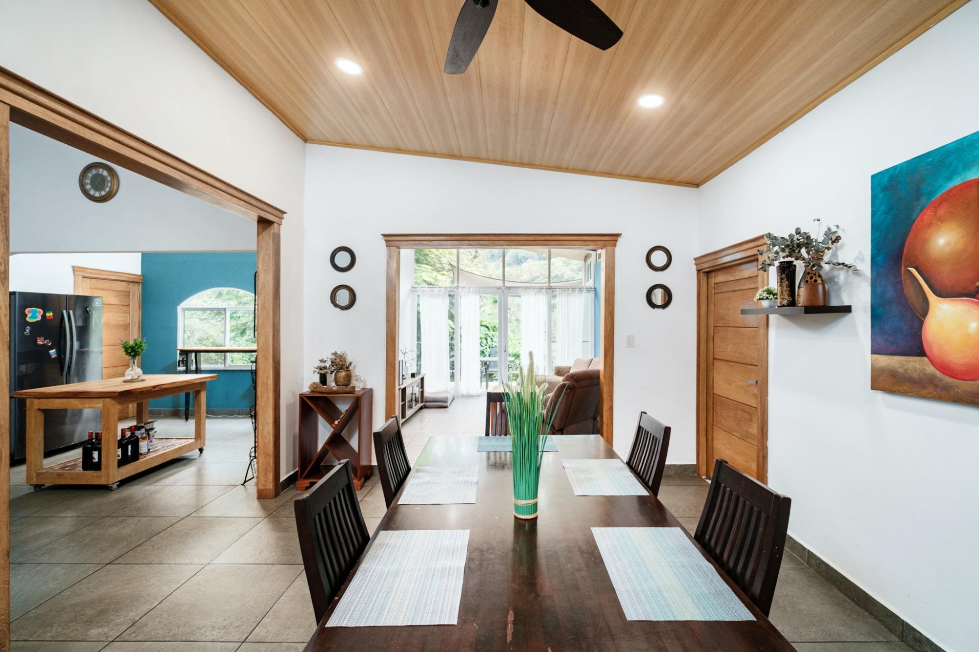 Located in the peaceful Los Naranjos area of Boquete, this well-built home features 3 bedrooms and 4 full bathrooms, with a flexible bonus room perfect for a home office, yoga studio, or playroom. The interior showcases beautiful hardwood throughout, large windows that welcome natural light, and a spacious layout. A generous carport and mature landscaping provide privacy. Just a short walk from Boquete’s vibrant restaurant scene and sports facilities, and with easy access to world-renowned coffee fincas and top-rated hiking trails, the location is unbeatable. Ideal for full-time living, a vacation getaway, or an income-producing rental. The owner's suite can be locked off, allowing for a private 2-bedroom, 2-bath rental option. All this nestled in Boquete’s lush mountain valley, known for its year-round spring climate, rich cultural life, and warm community vibe. A smart opportunity in one of Panama’s most desirable locations.