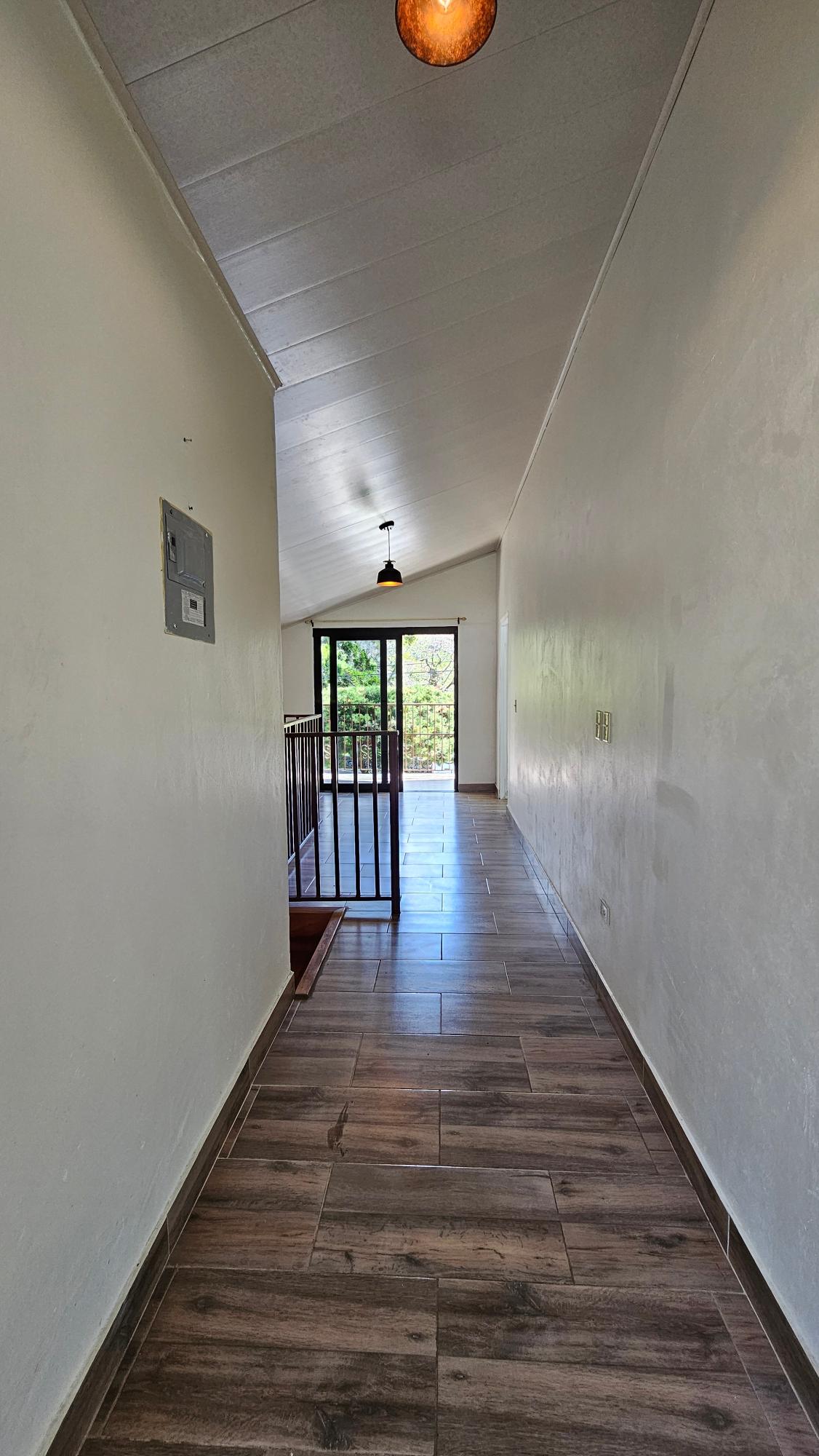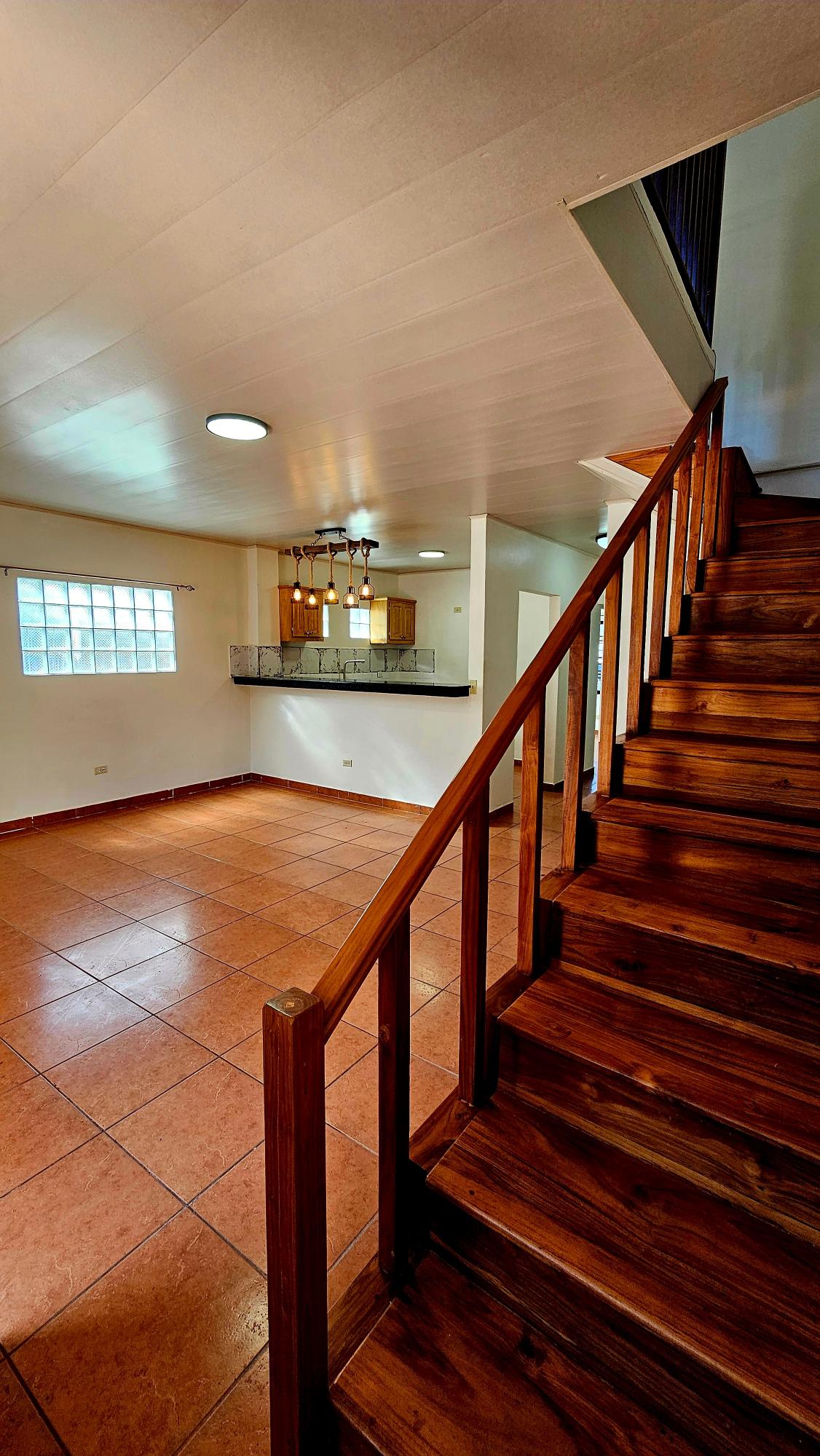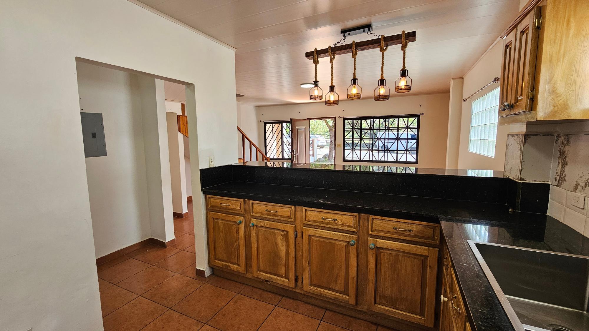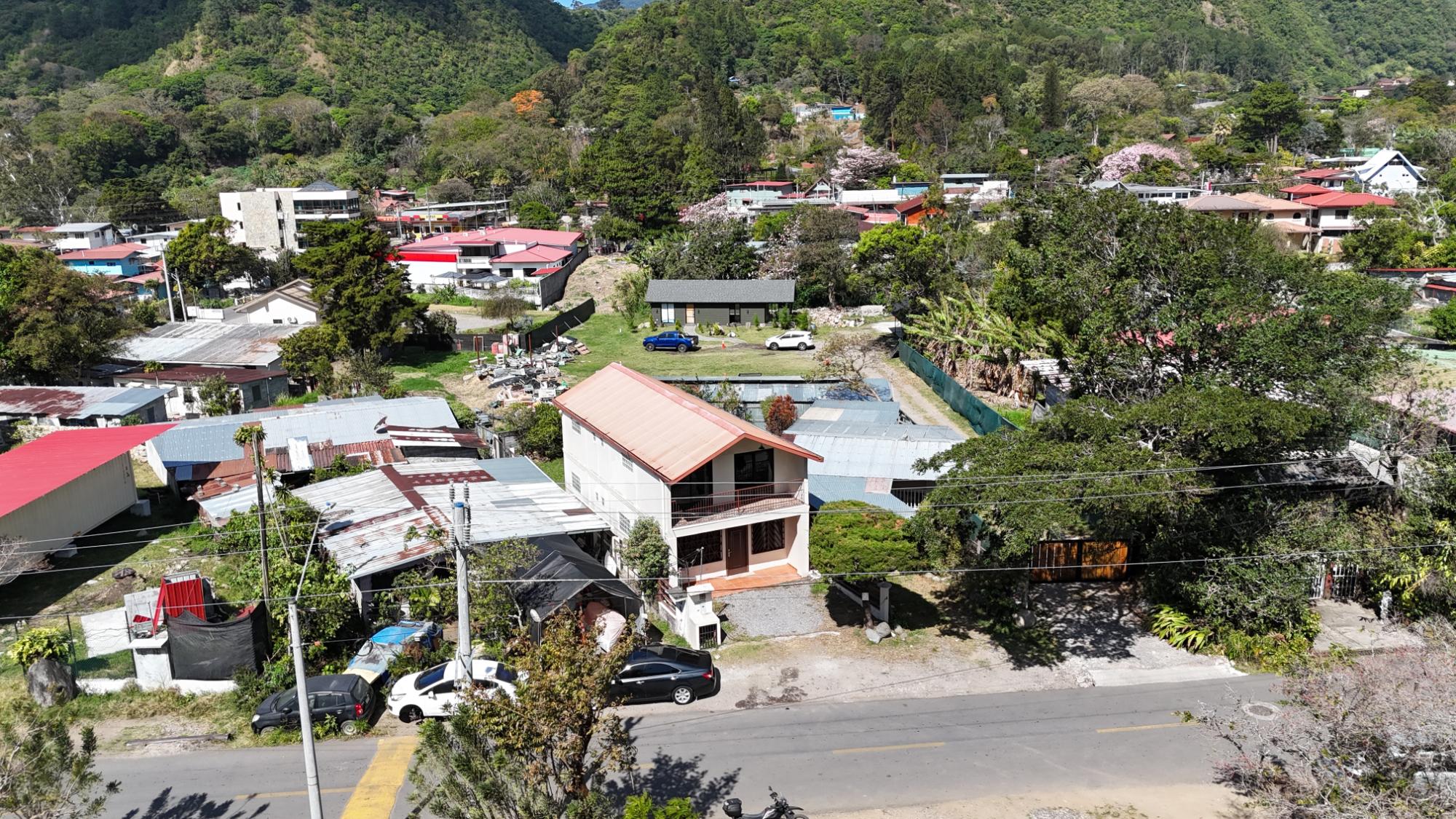 Boquete Panama Parkside Home offers a rare opportunity to live or operate a business in a prime downtown location. Situated directly across the street from a charming city park with water features and ducks, the property combines peaceful surroundings with the convenience of being within walking distance to restaurants, shops, and services. This two-story home is designed to support comfortable residential living while also offering flexibility for commercial or mixed-use possibilities. The main floor features a welcoming living room, dining area, and well-appointed kitchen designed for everyday living or entertaining. A guest bedroom and full bathroom on the first level provide convenience for visitors or extended family. The home also includes a laundry room and a fenced backyard with grass, creating outdoor space for relaxing, gardening, or play. Upstairs, the second level expands the living space with a spacious landing area and sliding glass doors that open to a covered patio overlooking the library park. This flexible space can function as an office, lounge, or additional sitting area. The upper floor also includes a master suite with walk-in closet and en-suite bathroom, a third bedroom, and an additional full bathroom. A second covered A-frame patio at the back of the home provides another private outdoor retreat. Additional features include parking for two vehicles, an on-demand hot water system, and a 290-gallon reserve water tank.