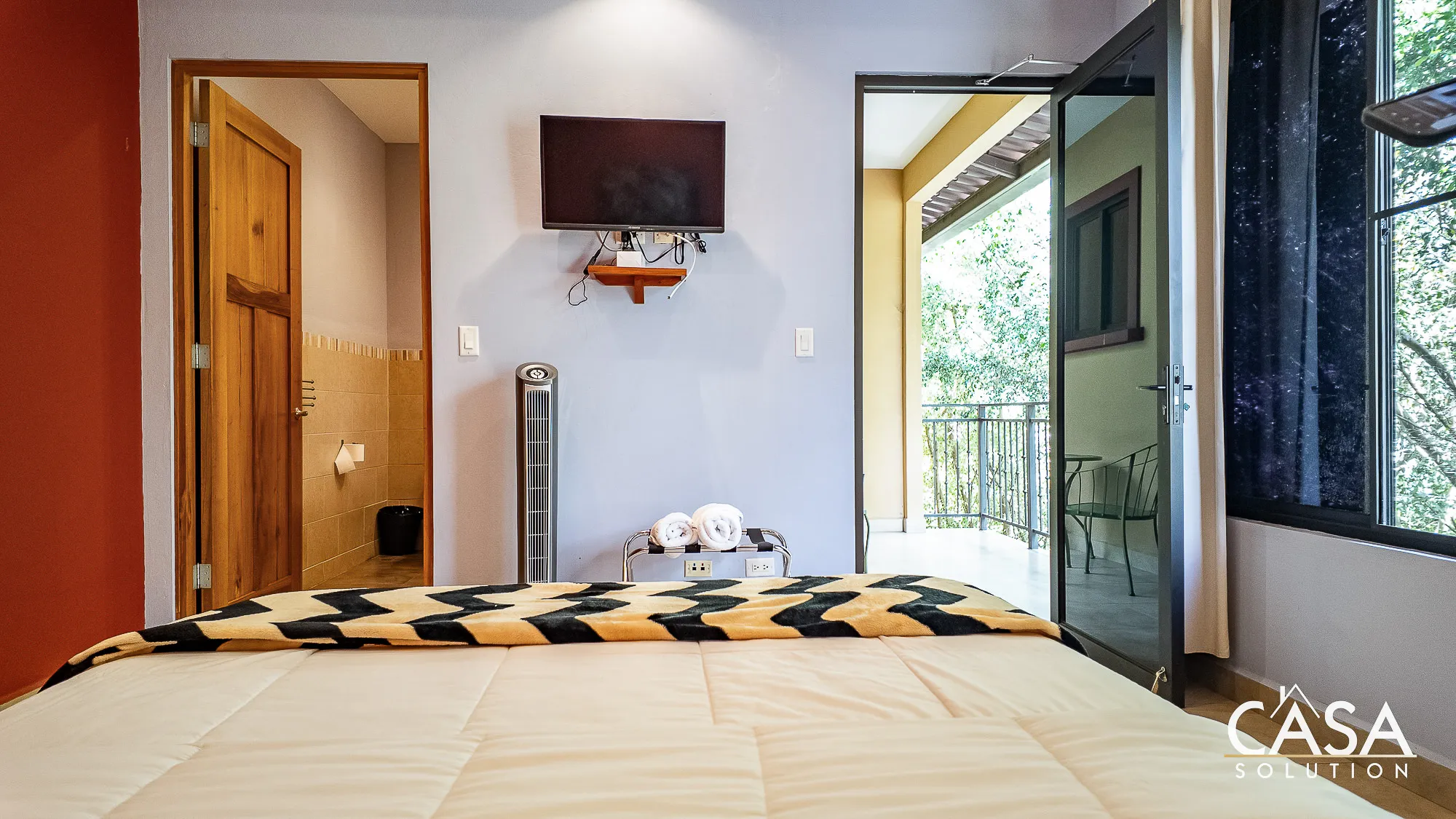 The Catimor room features a built-in closet, a full private bathroom, and a balcony with a clear view toward Piedra de Lino. The San Ramón room follows the same layout and design, offering the same sense of comfort and privacy. The Típica room also functions as a regular guest suite with its own bathroom, closet, and balcony access.