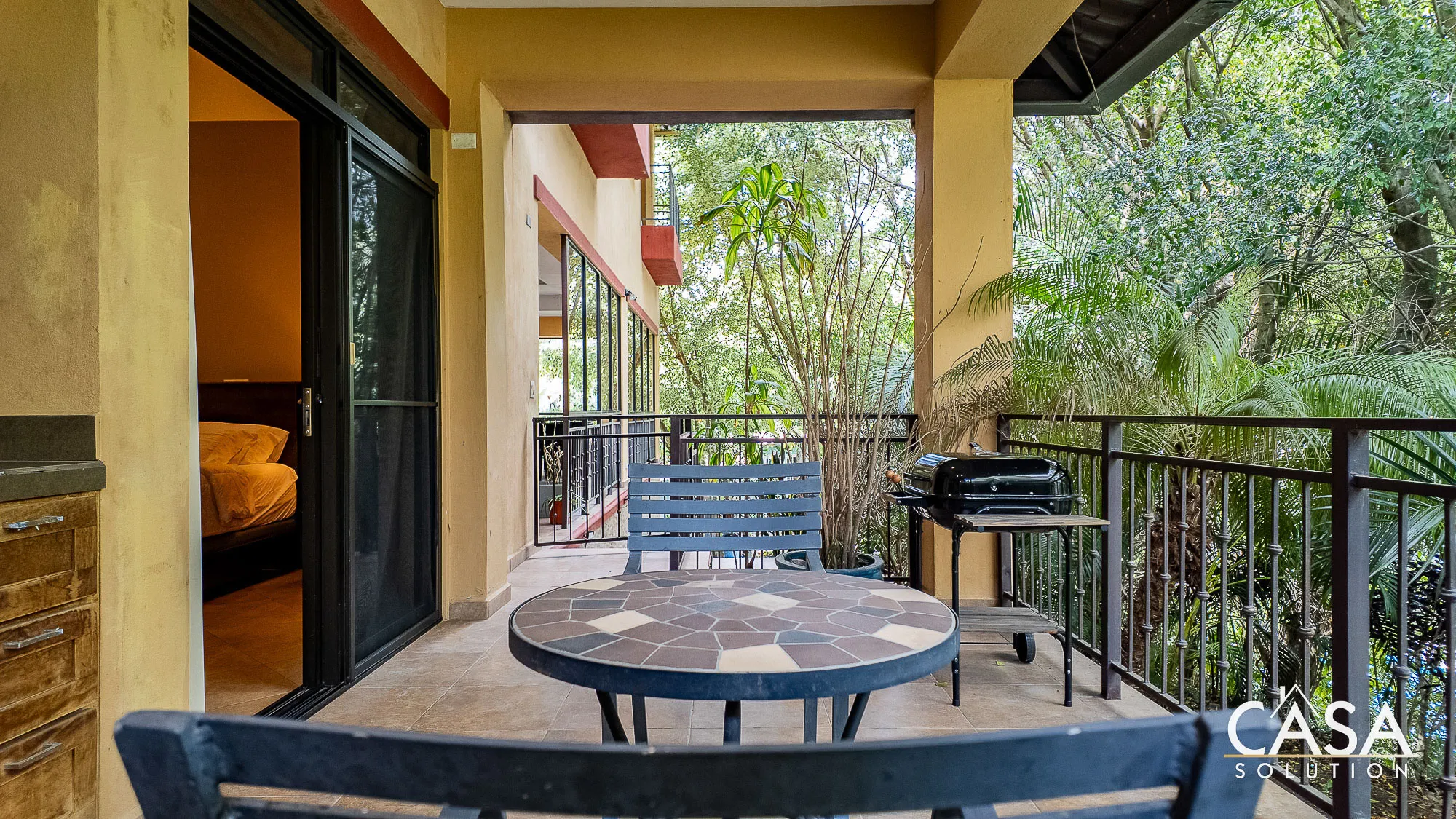 At the back of the property, mature trees create a natural sense of separation from neighboring homes, bringing shade and a pleasant breeze that reaches the second-floor balconies.