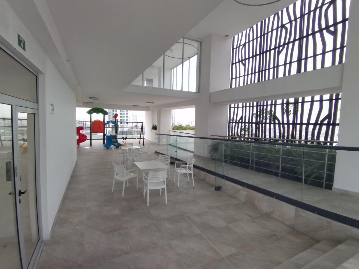 New apartment located at the highest point of Hato Pintado in the city center on a cul-de-sac, a few meters from 12 de Octubre Avenue, the Metro station, and numerous businesses such as Arrocha, Smart Fit, El Rey Supermarket, and Do It Center. The project features visitor parking, a luxurious lobby, a gym, a party room, a children's play area, a pet park, and a beautiful pool with city views. The apartment features an open kitchen, living/dining room, laundry room, two bedrooms, two full bathrooms, light fixtures, roller shades, appliances, Panasonic inverter air conditioners, and a parking space on level S2. It is ready for immediate occupancy with its electricity installed.