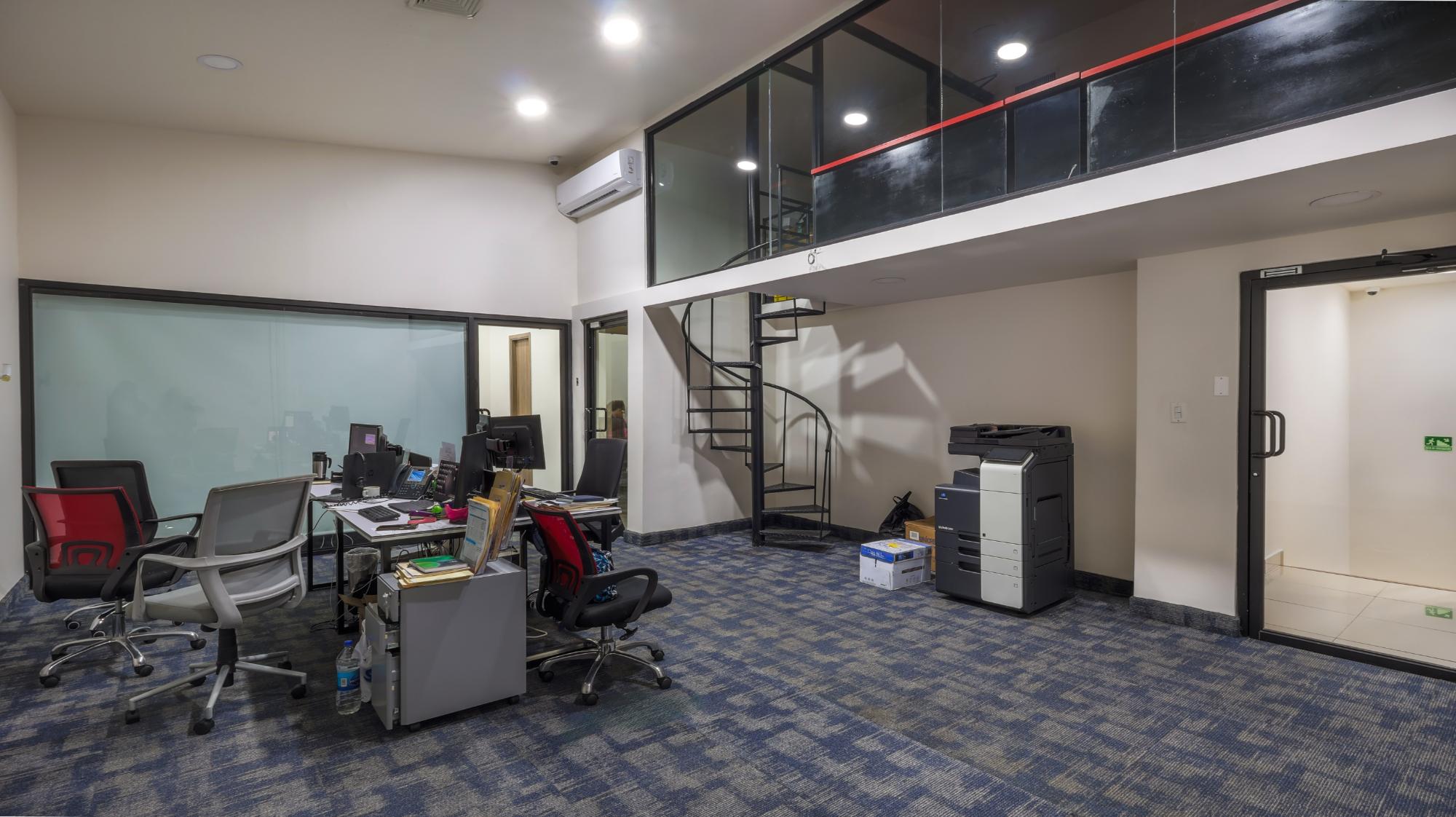 It consists of a rectangular plot of land with mostly flat topography, built in its entirety. It has 20 meters of front and 40 meters of depth. Its building type gallery, has a reception area, customer service area, offices and a battery of bathrooms. In its front part it has an open parking area, with a reinforced concrete floor. On the upper floor, whose access is through a concrete staircase, we find offices and a cubicle area, 2 restrooms for ladies and gentlemen with imported sanitary ware and a mechanical fan. The gallery built with a reinforced concrete floor measures approx. 540.70 m2 and includes a cafeteria area and a meeting and cubicle office. Among other improvements, it includes a loading and unloading area.