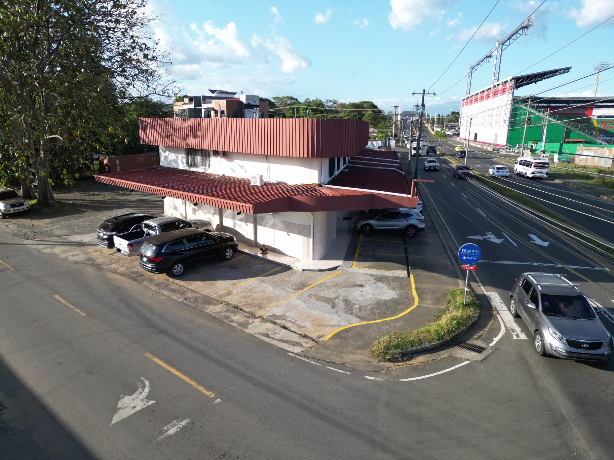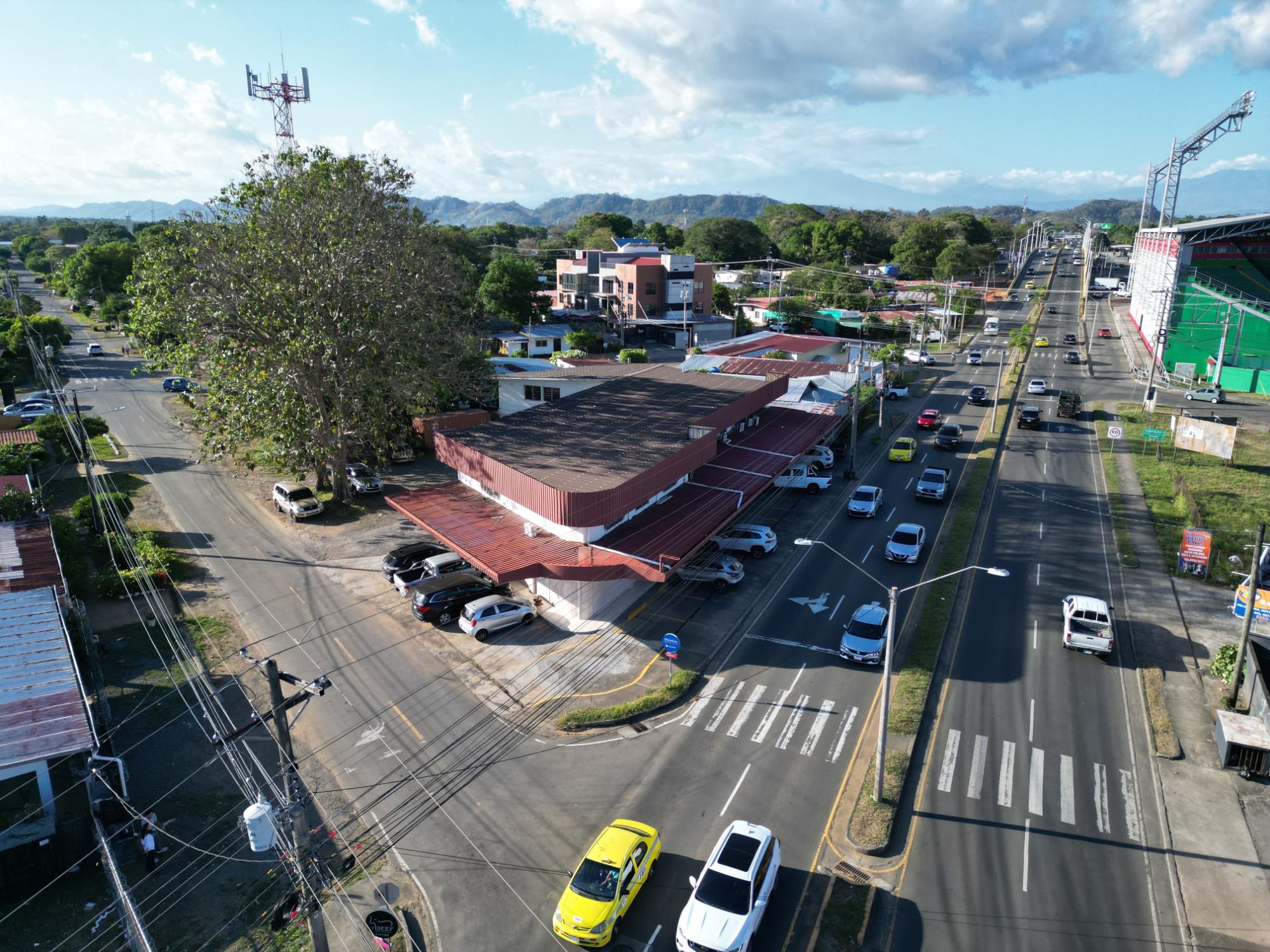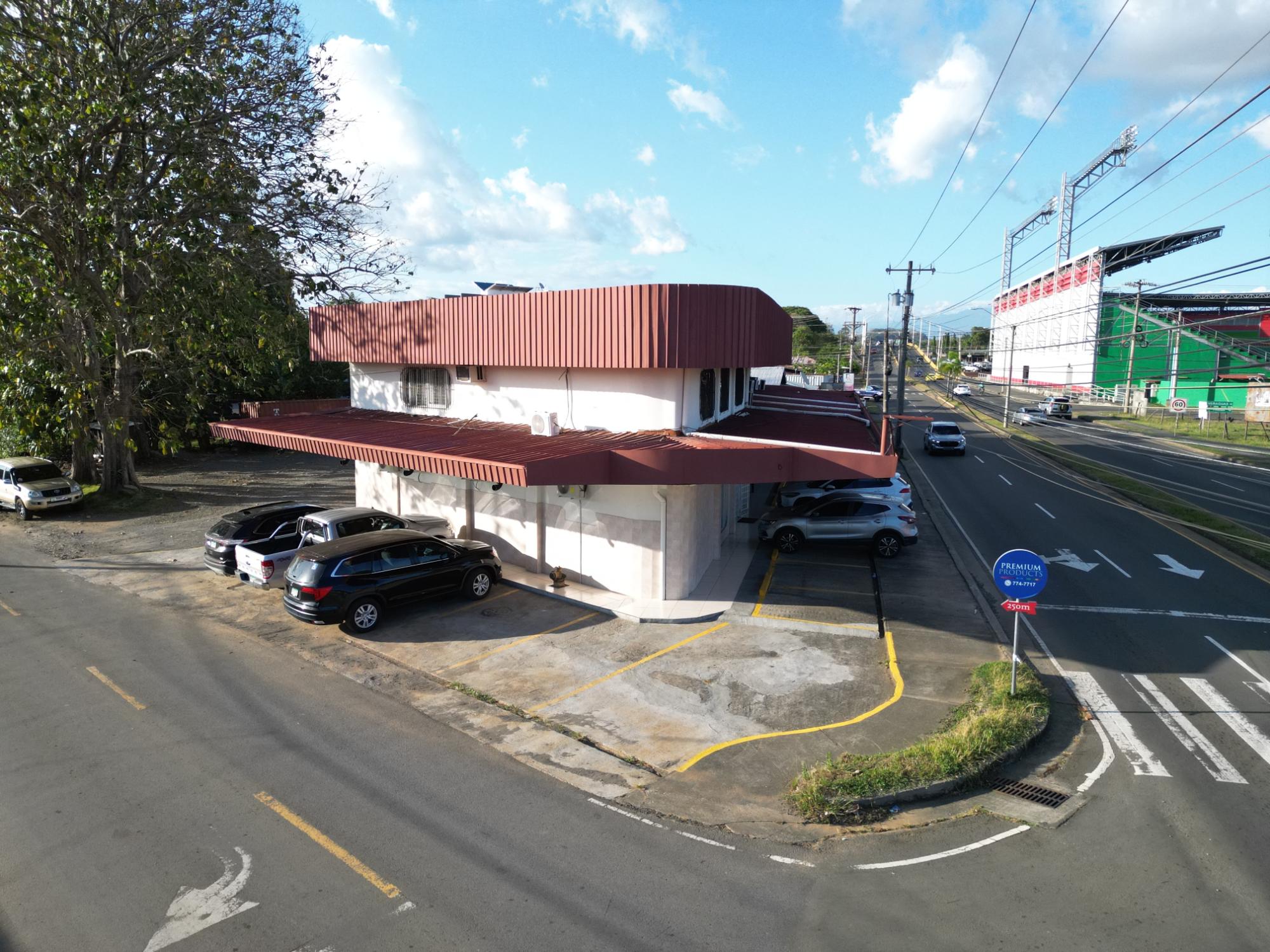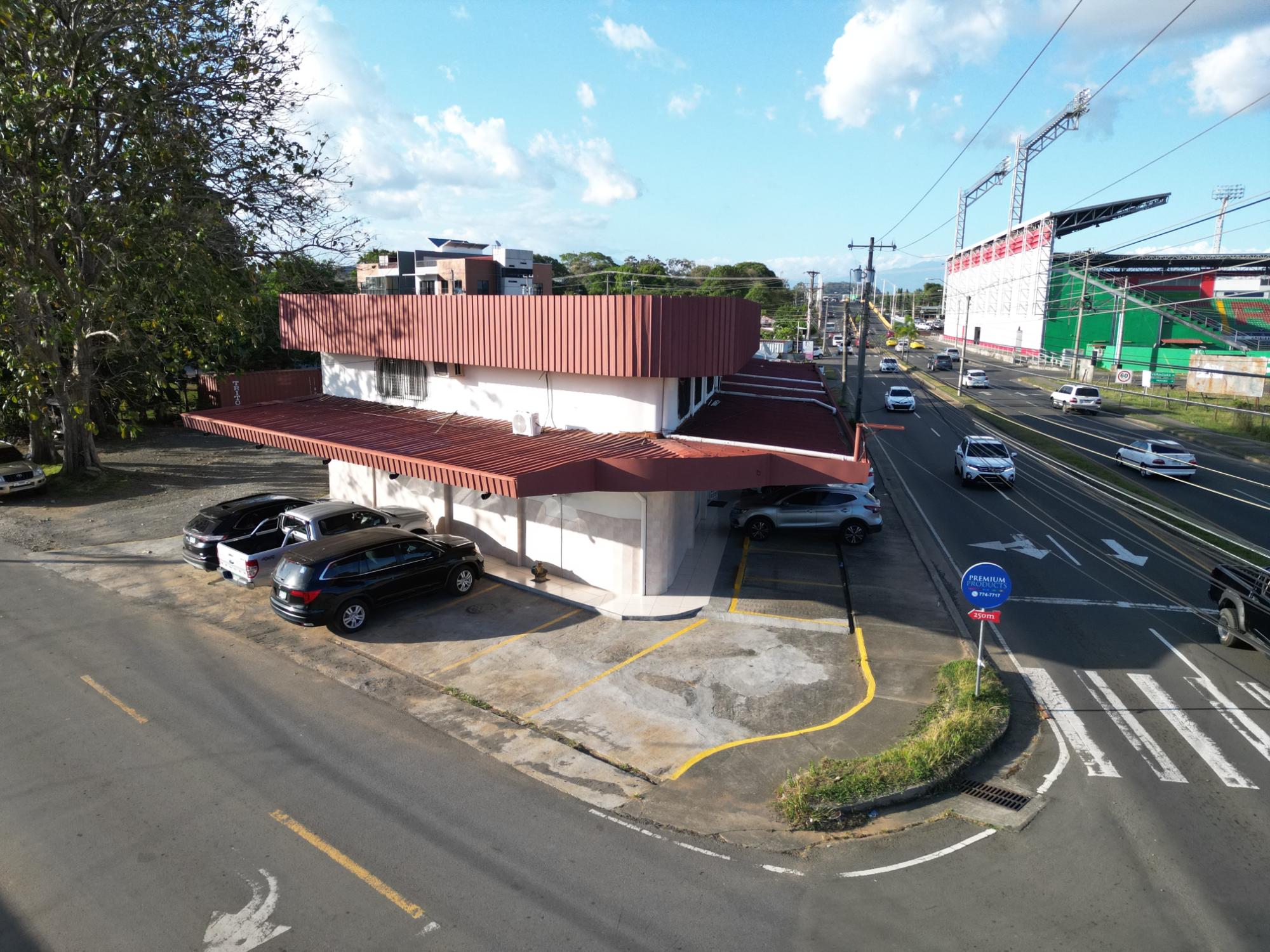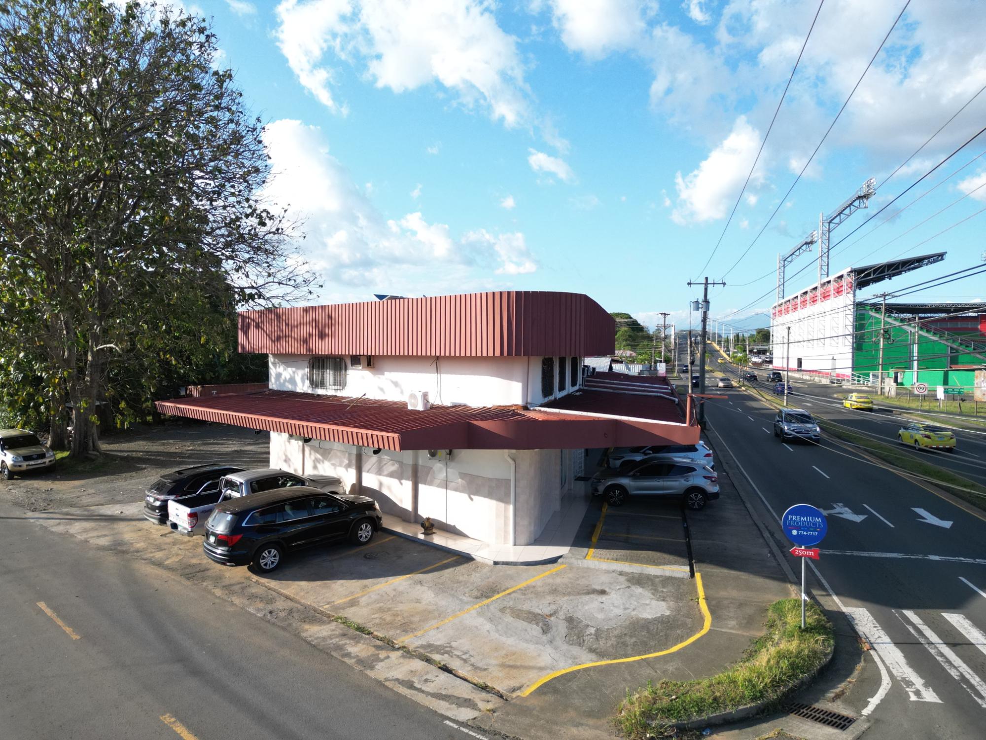 This property is located on Belisario Porras Avenue, Boquete Road, a short walk from the Kenny Serracín Stadium in David, Chiriquí. Situated on a strategic corner, it has two levels. The ground floor has four commercial spaces, and the upper floor has seven offices.
