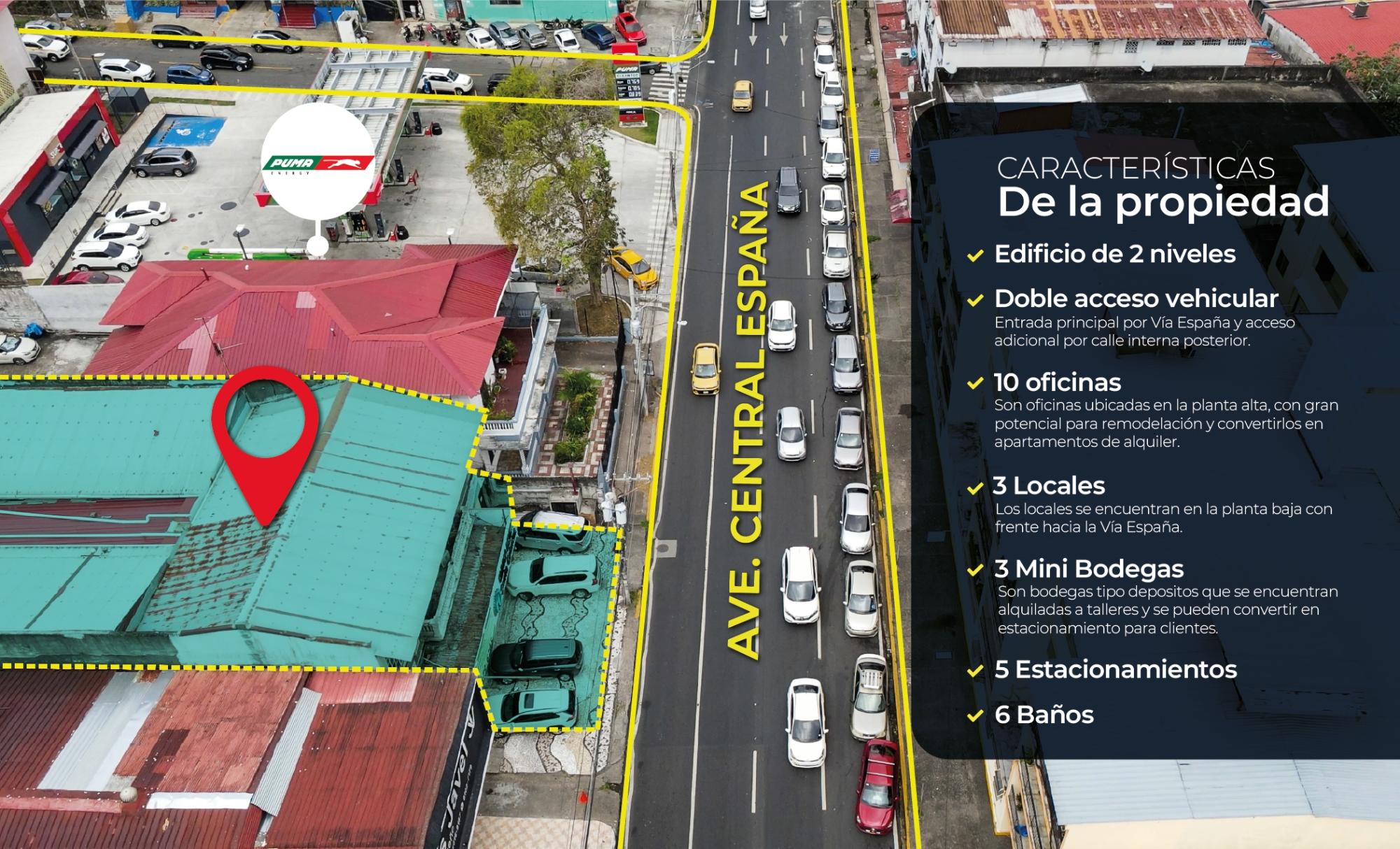 Building located on Avenida Central España, one of the city's busiest thoroughfares, guaranteeing high visibility and a constant flow of people and vehicles. It features dual access with a main entrance on Avenida España and an additional entrance via a rear internal street, facilitating operations for businesses, offices, and logistics. This two-story building is ideal for retail, offices, or investment. The upper floor can be adapted for residential or office use, offering multiple possibilities. It includes six commercial spaces: three with direct frontage on Avenida España and three at the rear. Functional office spaces include ten offices, ideal for companies, medical practices, coworking spaces, or professional services. Five parking spaces and six restrooms are also available. The building is surrounded by shops, hotels, restaurants, and Puma and Delta gas stations. Excellent value for money: This property offers high potential at a very good price in one of the city's most dynamic areas. This building presents a solid and profitable opportunity.