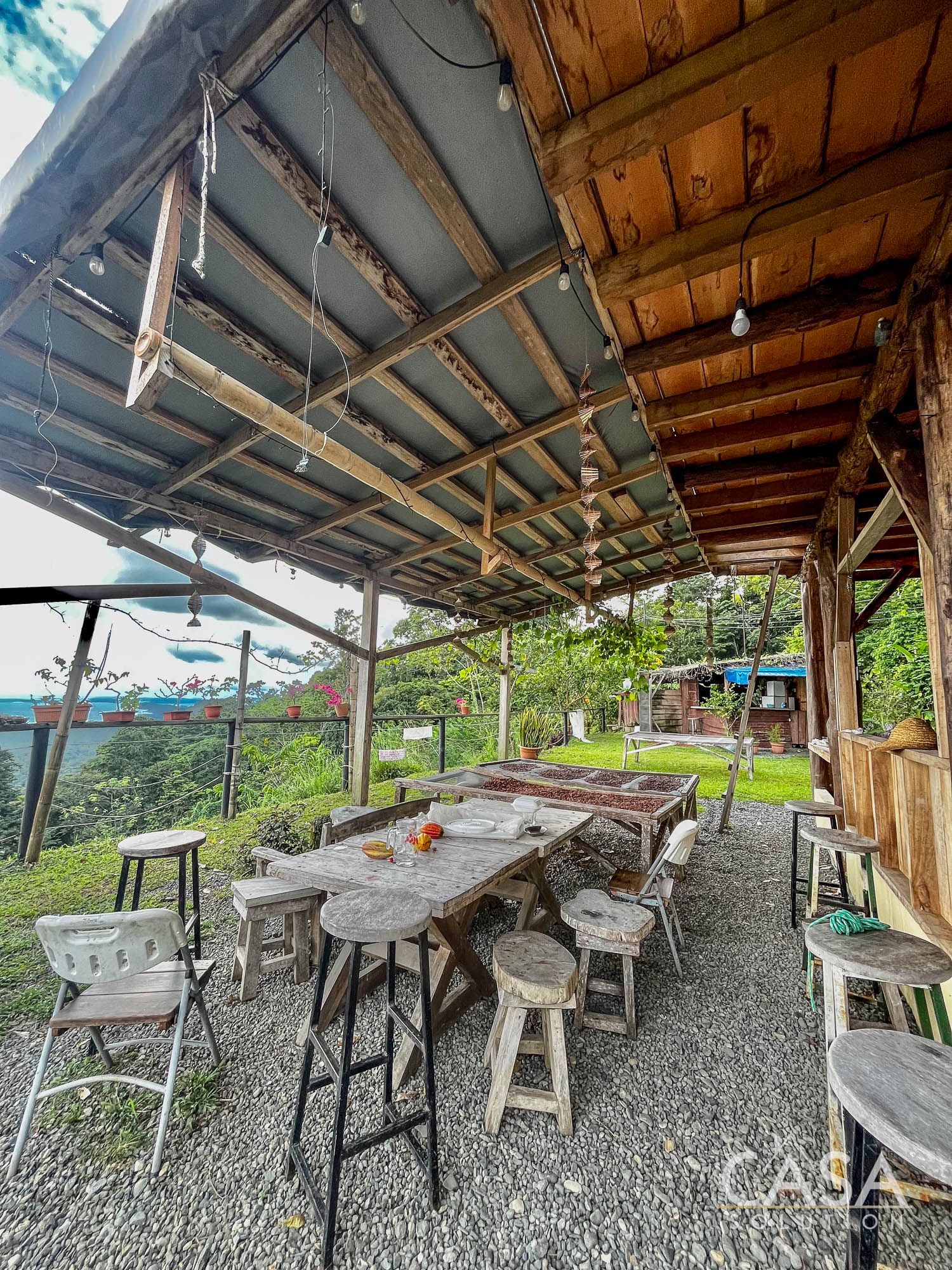 The owners developed a workshop specifically for cacao production and tour experiences. From this structure, the mountain views open up across the property and beyond.