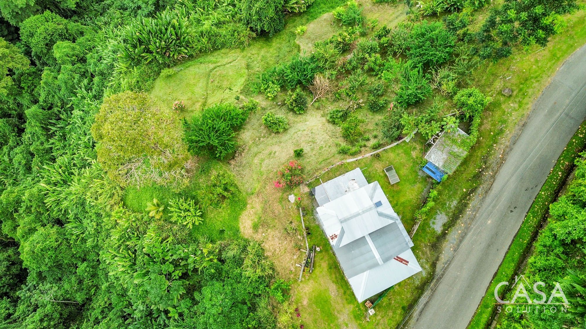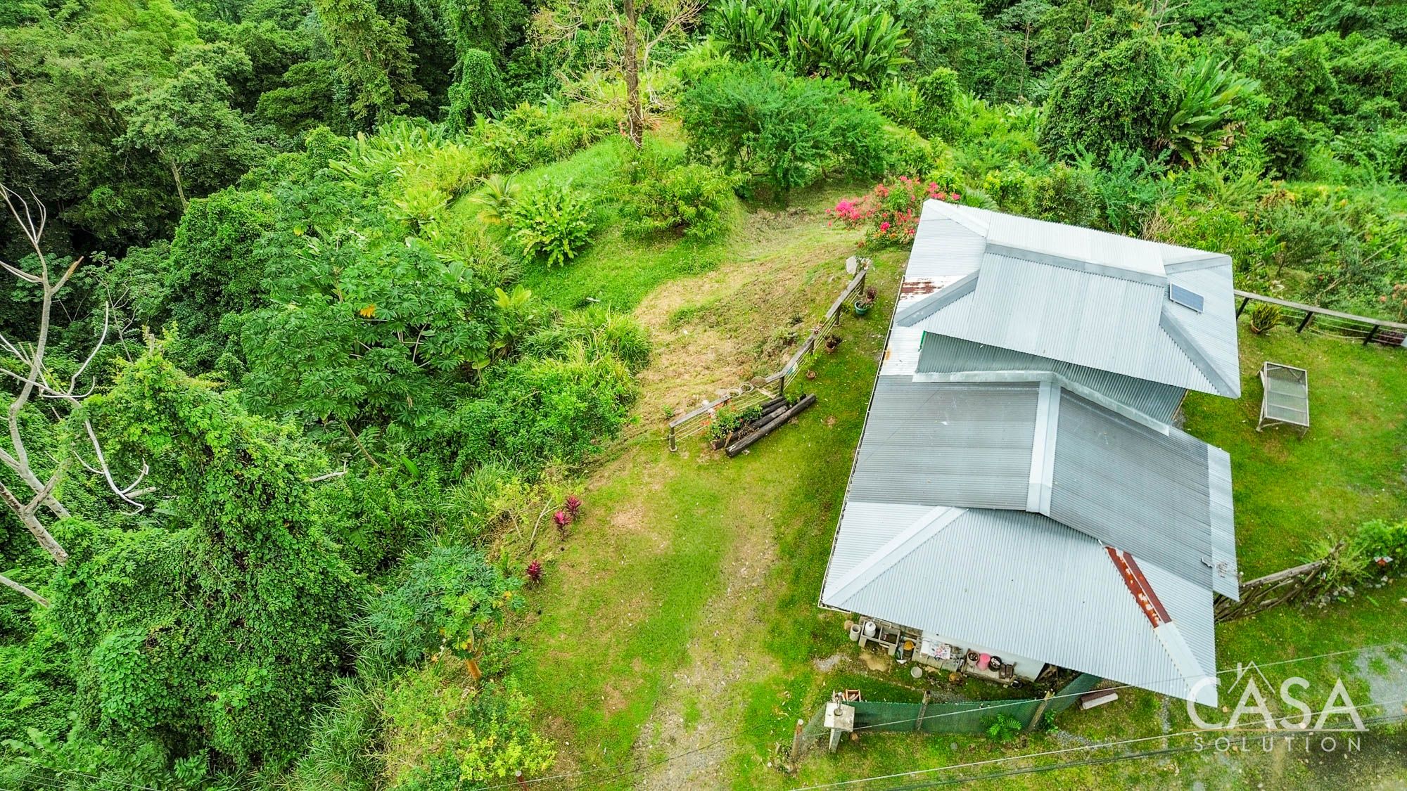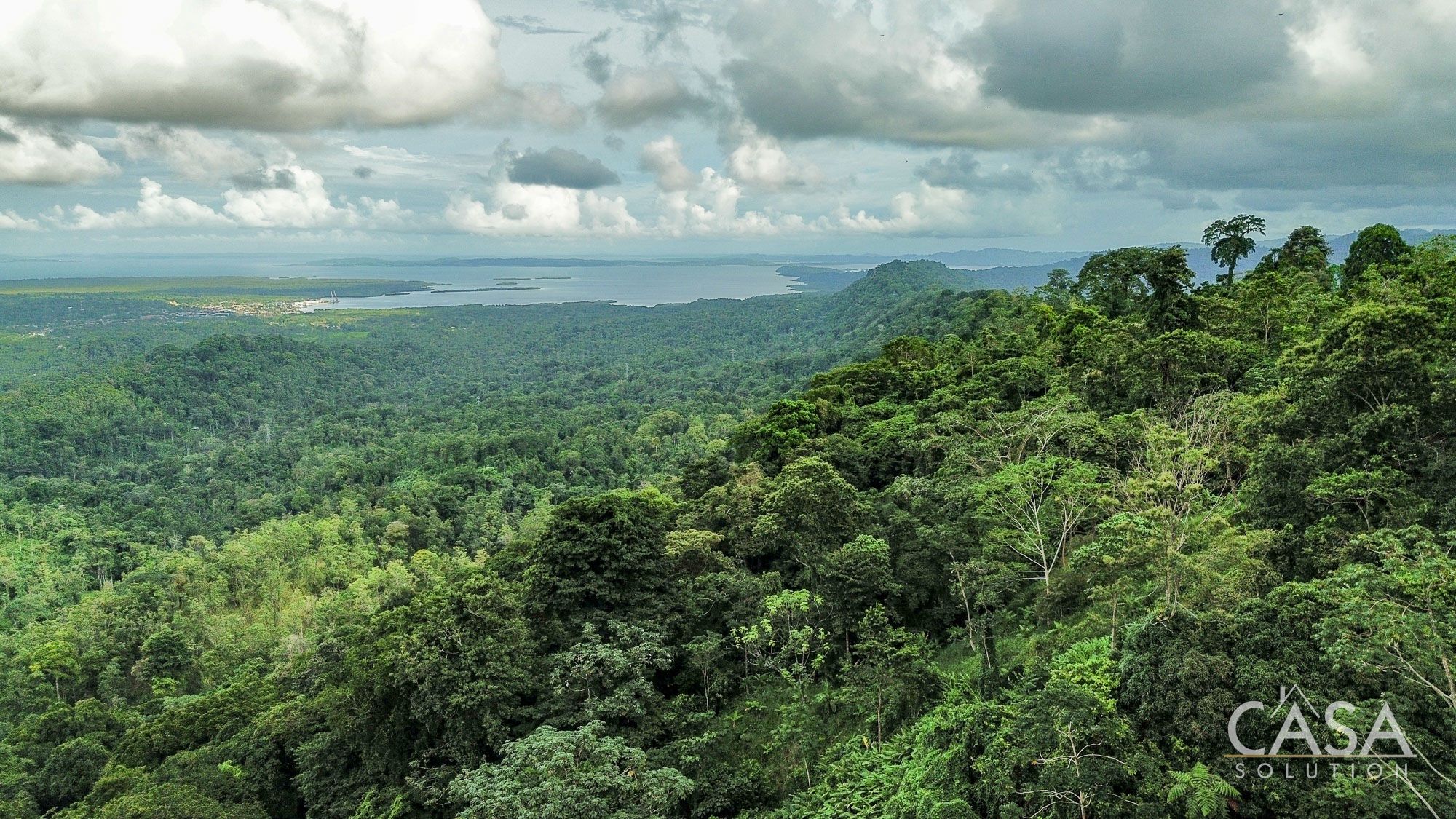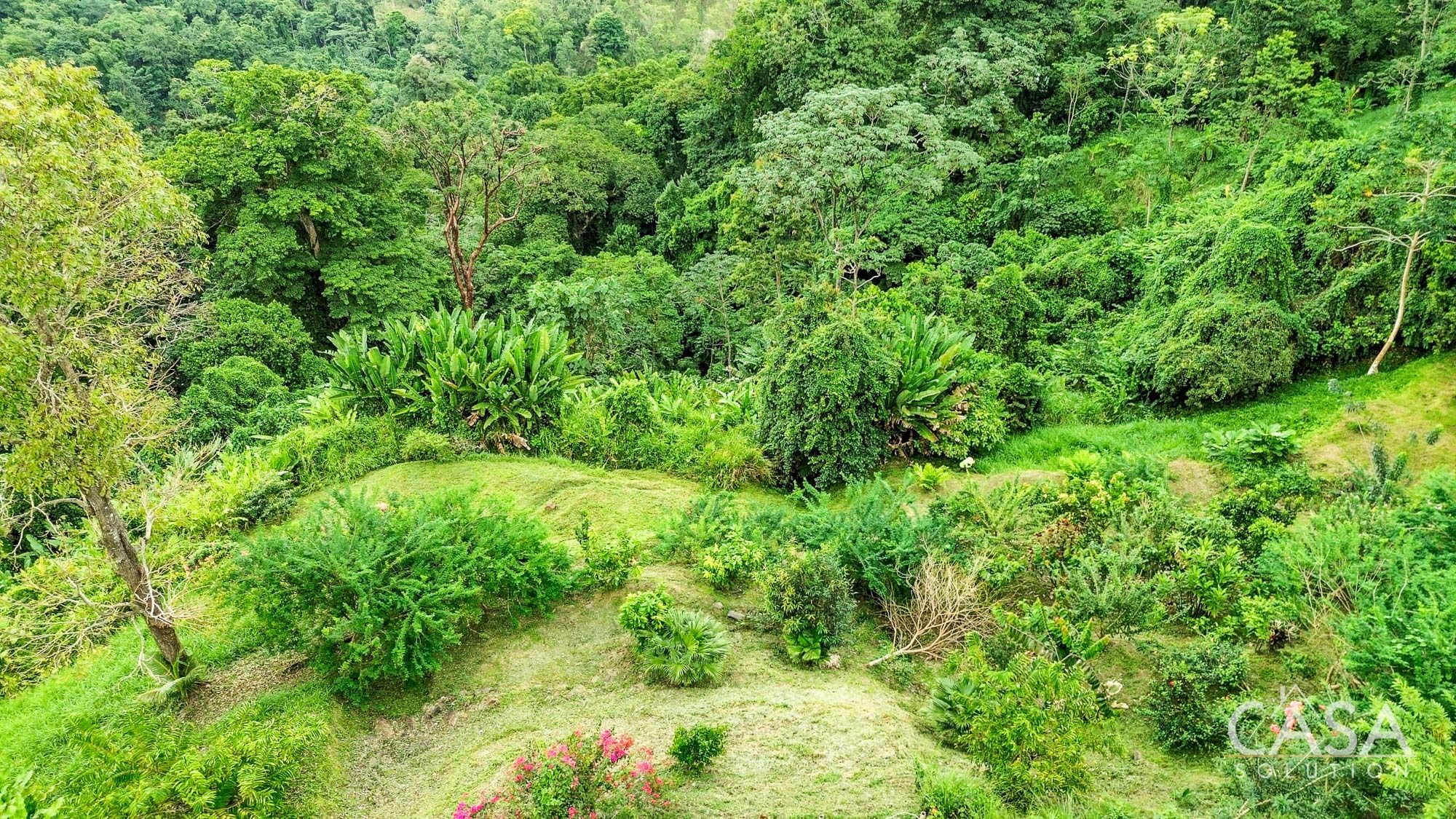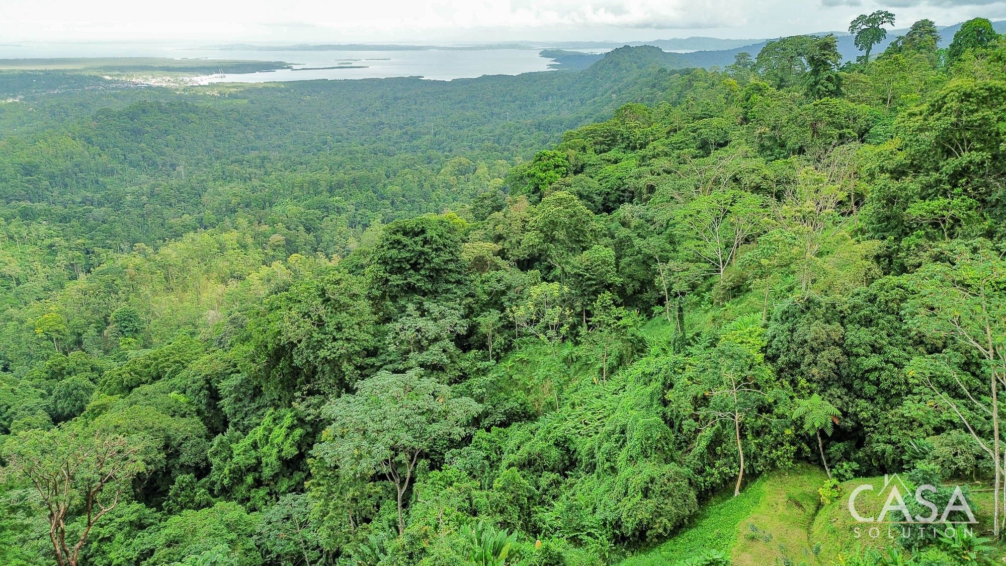 Mature cacao trees anchor the farm and reflect long-term cultivation rather than recent planting. The predominantly sloped terrain supports natural drainage and opens layered views toward the surrounding mountains. The elevation adds depth across the cacao groves and creates distinct areas where future structures or expansion could be positioned with intention.