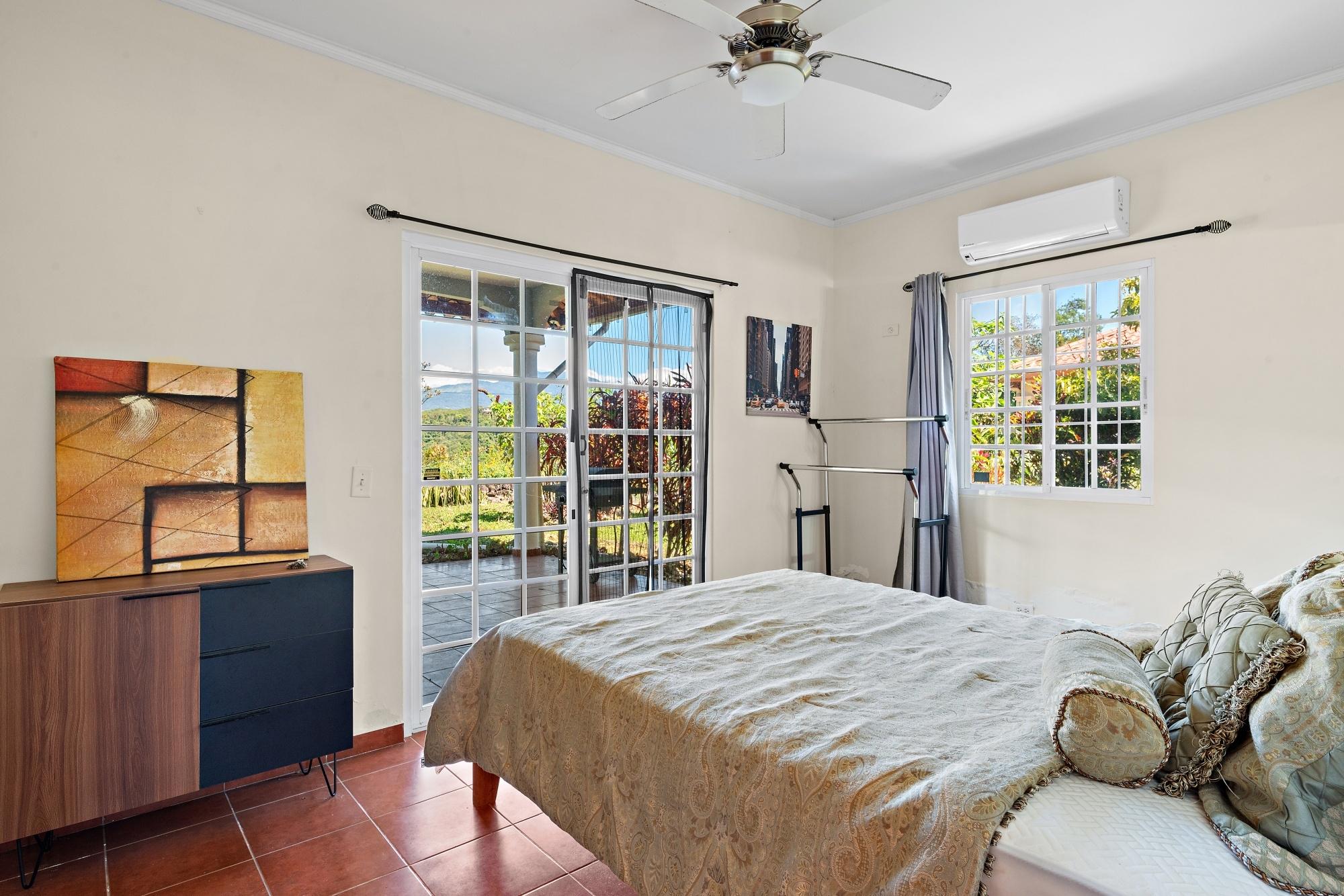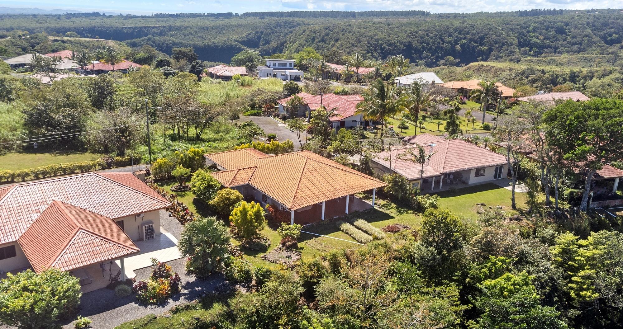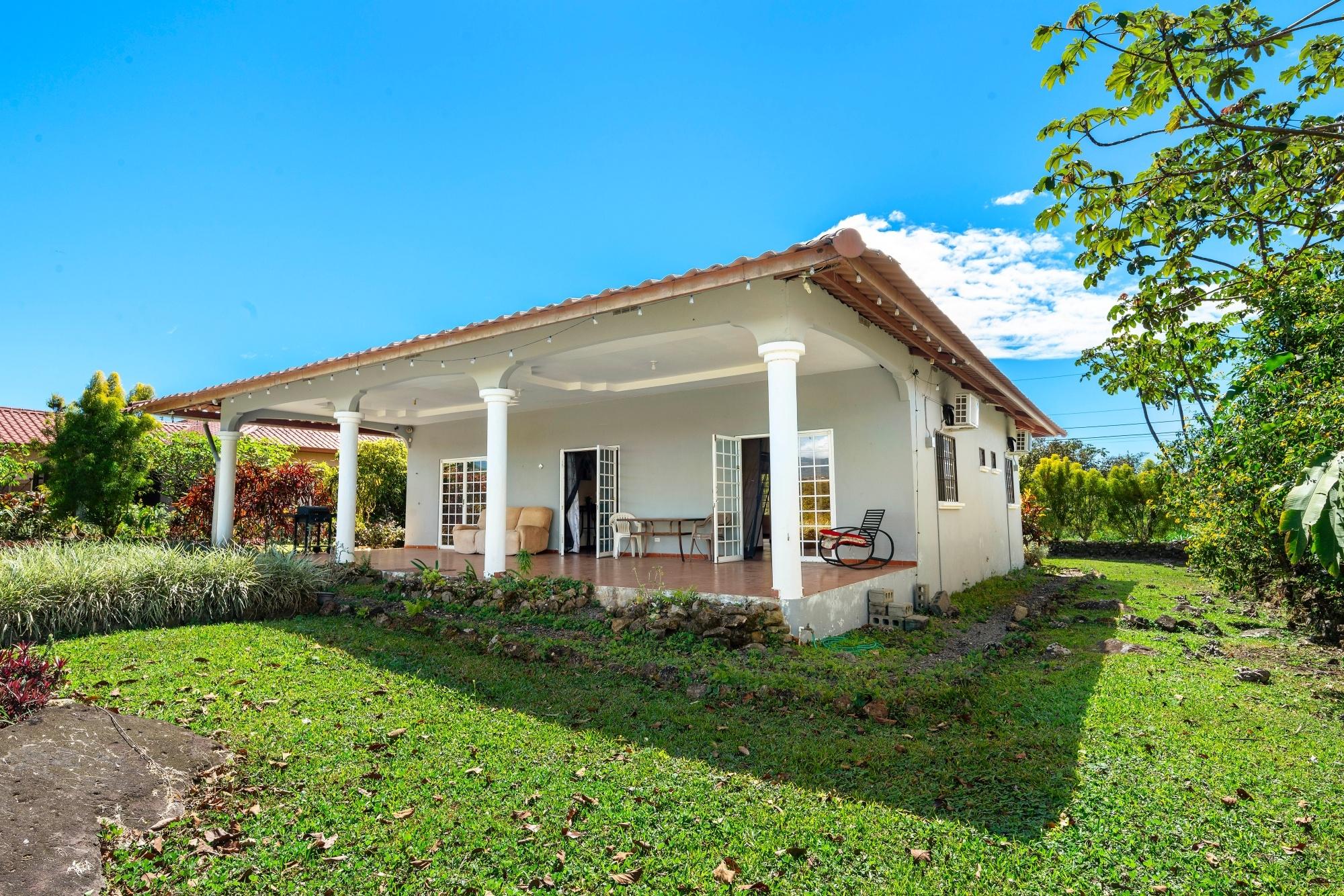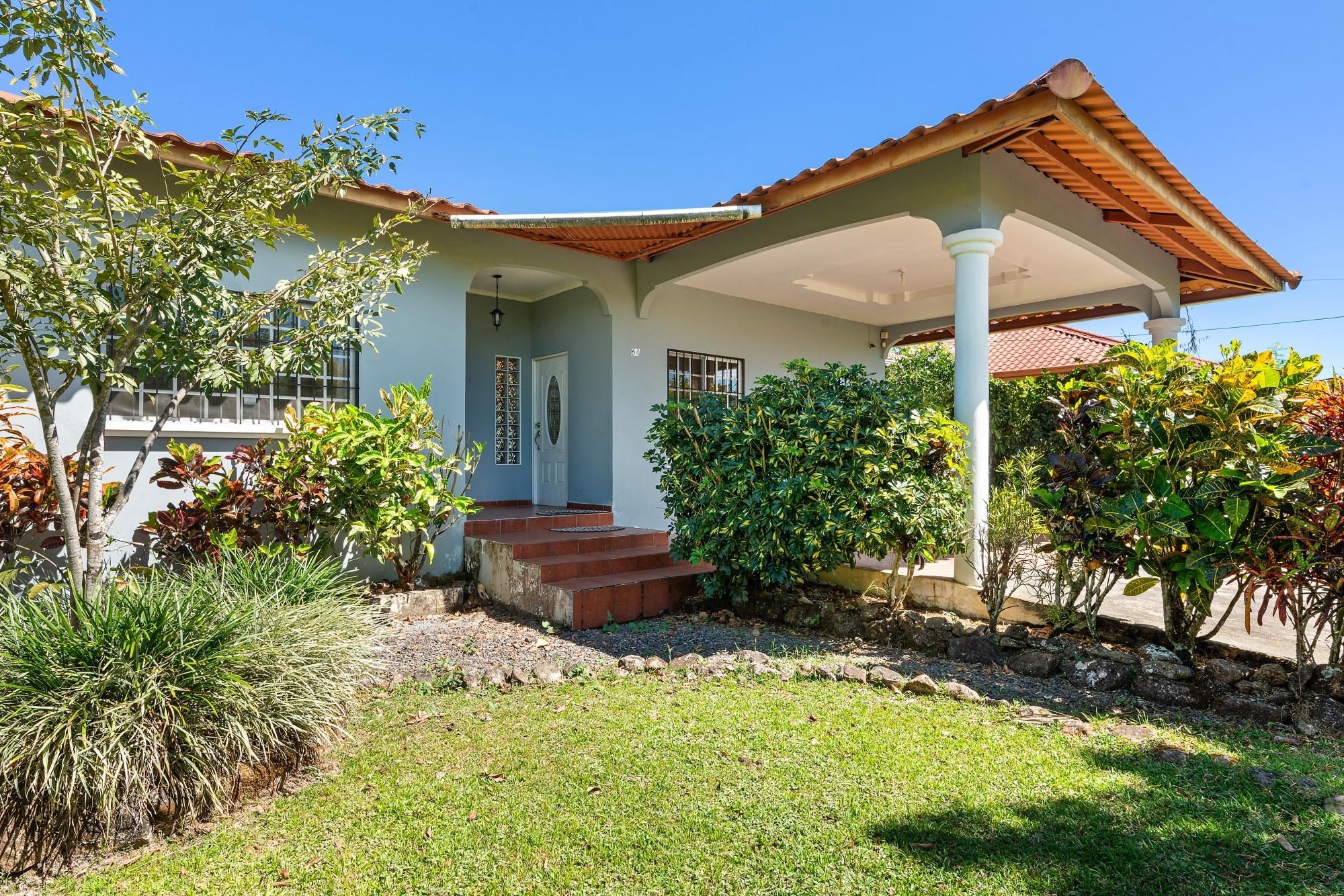 This neat and well-maintained home is located in the established residential neighborhood of Brisas Boqueteñas, approximately 15 minutes from downtown Boquete. Set on a generous 800 m² lot and positioned directly on the canyon, the property offers beautiful canyon and mountain views in a peaceful setting without feeling remote. The home is practical, comfortable, and easy to maintain — ideal for a couple, family, or anyone seeking a relaxed lifestyle close to town. The property offers three bedrooms with built-in wardrobes, two bedrooms with ensuite bathrooms, and independent air conditioning units in each bedroom. The main bedroom and second bedroom have direct access to the covered terrace. Home Features The house has a simple open layout that allows for good natural light and airflow throughout the living areas. • Open-plan living and dining area • Functional kitchen with wood cabinetry and durable countertops • Breakfast nook for casual meals or morning coffee • Laundry room conveniently located next to the kitchen with additional storage • Sliding doors leading to a covered terrace overlooking the canyon The covered terrace is one of the highlights of the home, offering open canyon and mountain views that can be enjoyed year-round. • Ideal for relaxing, entertaining, or enjoying the scenery • Quiet surroundings with minimal traffic • A great balance between nature and residential living Additional Details • Semi-furnished (major appliances included) • Covered carport • On-site water reserve tank • Pet-friendly yard space • Solid construction suited to Boquete’s mountain climate