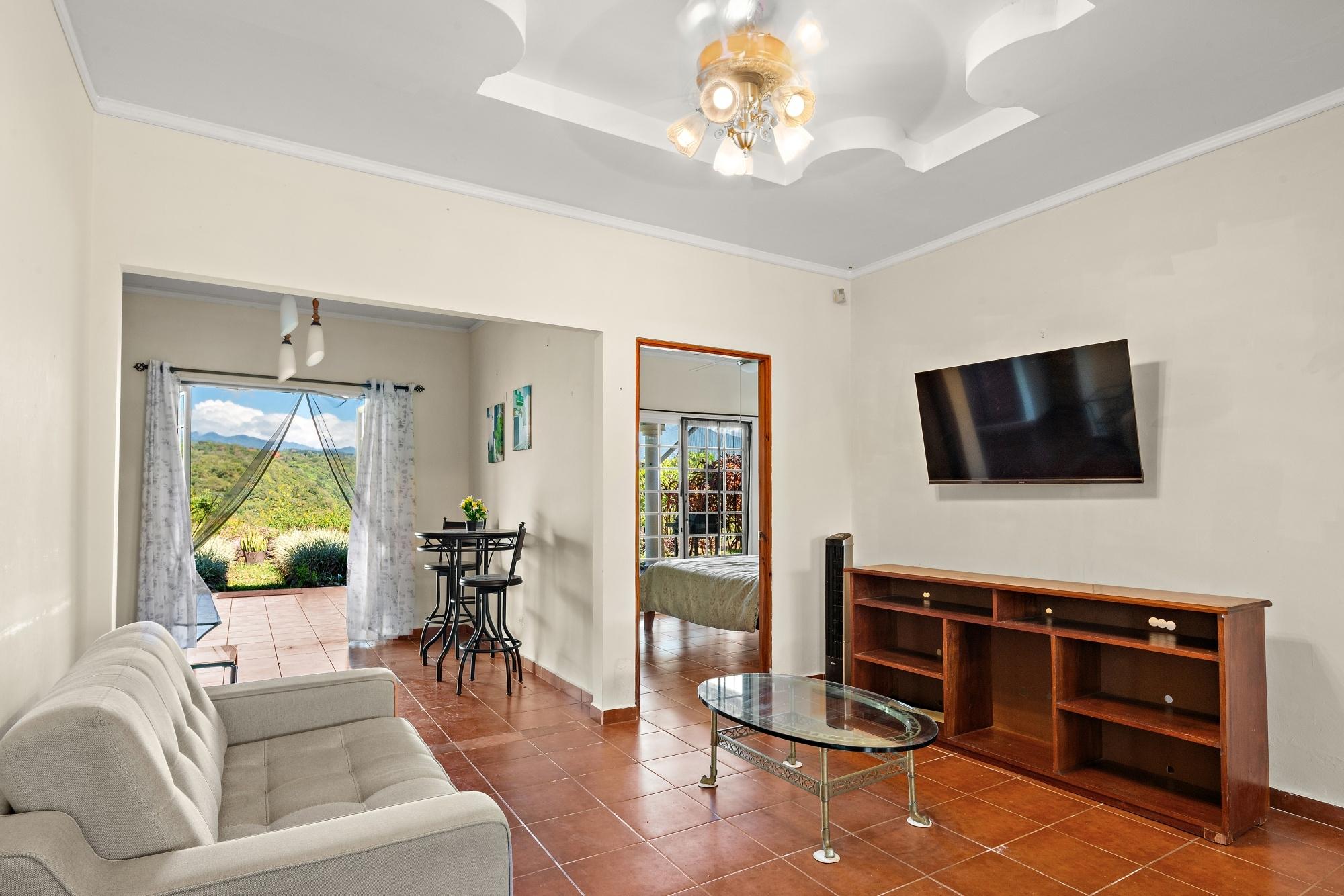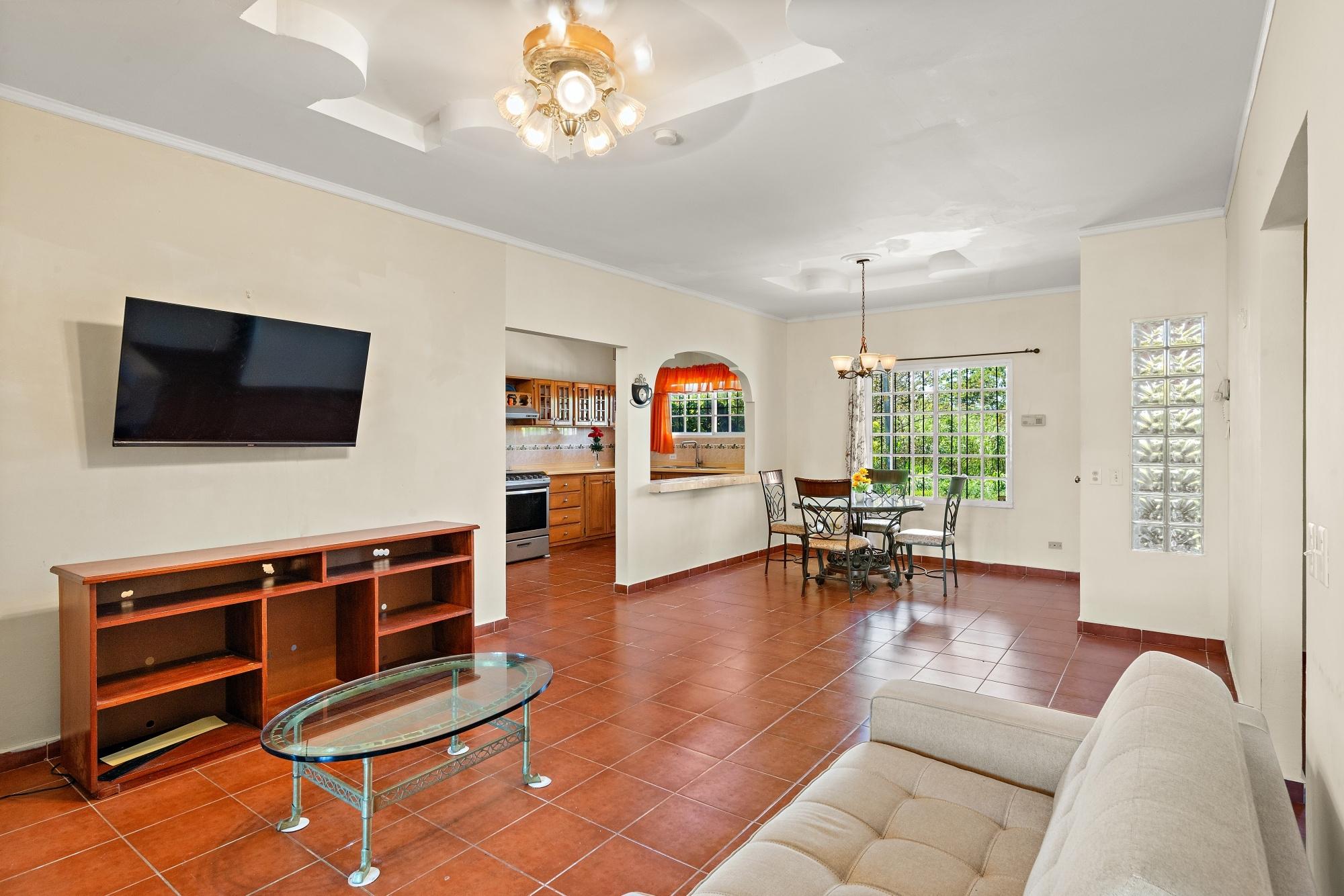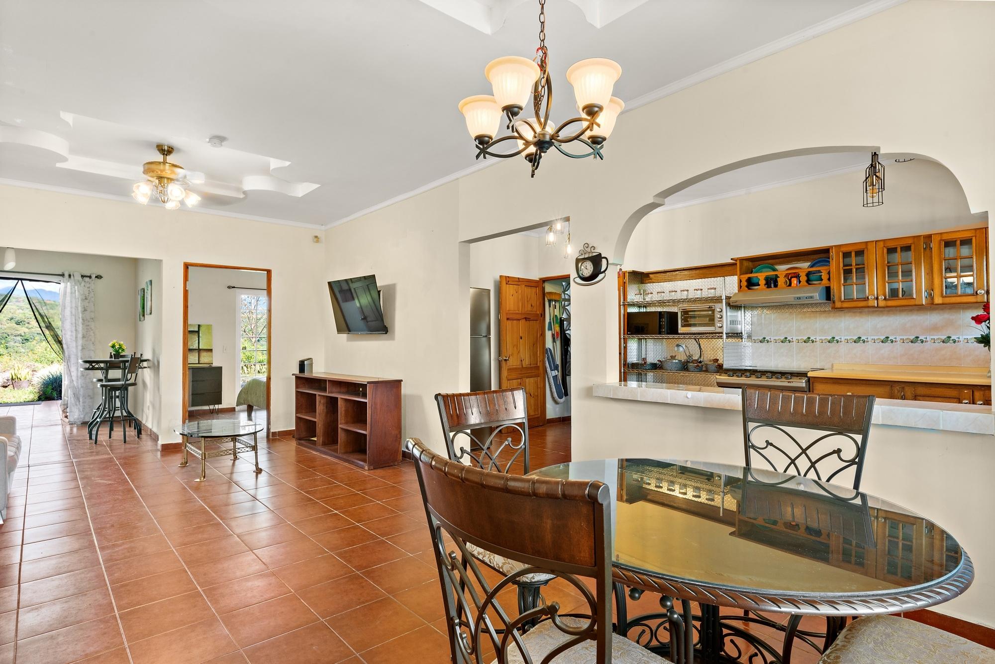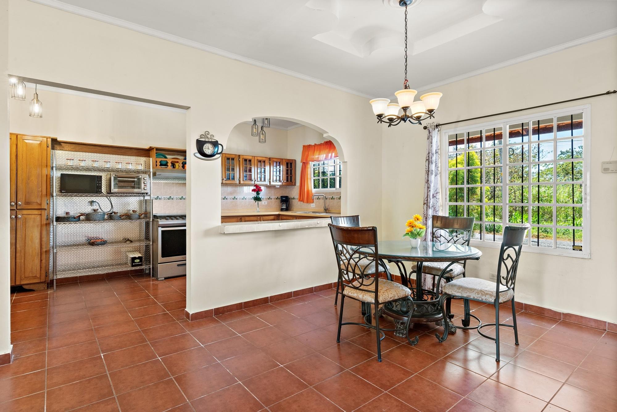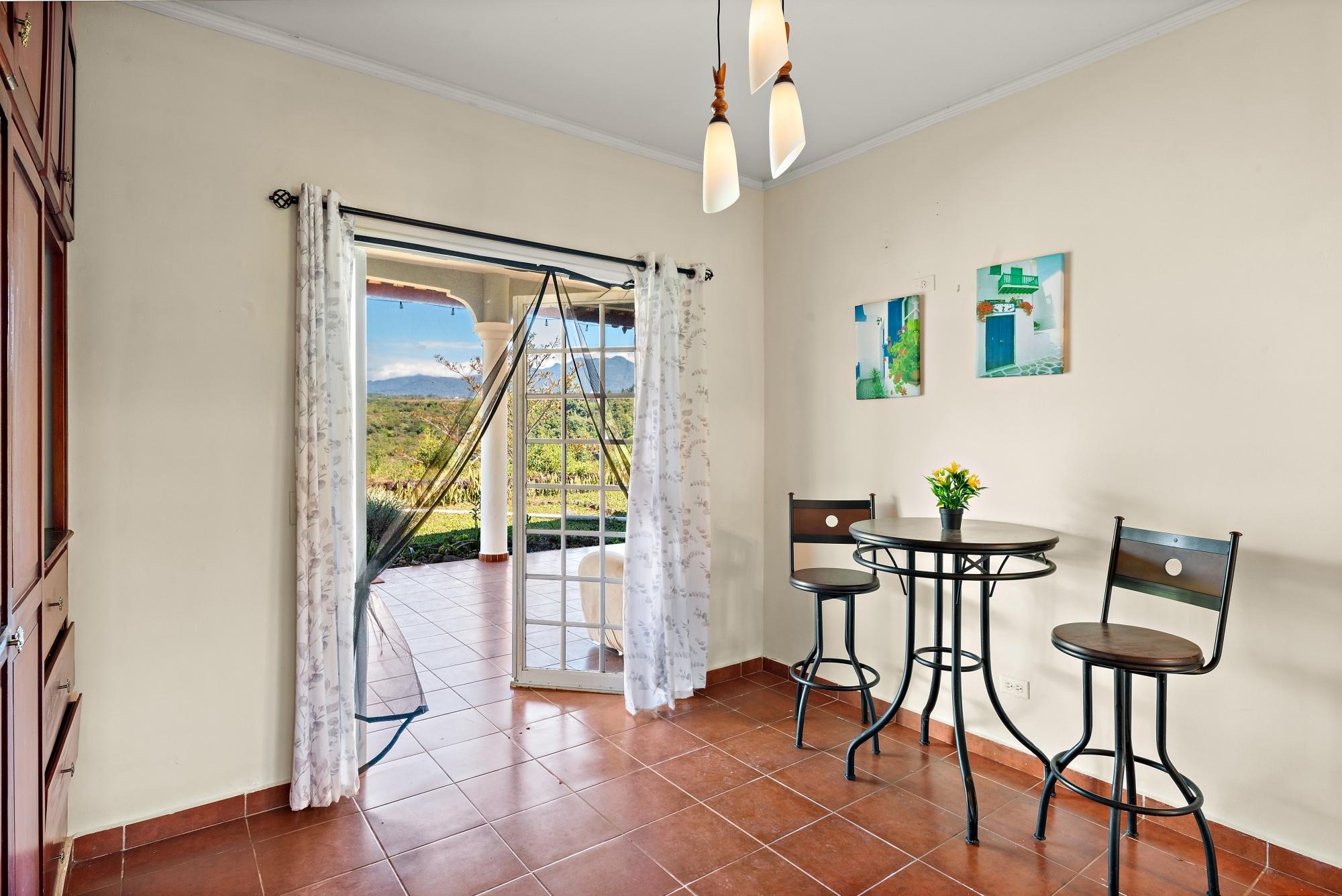 This neat and well-maintained home is located in the established residential neighborhood of Brisas Boqueteñas, approximately 15 minutes from downtown Boquete. Set on a generous 800 m² lot and positioned directly on the canyon, the property offers beautiful canyon and mountain views in a peaceful setting without feeling remote. The home is practical, comfortable, and easy to maintain — ideal for a couple, family, or anyone seeking a relaxed lifestyle close to town. The property offers three bedrooms with built-in wardrobes, two bedrooms with ensuite bathrooms, and independent air conditioning units in each bedroom. The main bedroom and second bedroom have direct access to the covered terrace. Home Features The house has a simple open layout that allows for good natural light and airflow throughout the living areas. • Open-plan living and dining area • Functional kitchen with wood cabinetry and durable countertops • Breakfast nook for casual meals or morning coffee • Laundry room conveniently located next to the kitchen with additional storage • Sliding doors leading to a covered terrace overlooking the canyon The covered terrace is one of the highlights of the home, offering open canyon and mountain views that can be enjoyed year-round. • Ideal for relaxing, entertaining, or enjoying the scenery • Quiet surroundings with minimal traffic • A great balance between nature and residential living Additional Details • Semi-furnished (major appliances included) • Covered carport • On-site water reserve tank • Pet-friendly yard space • Solid construction suited to Boquete’s mountain climate