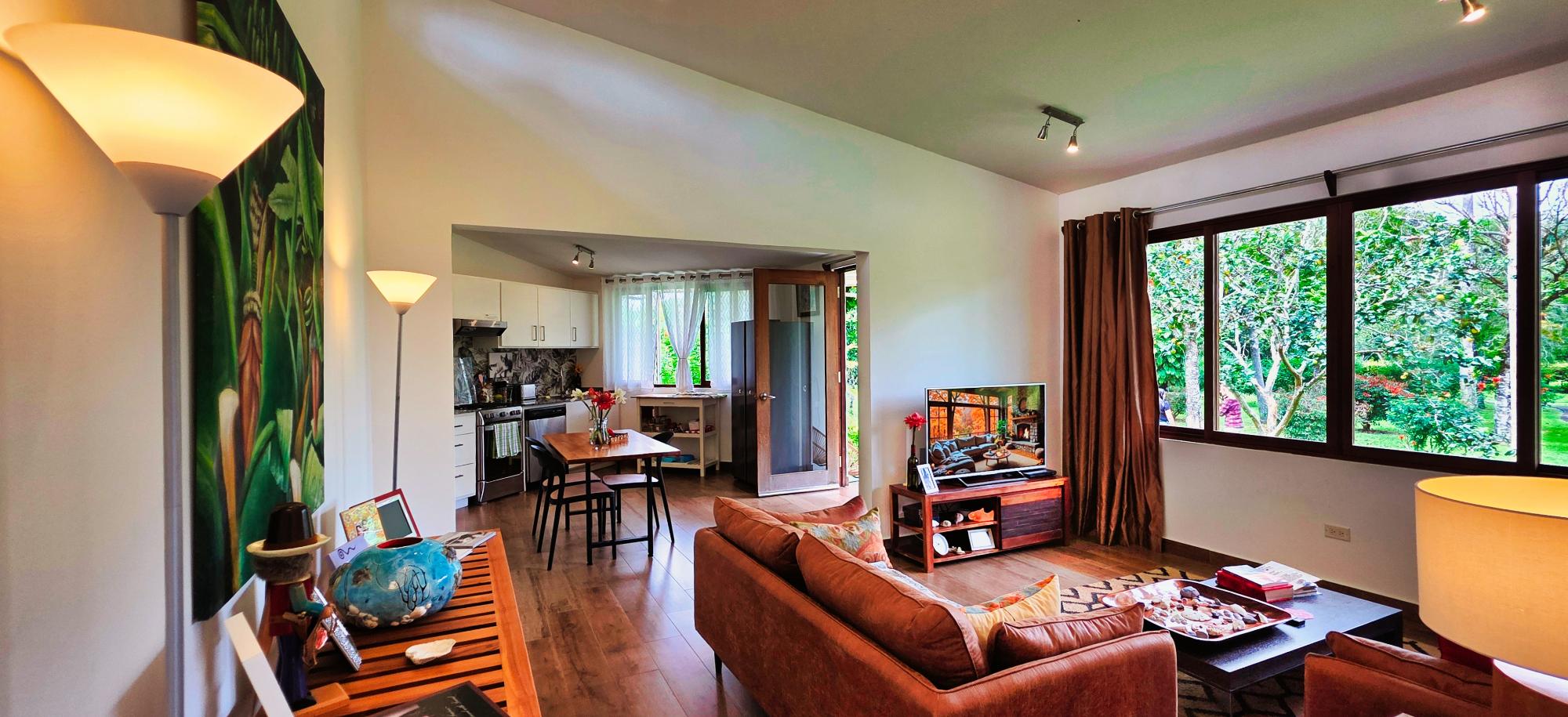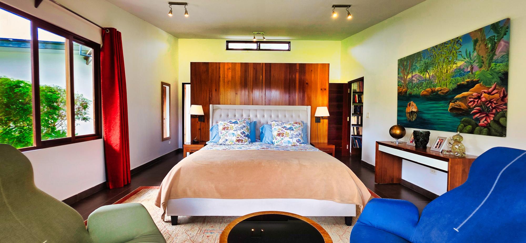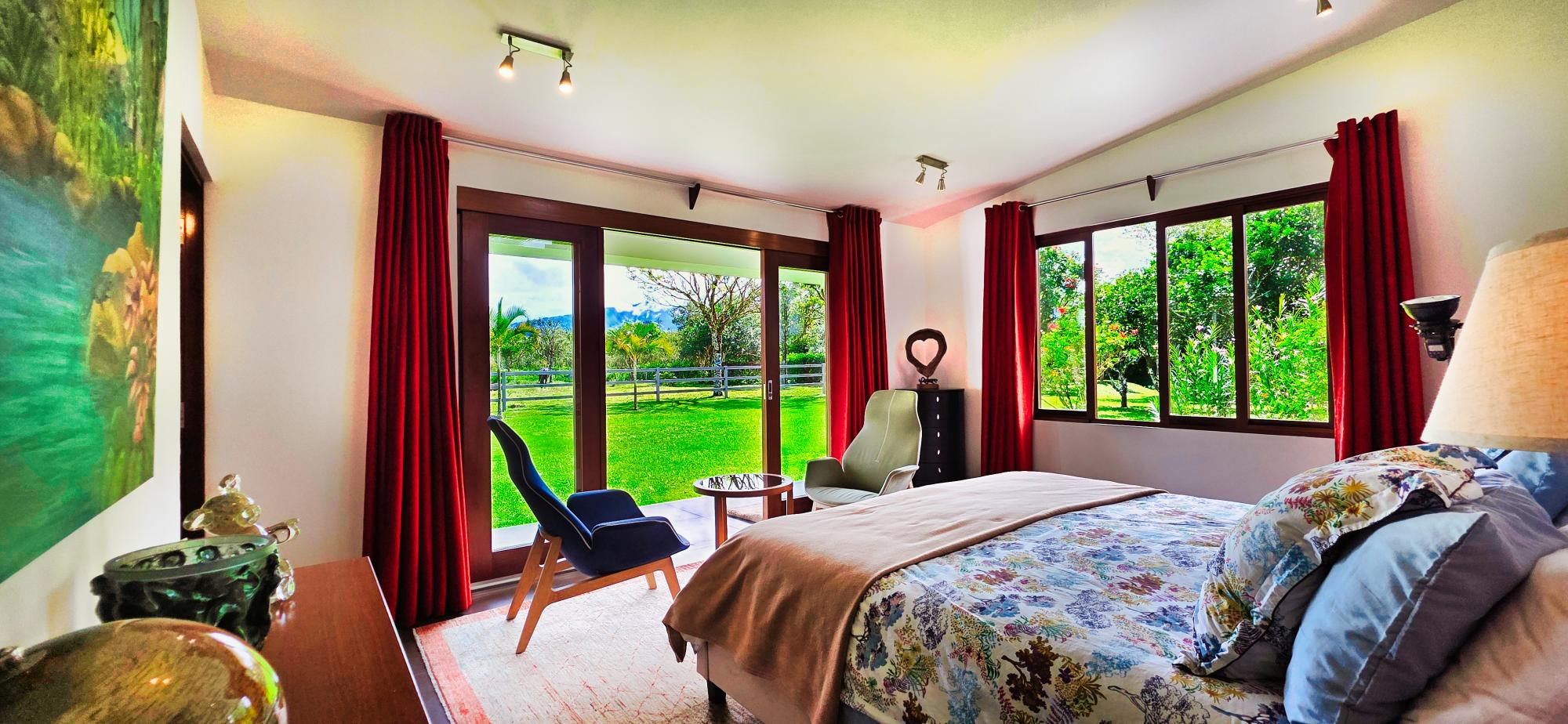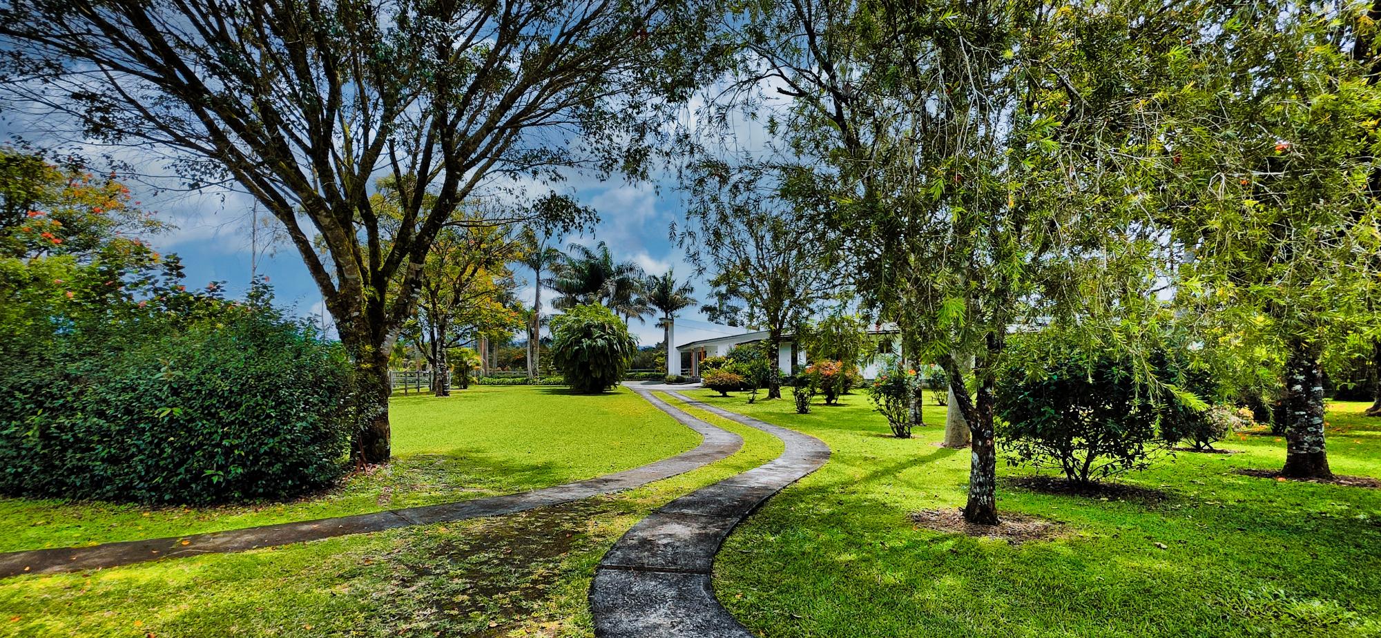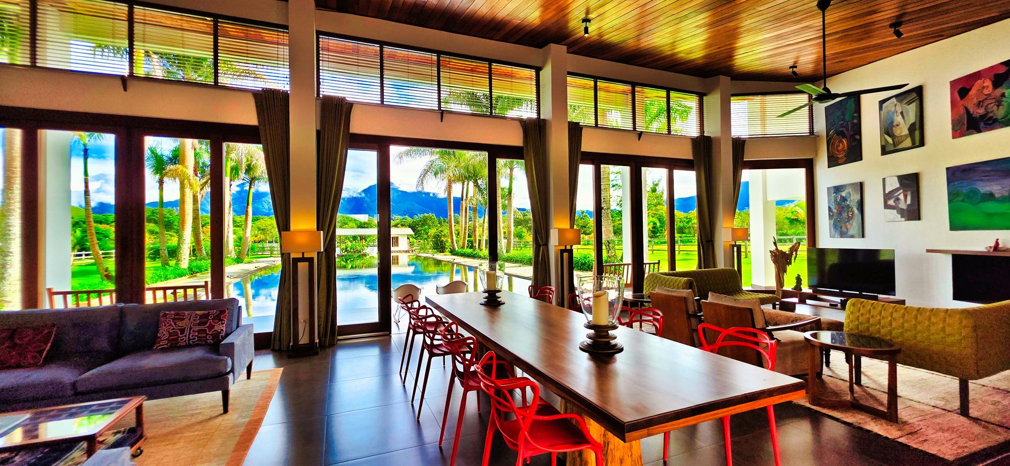 Luxury Home for Sale in Volcan, Tierras Altas, Chiriqui – An architectural jewel nestled in the prestigious Las Lagunas area, surrounded by nature, mountains, and the fresh air of Panama’s highlands. This majestic residence rises on a private 1.75-hectare (4.32-acre) estate, just 2.8 km (9 minutes by car) from Volcán’s main road, and only minutes away from the iconic lagoons and renowned coffee estates of the region. The main residence boasts over 900 m² (9,687 ft2) of construction, combining refined interiors with elegant open terraces designed to enjoy 360° panoramic mountain views and a private interior garden with swimming pool. House is offered as non-furnished. Key Features: Expansive living and dining room with floor-to-ceiling windows and a reflecting pond. Large, fully equipped kitchen with pantry. Three primary bedrooms, each with ensuite bathroom. Two independent apartments with living room, kitchen, and private bedroom with ensuite bath – ideal for guests or generating rental income. A spacious studio, currently used as an art atelier, that can easily be transformed into a private office or creative space according to the owner’s needs. Covered parking for two vehicles on one side of the property, plus a private parking area with direct access to the residence. Extensive landscaped gardens with mature fruit trees, ornamental flowers, and lush green areas, blending luxury living with the natural charm of the highlands. The property has its own water well and large reserve tanks, as well as connection to the IDAAN aqueduct, ensuring a reliable and constant water supply. Main house areas: Closed 459 m2 (4,940 ft2), open 422.84 m2