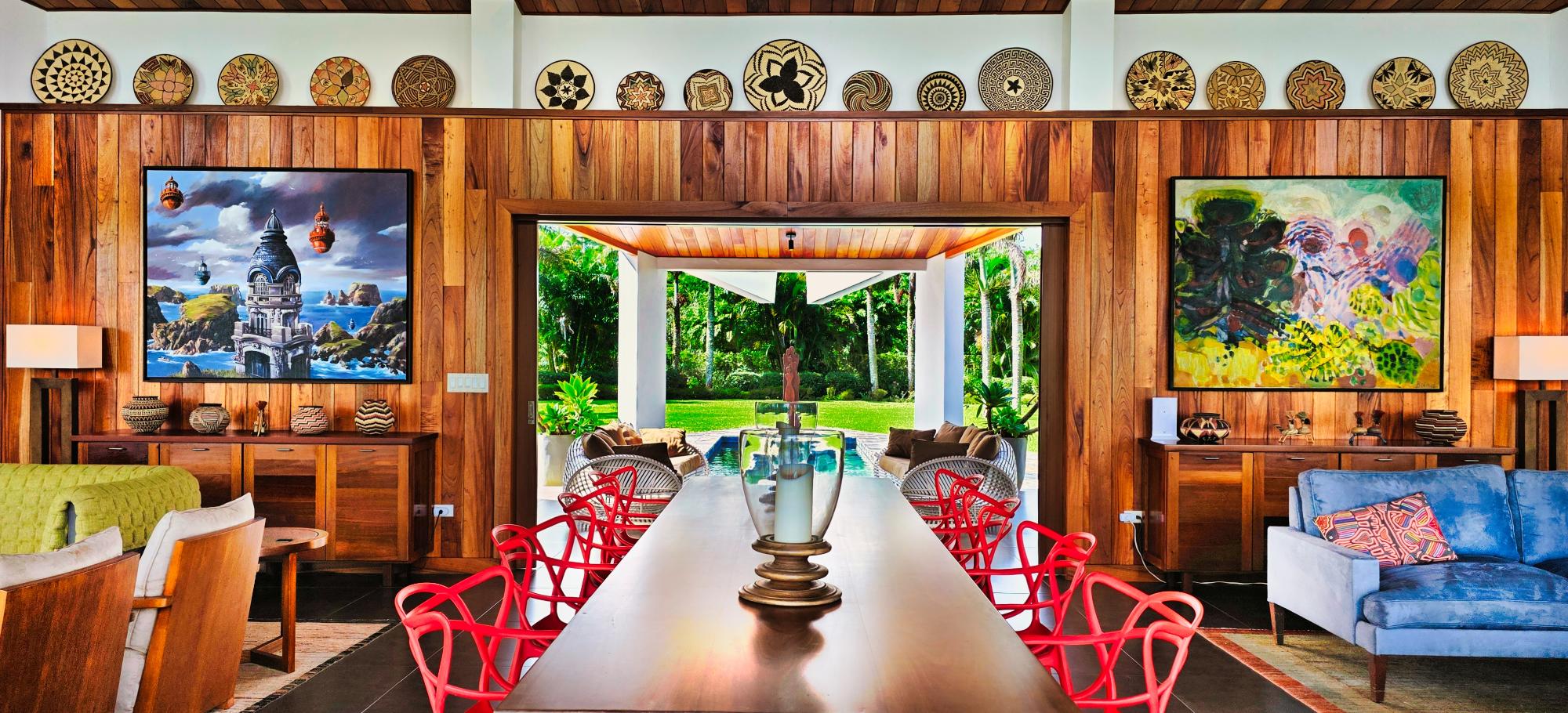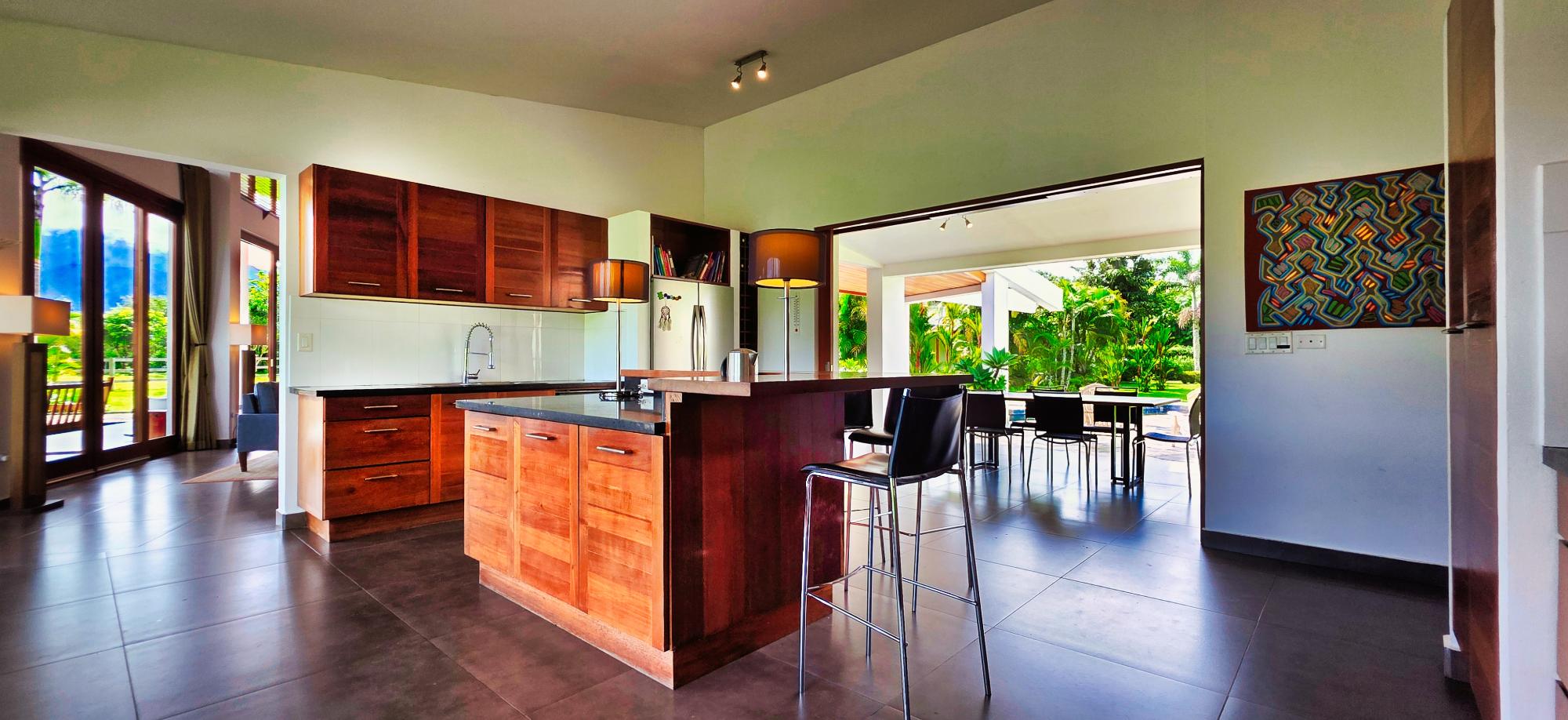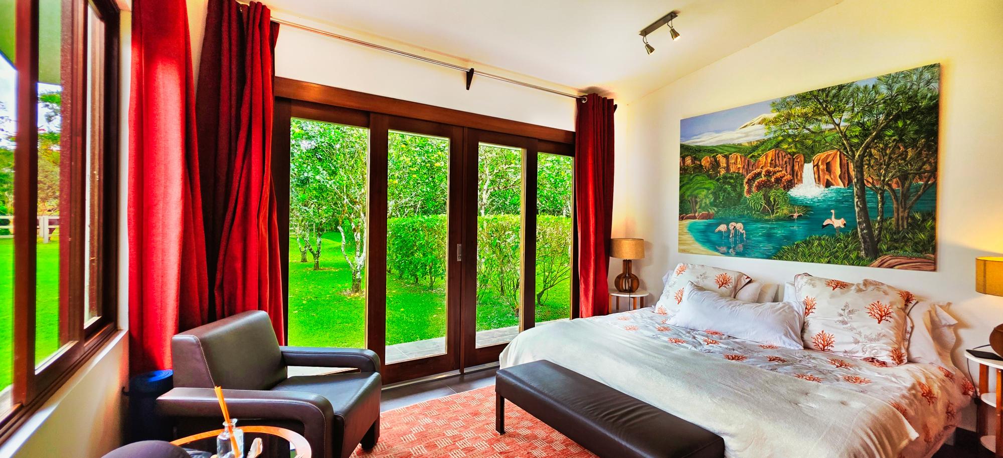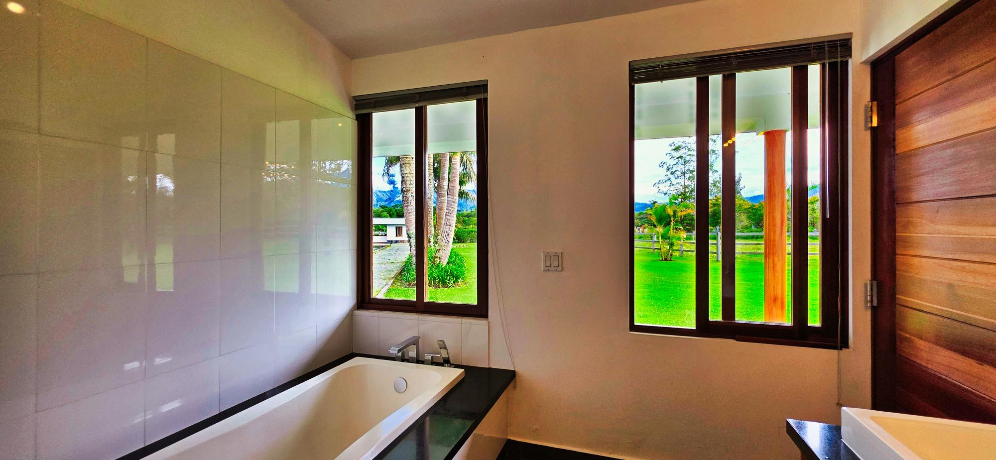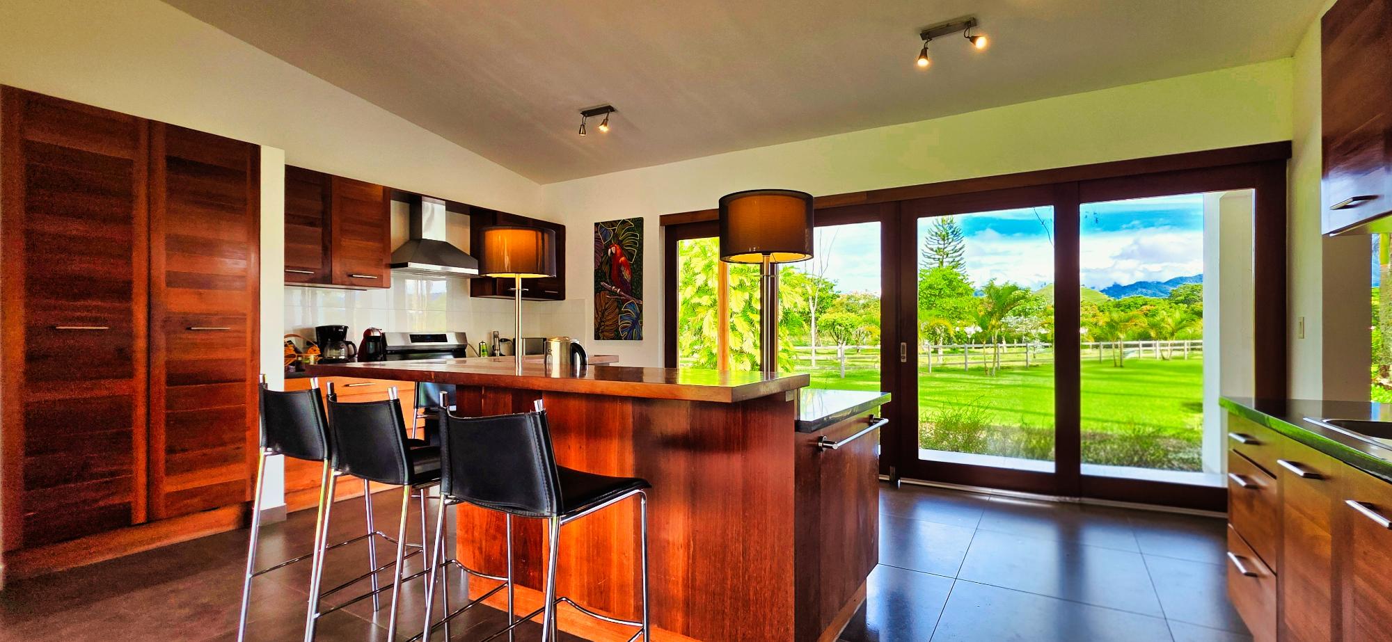 Luxury Home for Sale in Volcan, Tierras Altas, Chiriqui – An architectural jewel nestled in the prestigious Las Lagunas area, surrounded by nature, mountains, and the fresh air of Panama’s highlands. This majestic residence rises on a private 1.75-hectare (4.32-acre) estate, just 2.8 km (9 minutes by car) from Volcán’s main road, and only minutes away from the iconic lagoons and renowned coffee estates of the region. The main residence boasts over 900 m² (9,687 ft2) of construction, combining refined interiors with elegant open terraces designed to enjoy 360° panoramic mountain views and a private interior garden with swimming pool. House is offered as non-furnished. Key Features: Expansive living and dining room with floor-to-ceiling windows and a reflecting pond. Large, fully equipped kitchen with pantry. Three primary bedrooms, each with ensuite bathroom. Two independent apartments with living room, kitchen, and private bedroom with ensuite bath – ideal for guests or generating rental income. A spacious studio, currently used as an art atelier, that can easily be transformed into a private office or creative space according to the owner’s needs. Covered parking for two vehicles on one side of the property, plus a private parking area with direct access to the residence. Extensive landscaped gardens with mature fruit trees, ornamental flowers, and lush green areas, blending luxury living with the natural charm of the highlands. The property has its own water well and large reserve tanks, as well as connection to the IDAAN aqueduct, ensuring a reliable and constant water supply. Main house areas: Closed 459 m2 (4,940 ft2), open 422.84 m2