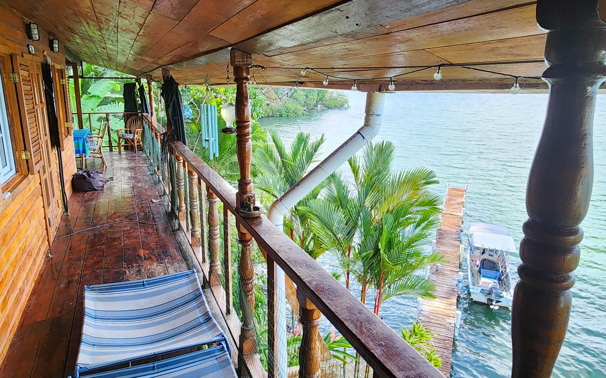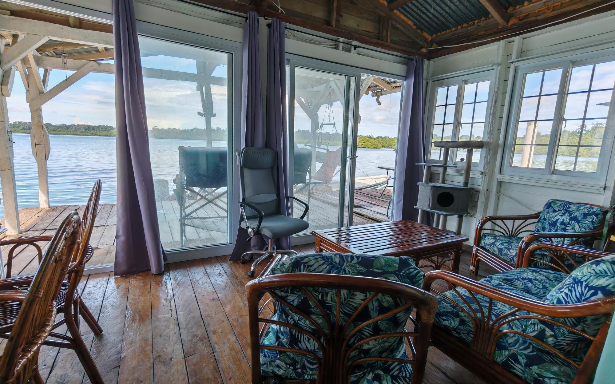 This beautiful property is facing straight North for the epic Bocas breeze. The shore line is without mangrove. The Casa Sunshine Property and her exotic fruit Orchard and Coral Reef are easily accessible with exceptional privacy. Located only a 10 minute boat ride from Almirante. The turn key home has the purest ocean views, it feels as though you’re waking up on a pirate ship at sea. With the galley, the living room and bedroom in one space, the deck wraps the building with comfortable outdoor living spaces on both sides. There is 1 full bathroom off the bedroom, and a half bathroom accessible from the outdoor living space. The home comes with a large list of new appliances and off grid systems and fabulous new additions to the main home are the new air conditioning unit, the completely upgraded electrical system and the powerful new solar system that fuels it. Details upon request! A major advantage of the property is the over the water Cabana and boat house, currently rented long term. Painted a sweet Caribbean turquoise on the outside, it has all new exterior siding, and has undergone extensive renovations over the last year. Completed projects on the Cabana include new A/C inverter split system, new windows and sliding doors, new on demand hot water heater, new water pump, new water tank, new wiring throughout the house, new electrical panel, new solar motion lights on the perimeter of the dock, and all new appliances. Getting permits to build over the water is becoming harder and harder in Bocas, so its a gift to have this lovely cabana already installed, which generates income.