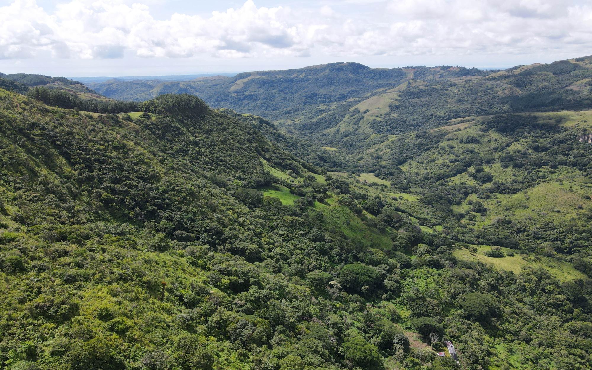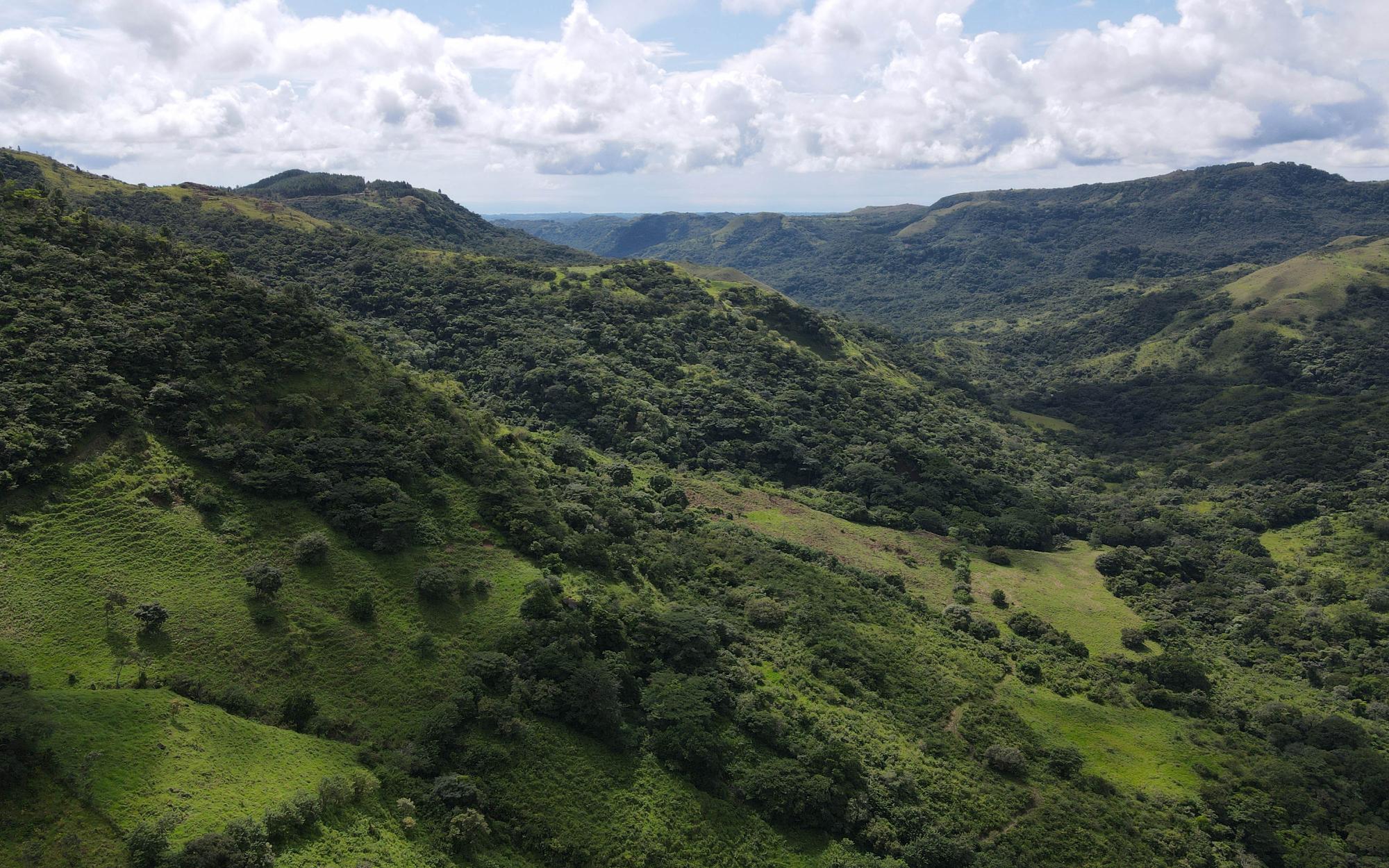 Located across the valley from the desirable community Altos de Maria, this area is known for its security, lush green landscaping, fresh highland climate, and of course the Panama's natural monument- Cerro Picacho. On the 36 Hectares of grass land and jungle which slope down to the Rio Maria, there are a multitude of naturally flat locations that suggest perfect building sites. Seemingly far from the rest of the world, this location is close to an hour from Panama City. Within the property's borders are hiking trails to exotic limestone cliffs, 5 natural springs, the Rio Maria River and one of her waterfalls pool along one border of the property. An exciting feature of this property is that it faces the Cerro Picacho and boasts unobstructed views from every possible building site. It’s south west orientation is optimal for sunsets cast over the exquisite natural beauty of the mountain. At the highest point of the property, closest to the road access, is a 1 bedroom cabin currently being completed, with floor to ceiling windows, live edge counter tops and custom table. The cabin is already equipped with solar and a septic system.