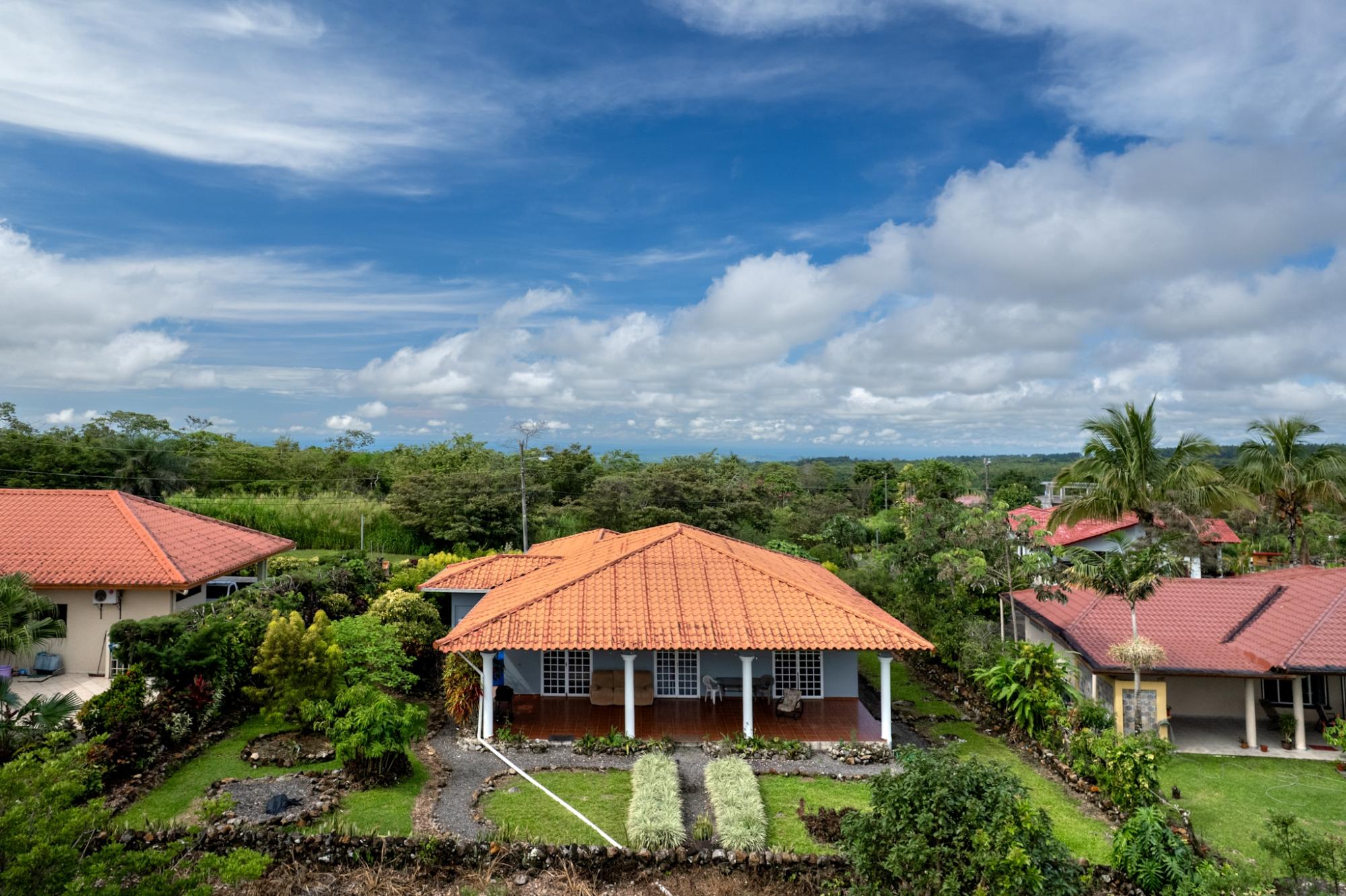 Charming Canyon View Home in Brisas Boquetanas Located just 15 minutes from downtown Boquete, this delightful home in the peaceful community of Brisas Boquetanas offers comfort, convenience, and spectacular canyon views. Set on an 800 m² lot, the home features an open floor plan that maximizes natural light and flow. The inviting kitchen is outfitted with warm wood cabinetry, ample counter space, and a cozy breakfast nook—perfect for casual dining. Just off the kitchen is a spacious laundry room with generous storage options. The large living room is accented with coved ceilings and opens onto the covered terrace through sliding patio doors. Enjoy your morning coffee or take in breathtaking sunsets from this serene outdoor space, also accessible from two of the bedrooms. There are three bedrooms in total, two with ensuite bathrooms, all featuring built-in wardrobes and individual air conditioning splits for personalized comfort. The home has been meticulously maintained and is move-in ready with immediate possession available. Whether you're looking for a full-time residence or a weekend retreat, this home delivers peaceful living with a view.