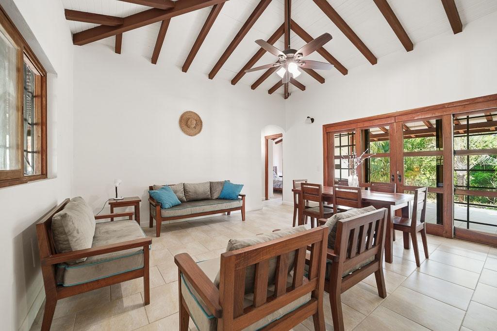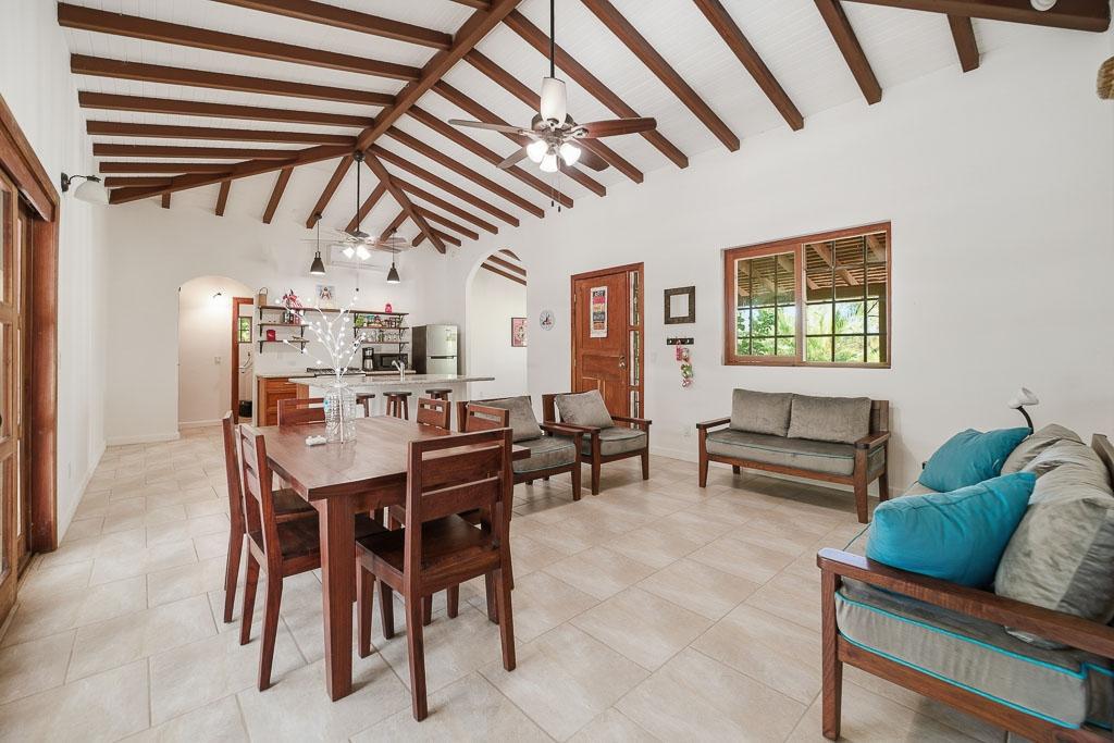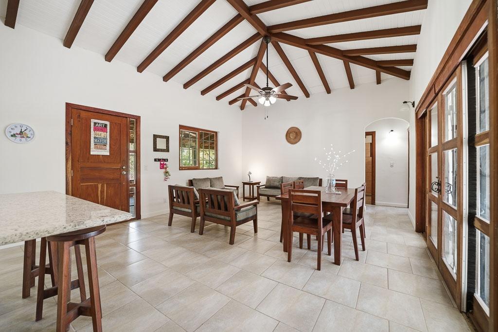 Built in 2019, this charming and spacious home is located just one mile from the beach at Los Destiladeros and a short drive to Pedasí. It offers an ideal balance between privacy and convenience—perfect for those who want space without being completely remote. The home features a comfortable layout with vaulted ceilings, exposed wood beams, and abundant natural light throughout. Bedrooms are well-sized, and the bathrooms offer a clean, functional design suited for both full-time living and vacation use. Set on a 2,464 m² lot (over half an acre), the property provides ample room to expand or customize. There is space for a pool, additional structures, or landscaped gardens, all while maintaining privacy from neighboring properties. Surrounded by mature palms and tropical vegetation, the setting feels quiet and relaxed. At the same time, you are just a two-minute drive to one of the best beaches in Panama and only minutes further to Pedasí, known for its restaurants, shops, and laid-back coastal lifestyle.