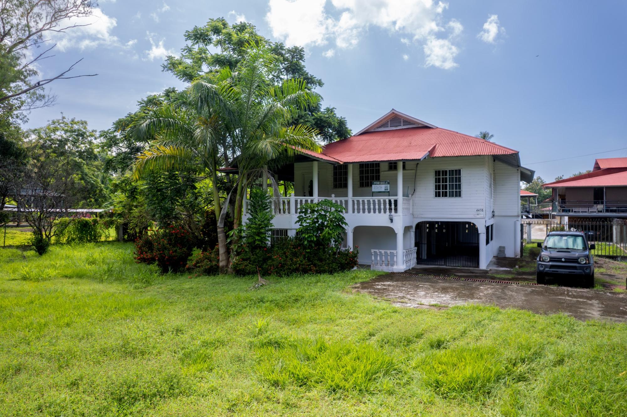 Step into history and comfort with this charming plantation-style residence in prestigious Las Palmas, once home to Chiquita Banana Company executives. Rarely do homes become available here, making this a special opportunity. This fully titled two-level estate blends classic character with modern potential. The upper floor features 3 spacious bedrooms, 2 baths, and an open living/dining area that flows to a custom balcony overlooking lush gardens-perfect for morning coffee or evening gatherings. The lower level offers a large garage, workshop, storage bodega, and a tiled room with private bath-ideal as a guest suite, home office, or rental unit. Property highlights include a quiet cul-de-sac location, fully fenced grounds with gated entry, and proximity to the community pool, tennis courts, and elementary school. Just a 10-minute walk to downtown shops, restaurants, banks, and the new hospital, with easy access to the planned pier and tourism development.