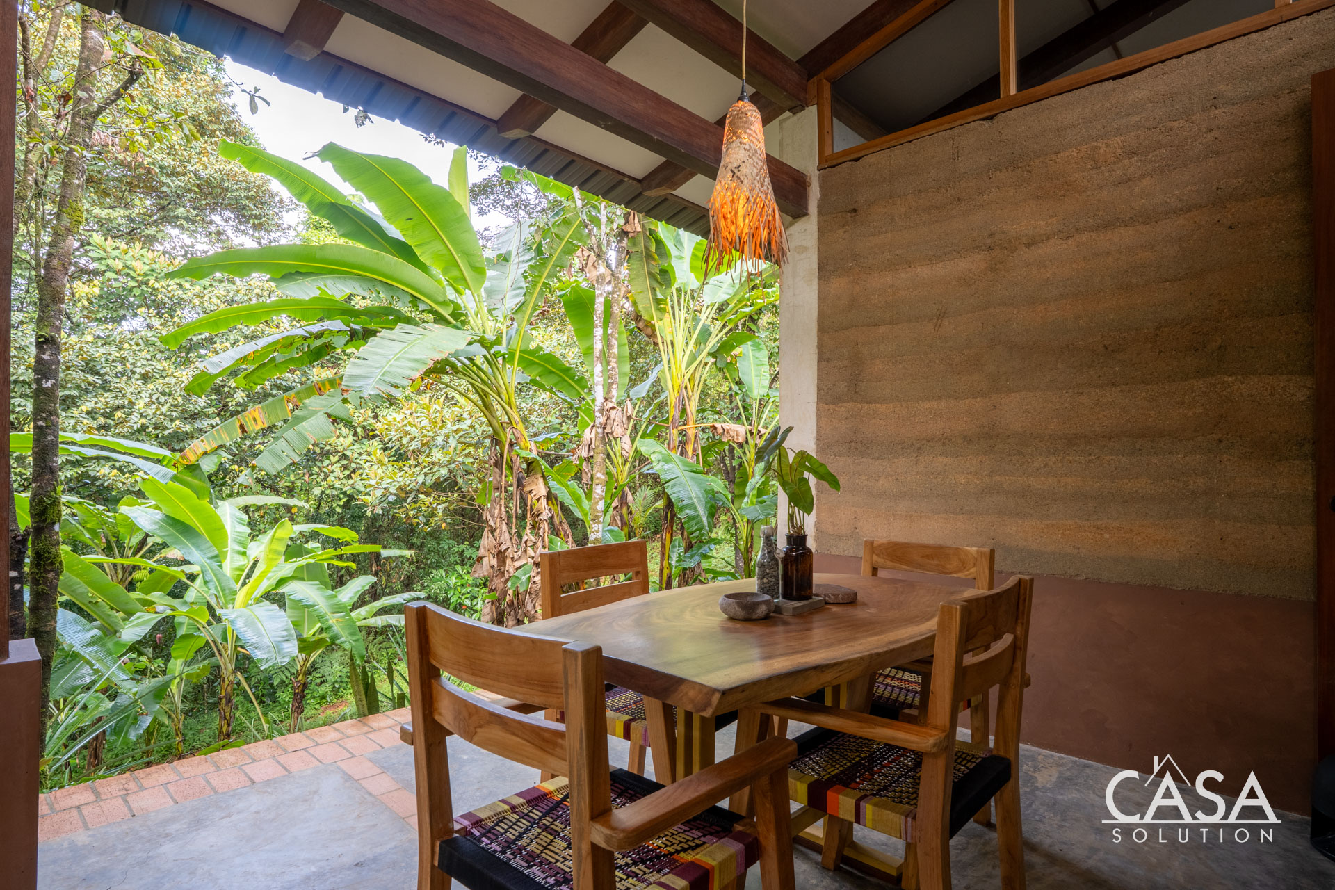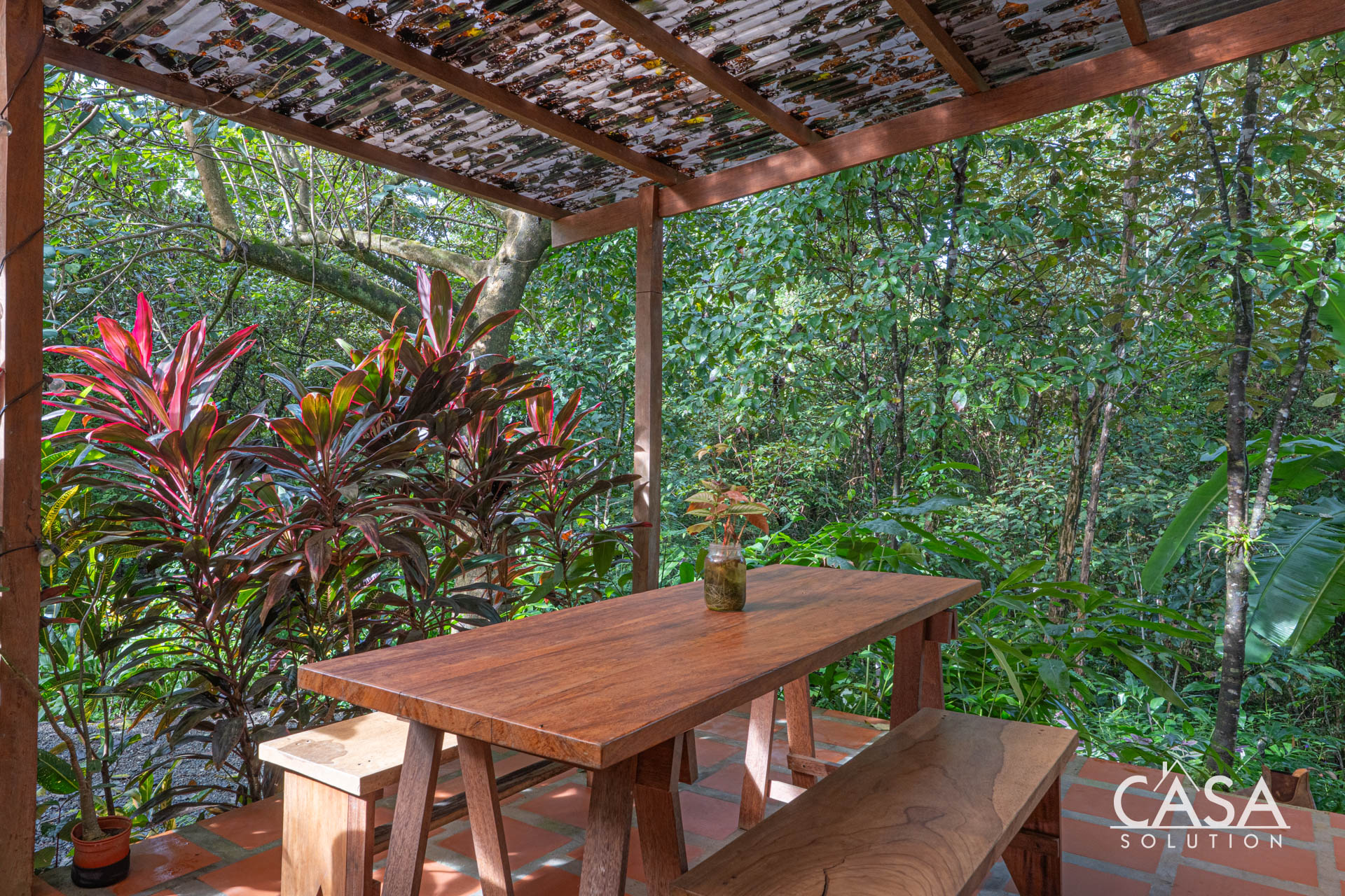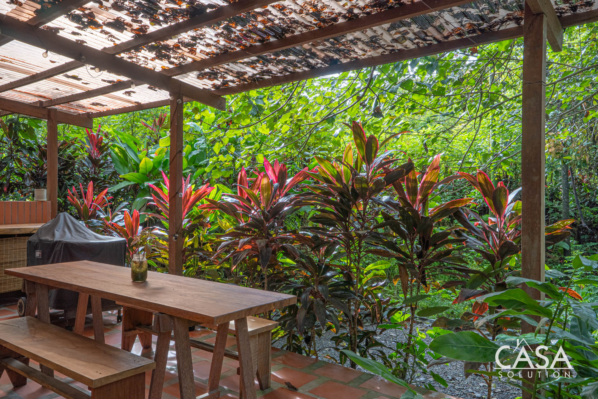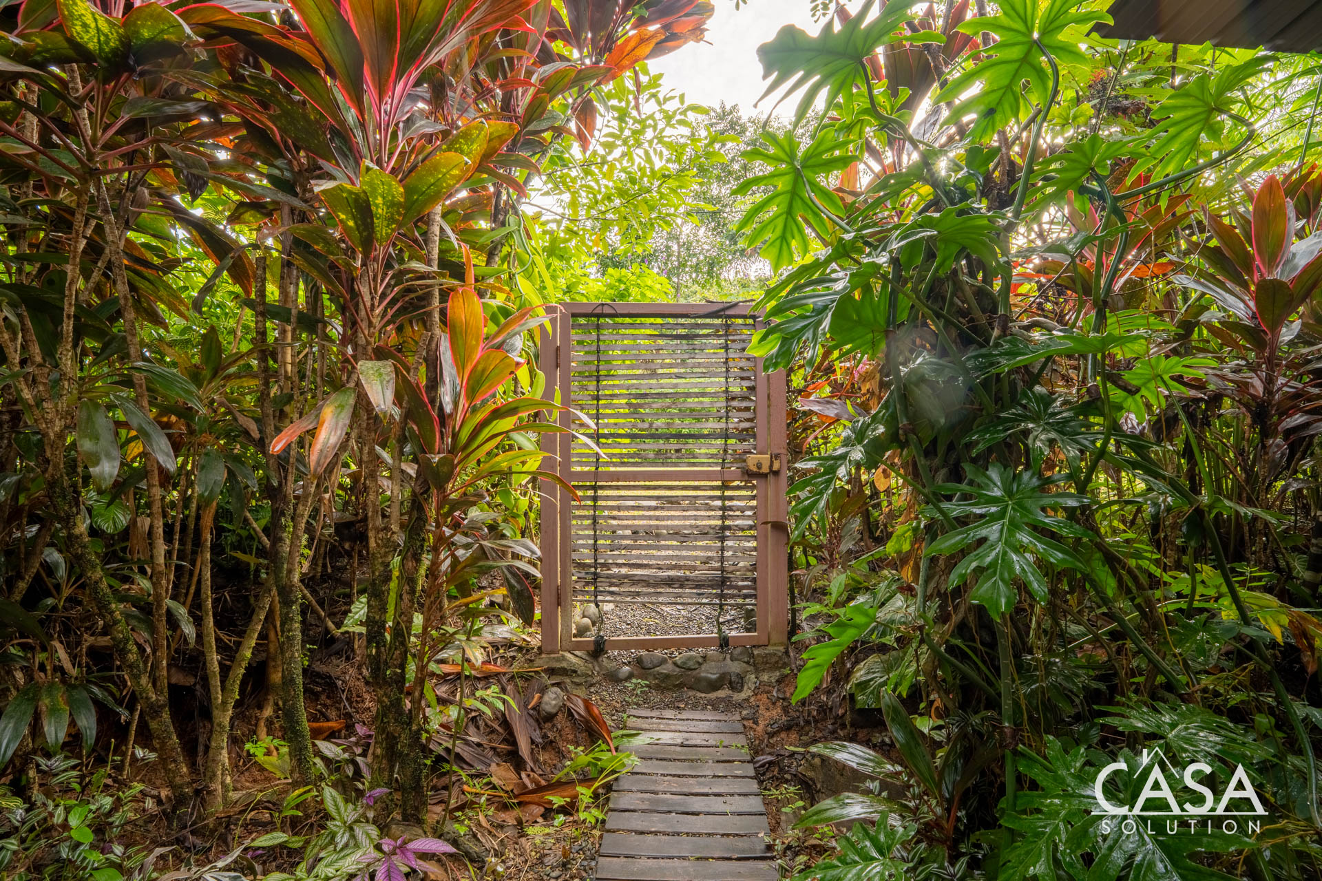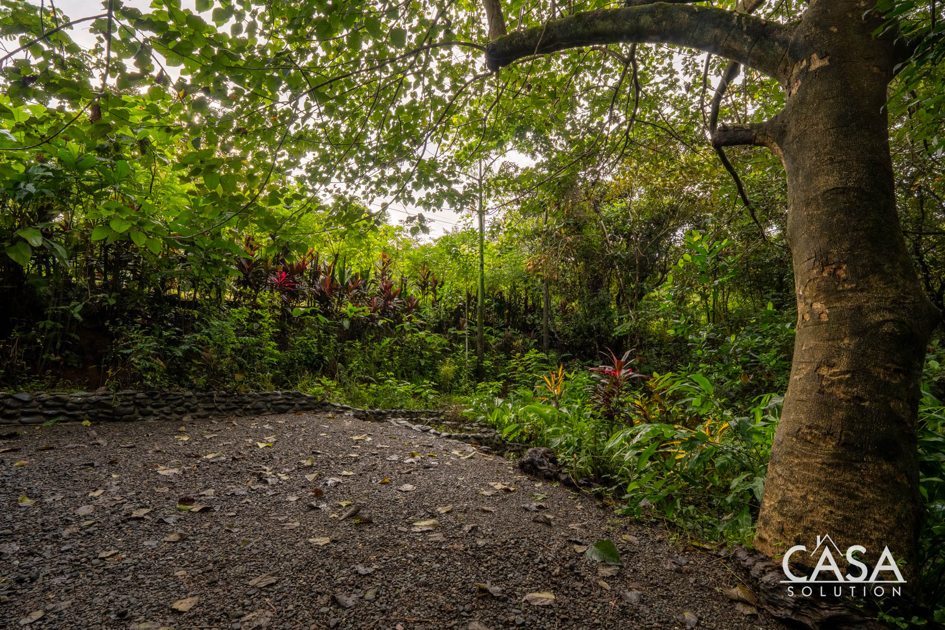 The surrounding garden features banana plants, medicinal herbs, turmeric, and ginger, adding to the property’s tropical charm. The gently sloped terrain merges with the nearby forest, where you can enjoy the sound of a creek and the peaceful rhythm of nature.