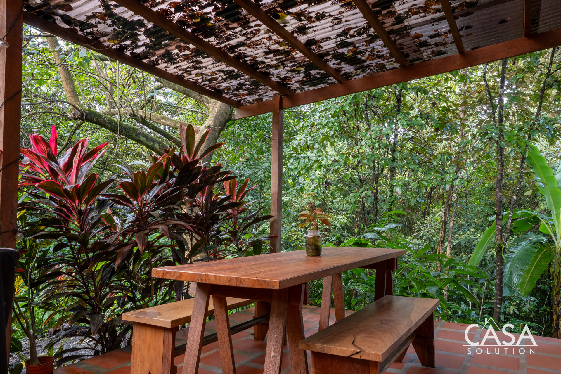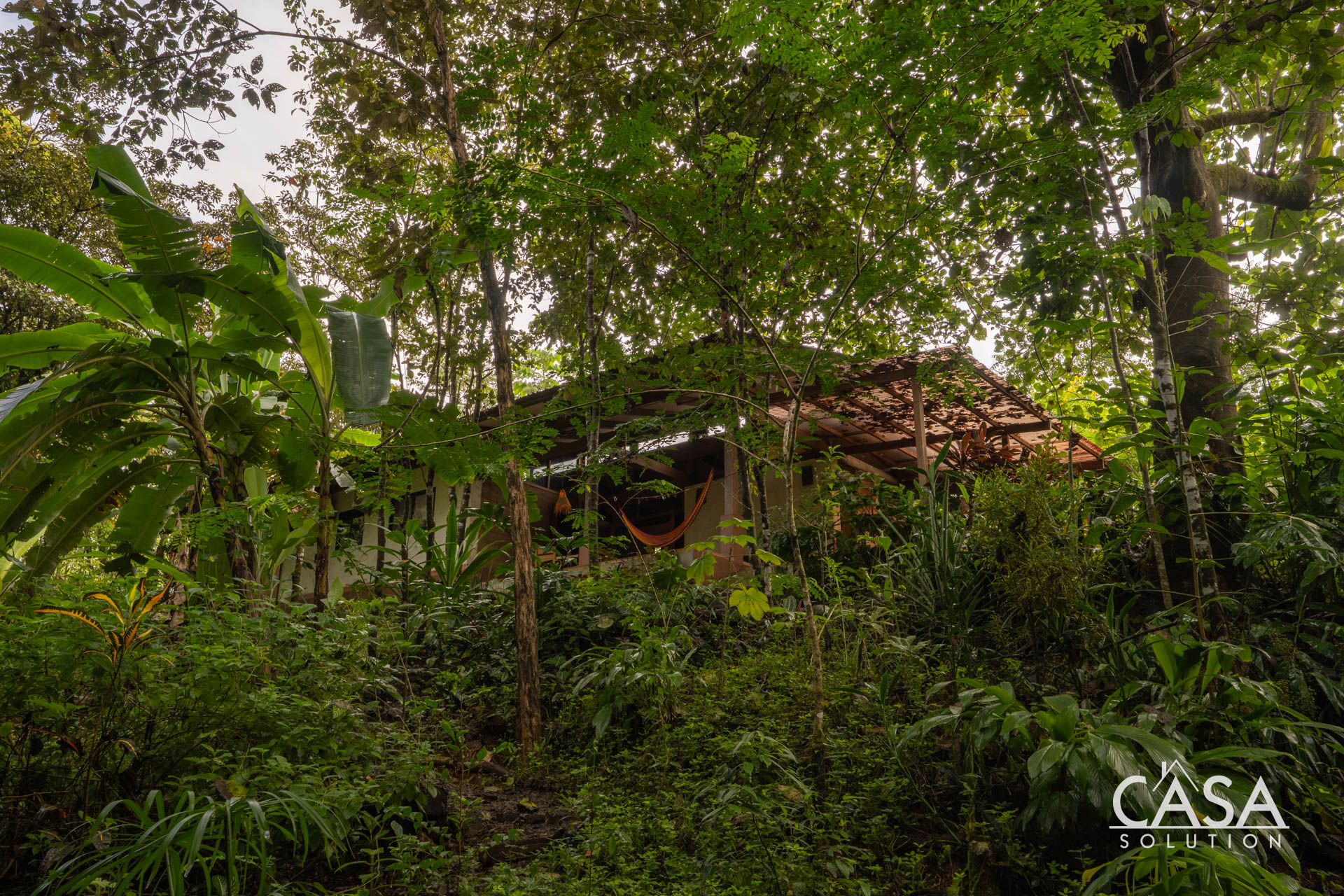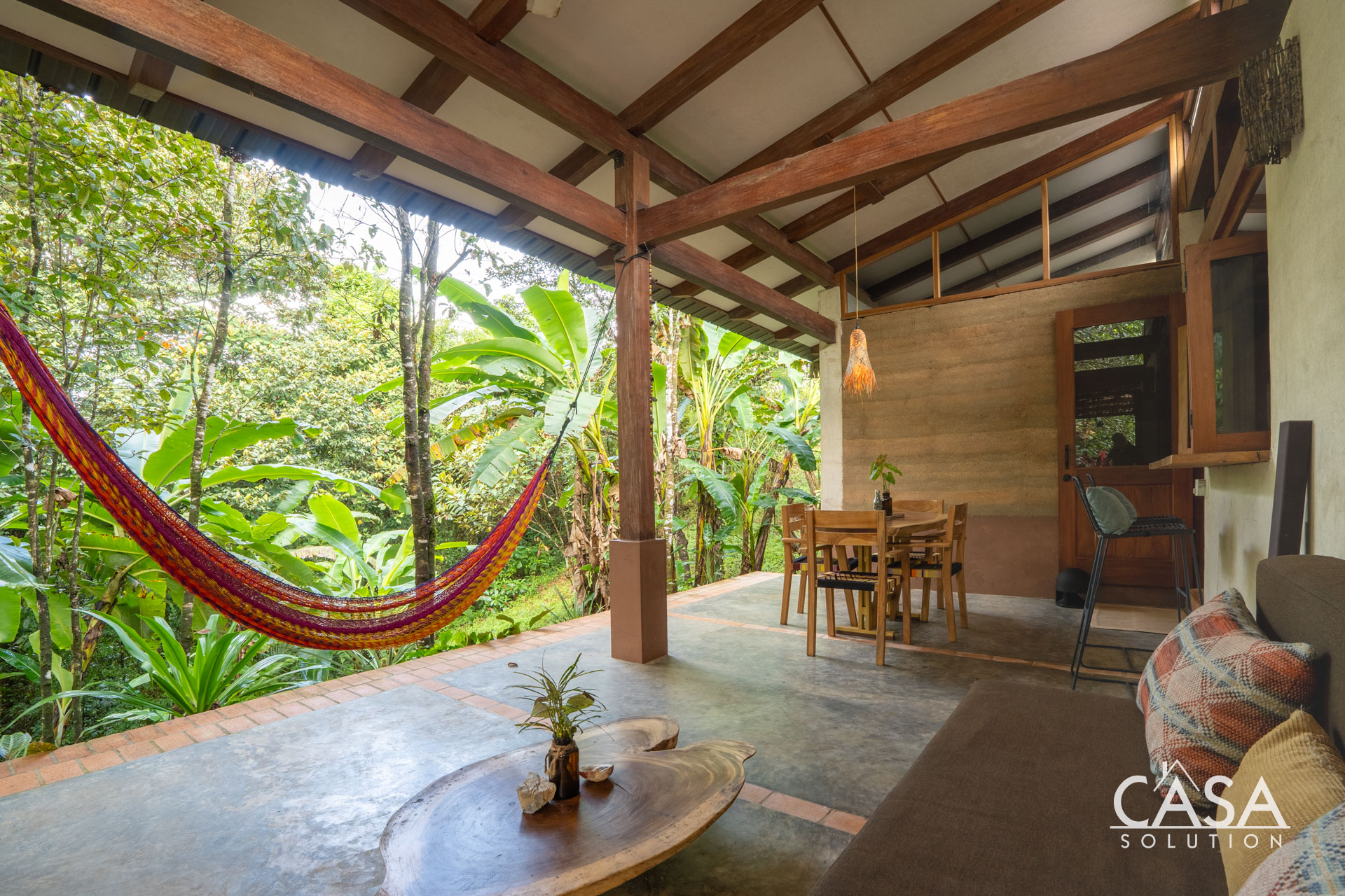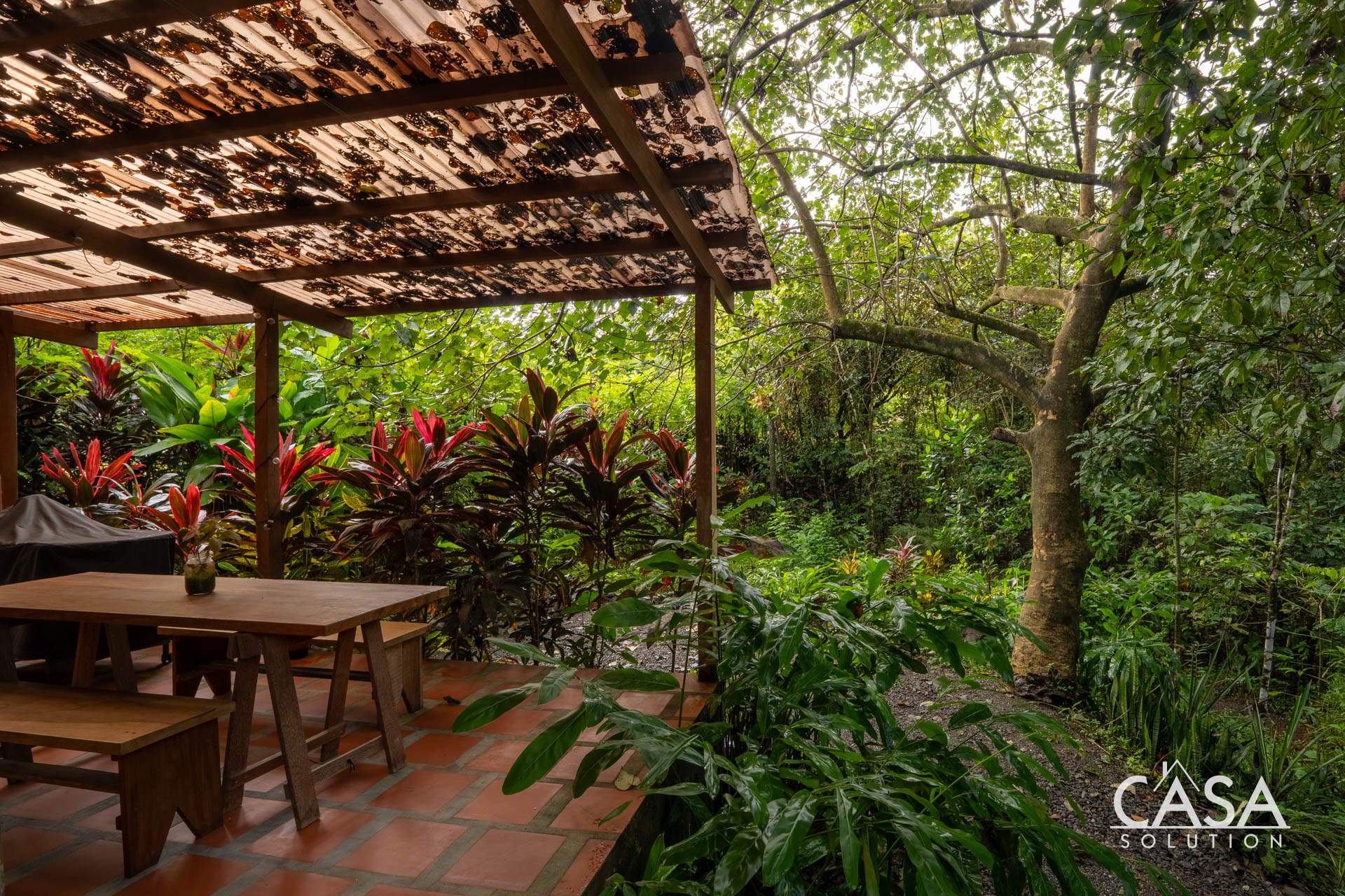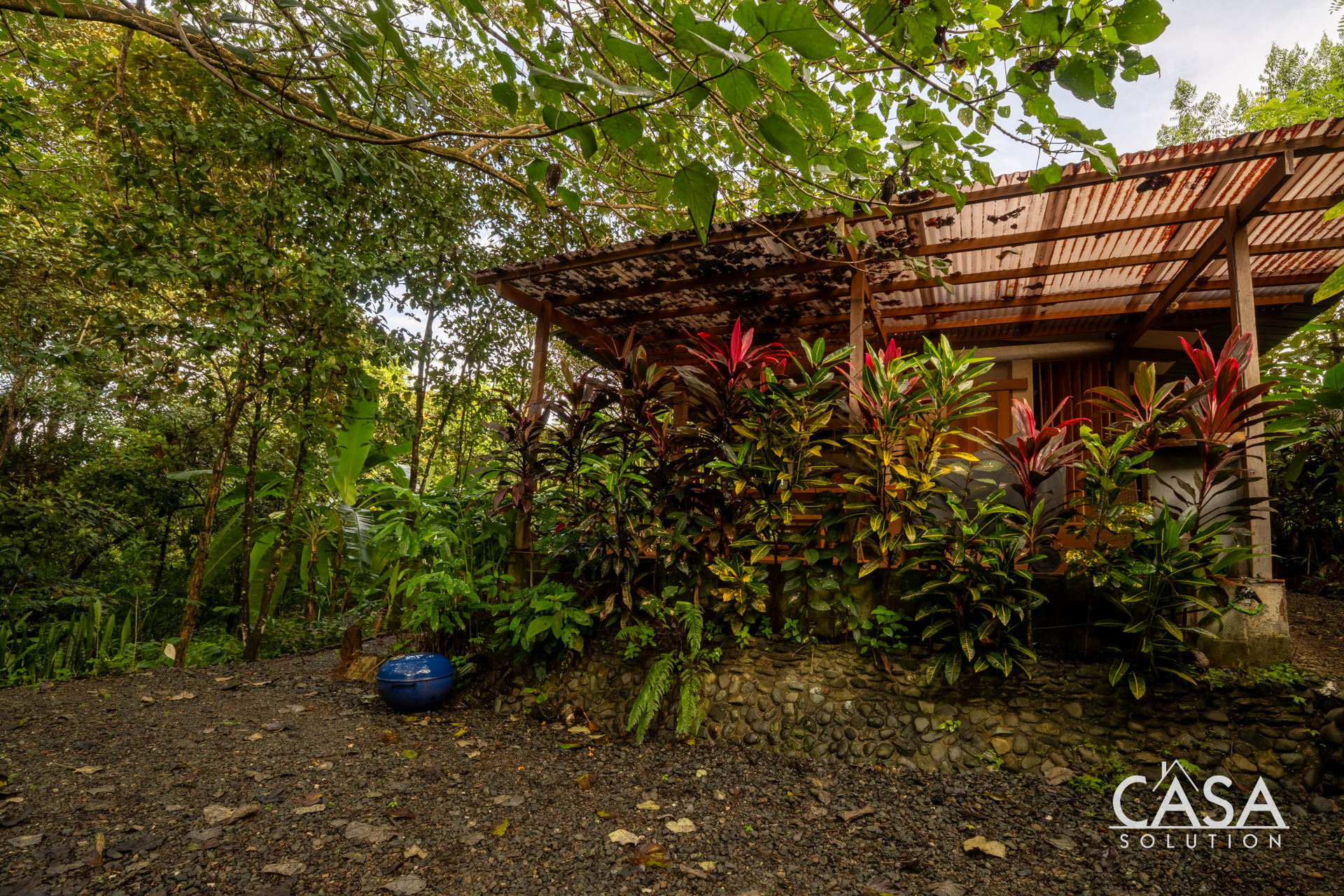 The surrounding garden features banana plants, medicinal herbs, turmeric, and ginger, adding to the property’s tropical charm. The gently sloped terrain merges with the nearby forest, where you can enjoy the sound of a creek and the peaceful rhythm of nature.