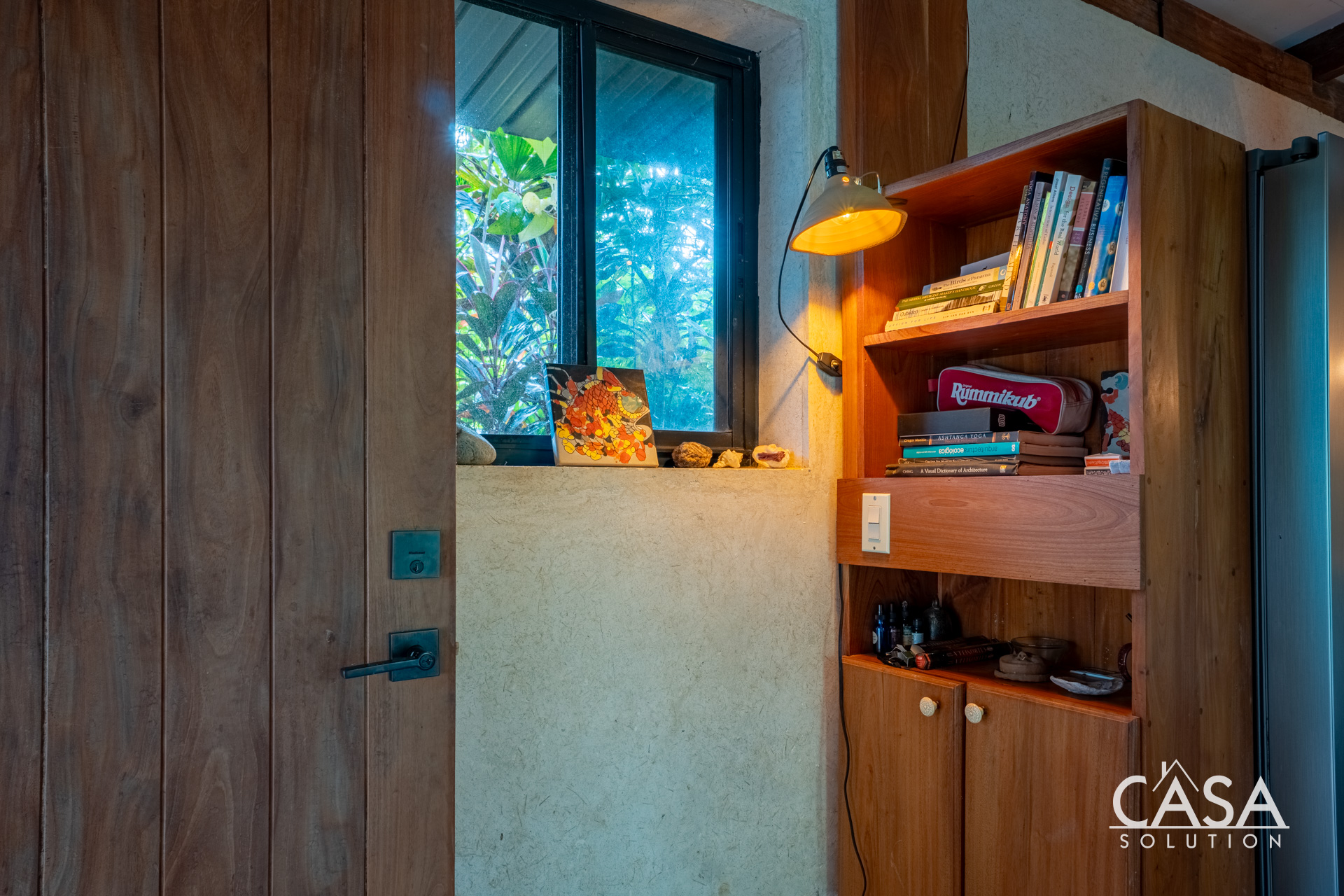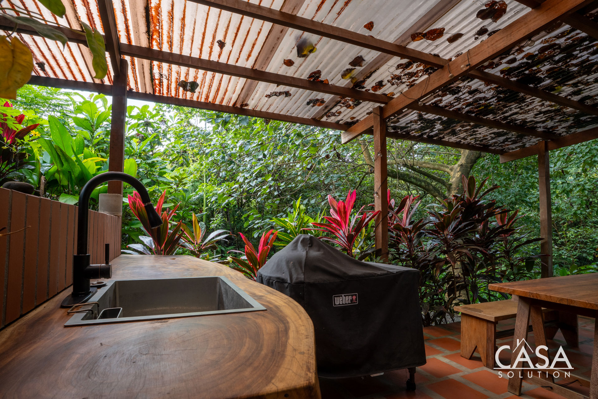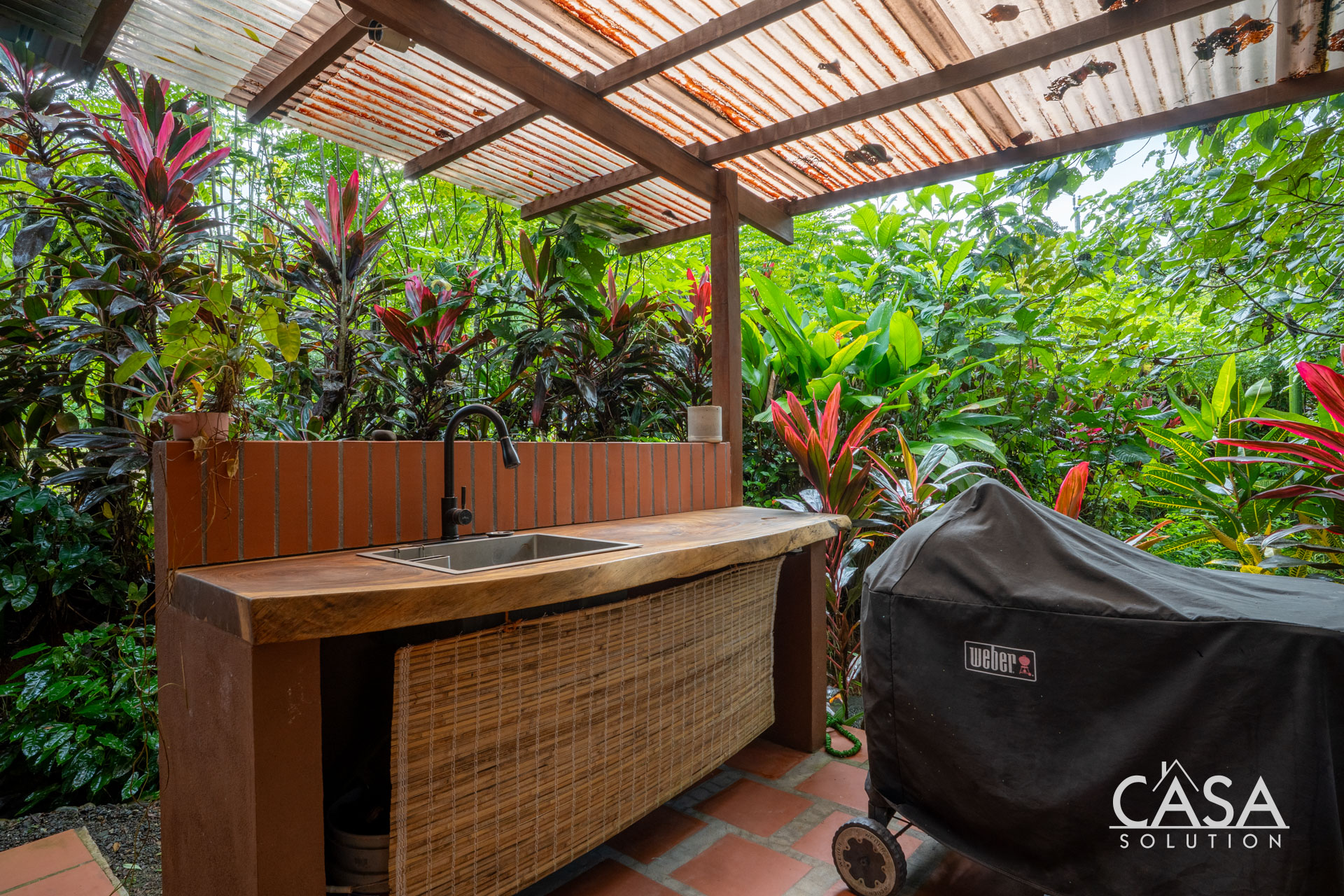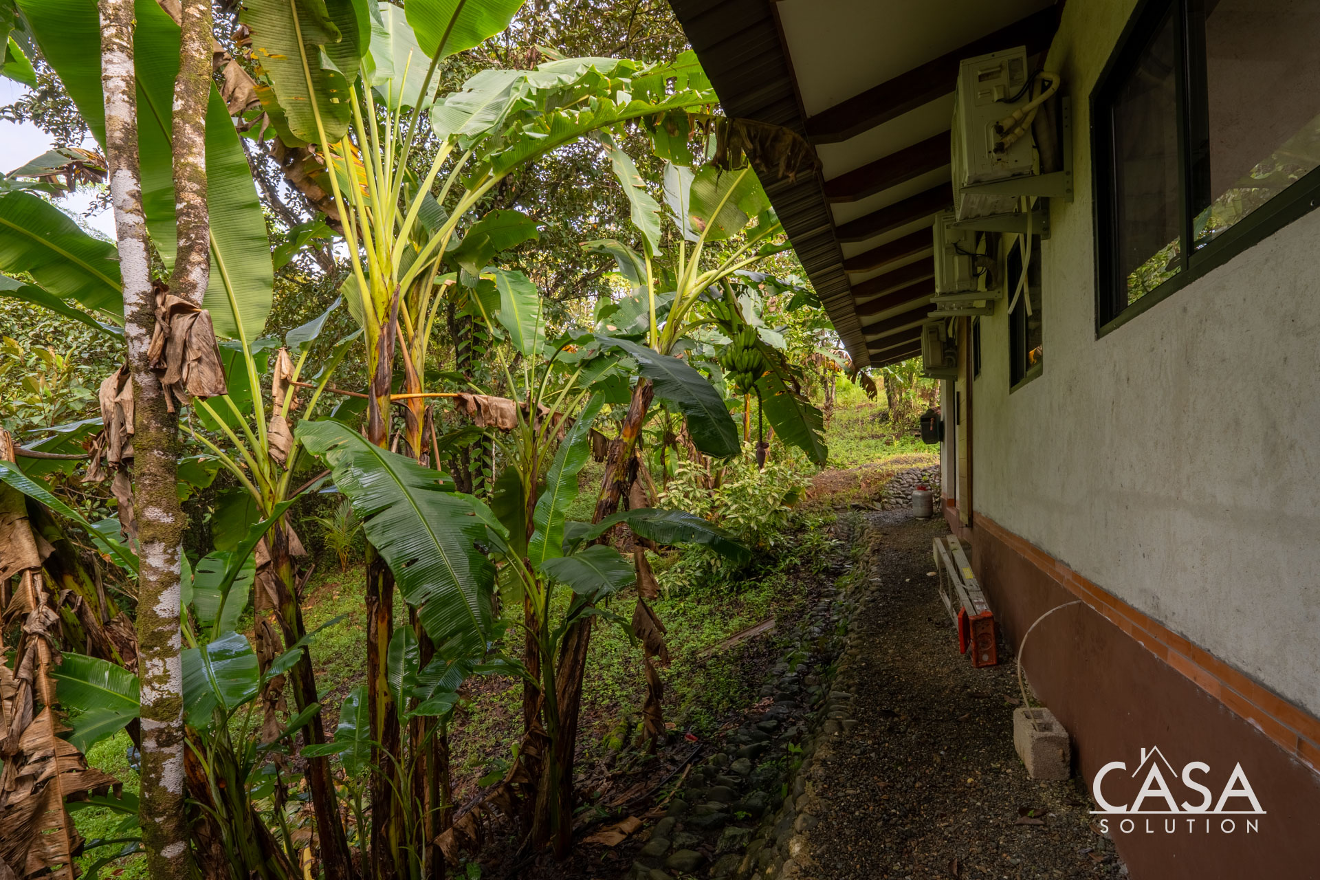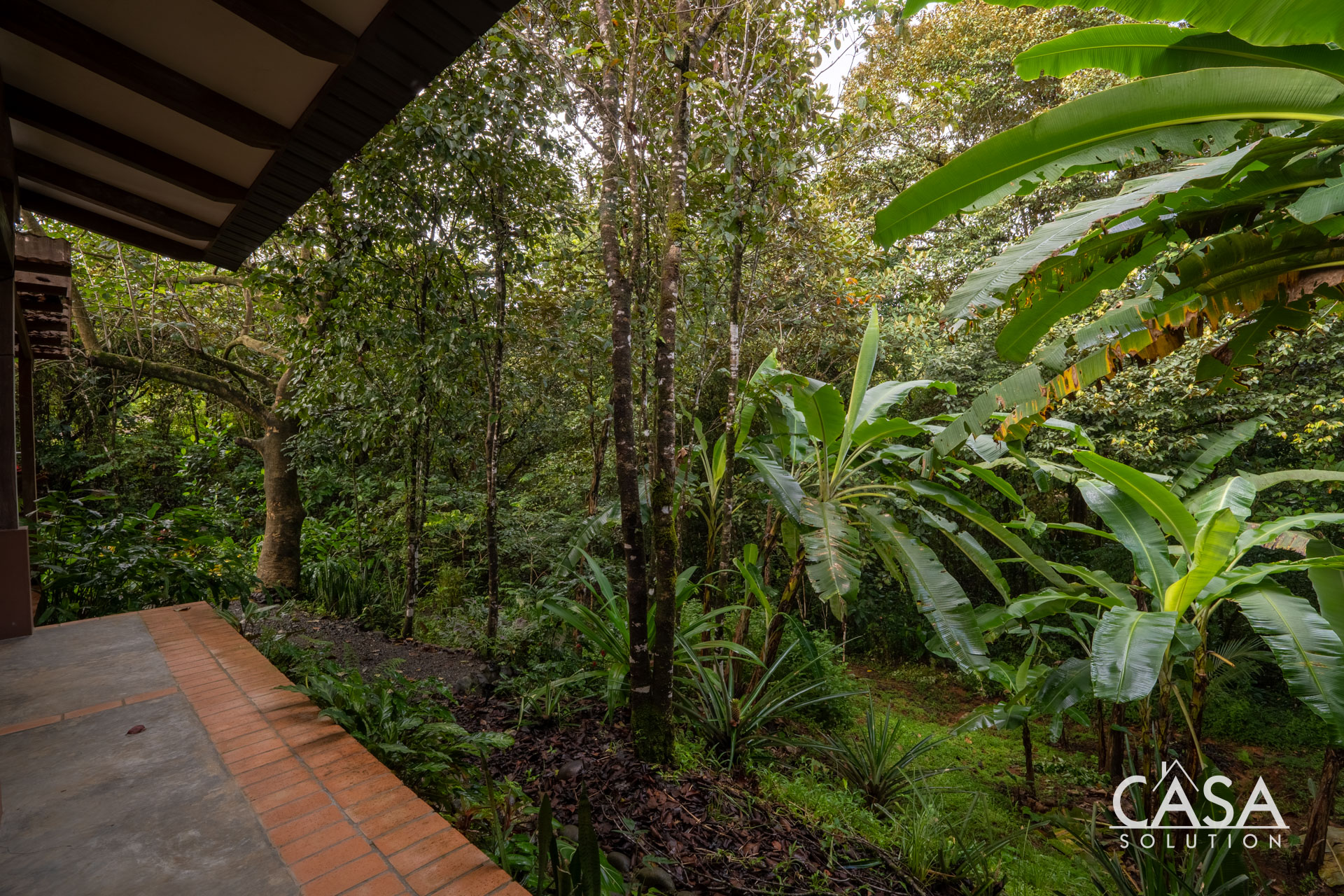 The surrounding garden features banana plants, medicinal herbs, turmeric, and ginger, adding to the property’s tropical charm. The gently sloped terrain merges with the nearby forest, where you can enjoy the sound of a creek and the peaceful rhythm of nature.
