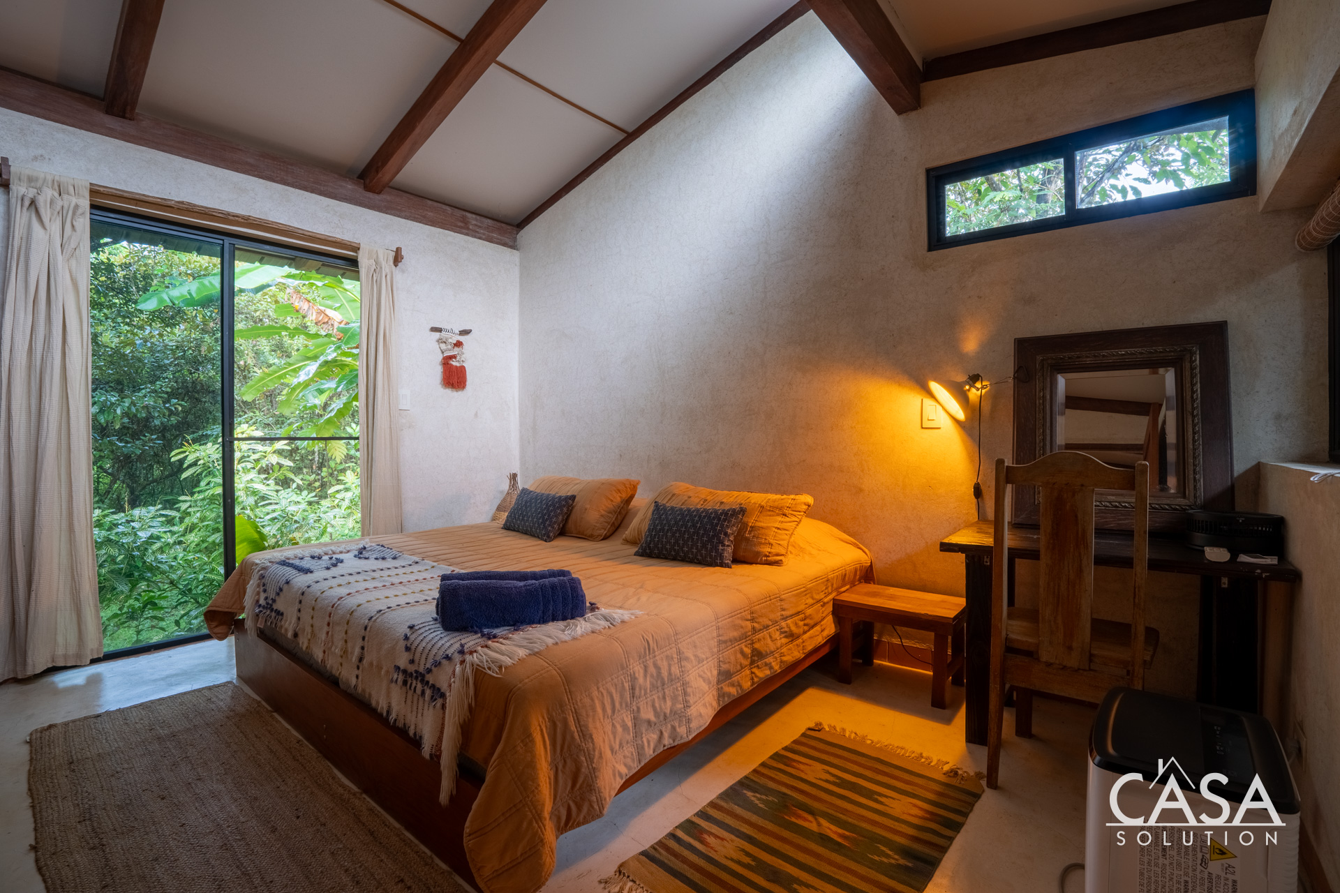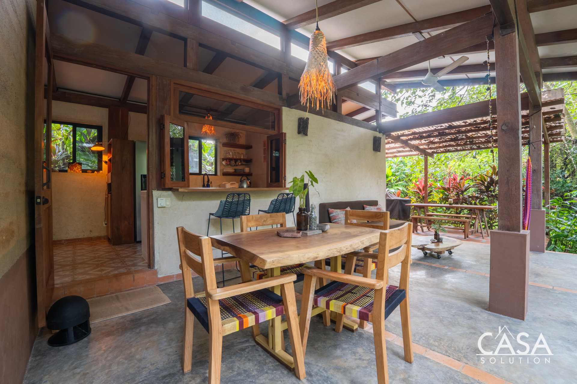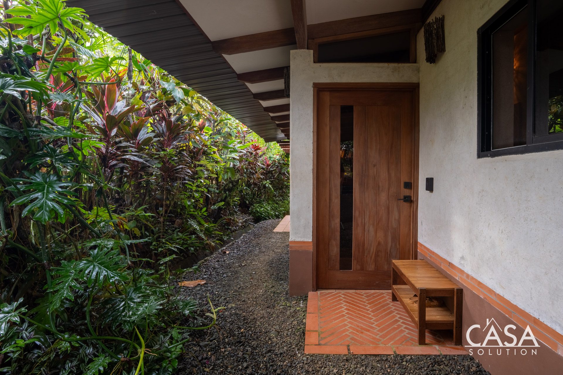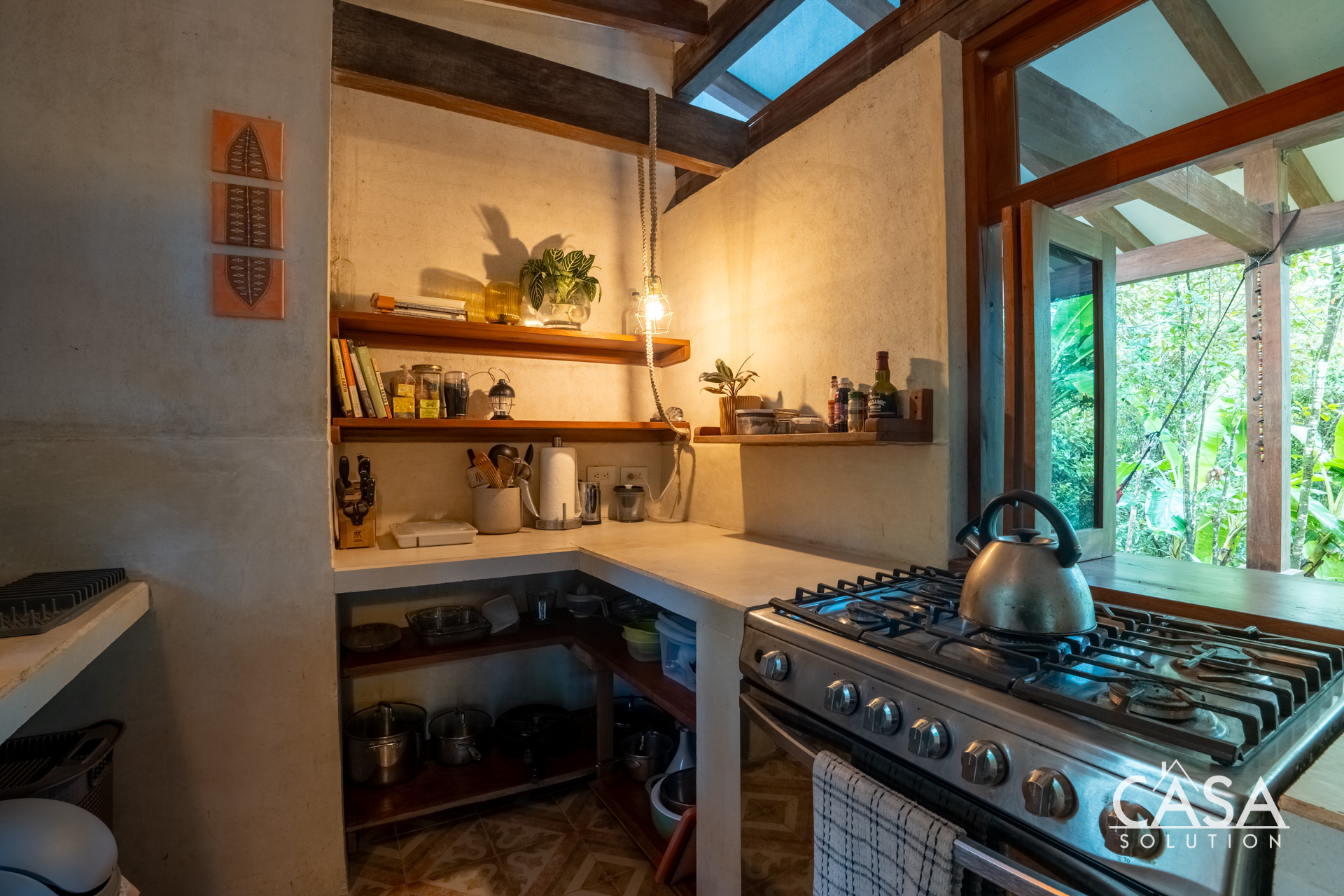 The surrounding garden features banana plants, medicinal herbs, turmeric, and ginger, adding to the property’s tropical charm. The gently sloped terrain merges with the nearby forest, where you can enjoy the sound of a creek and the peaceful rhythm of nature.