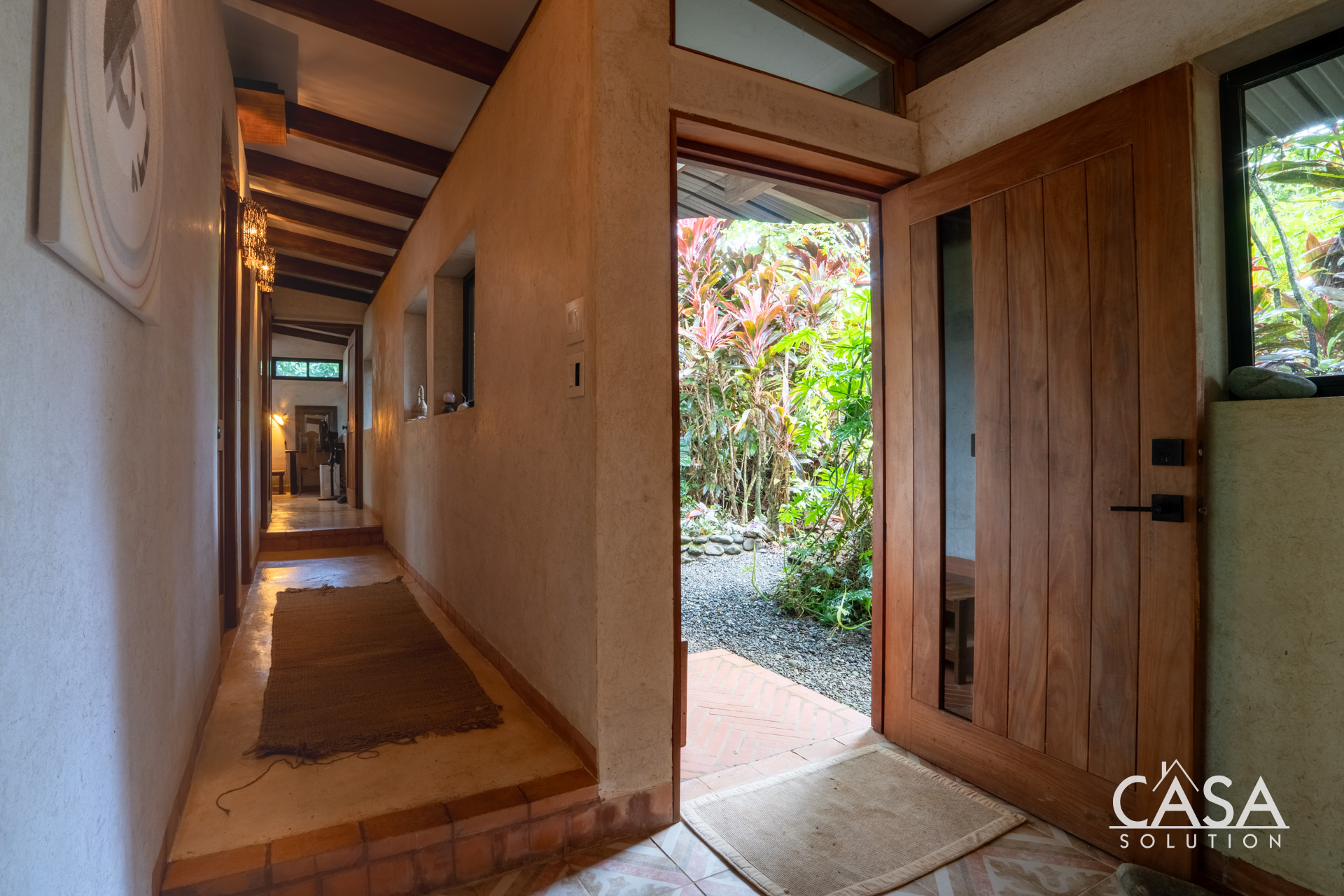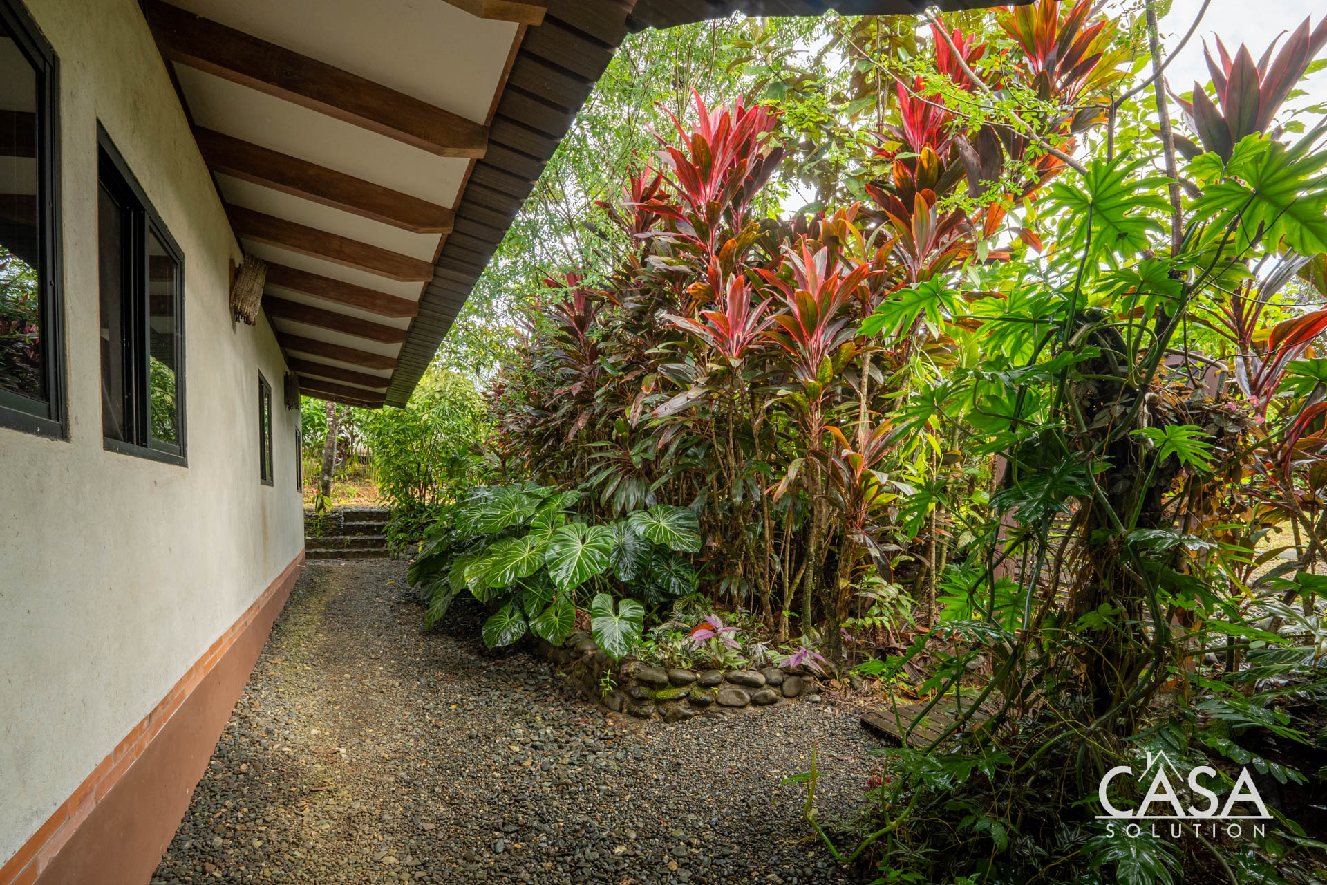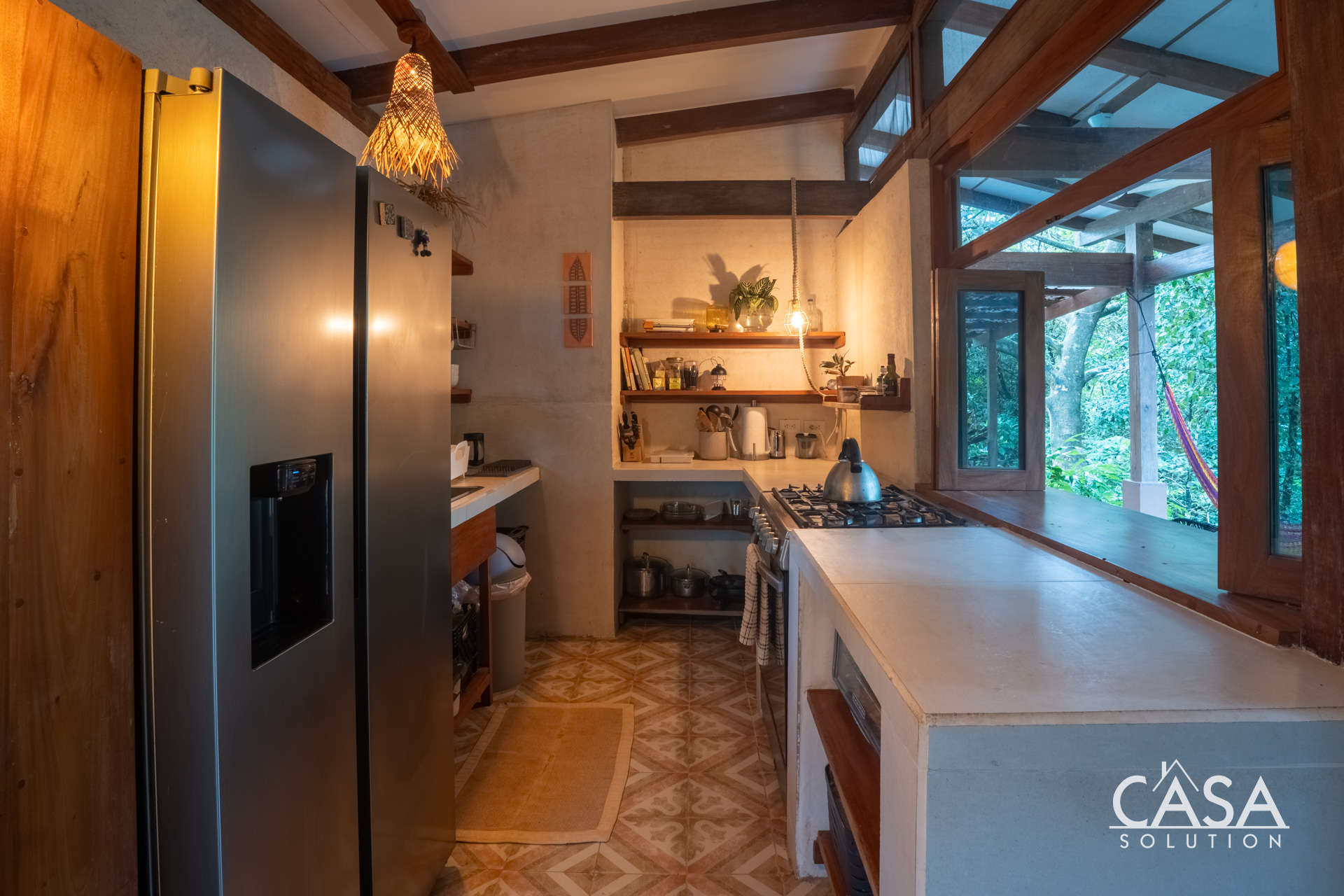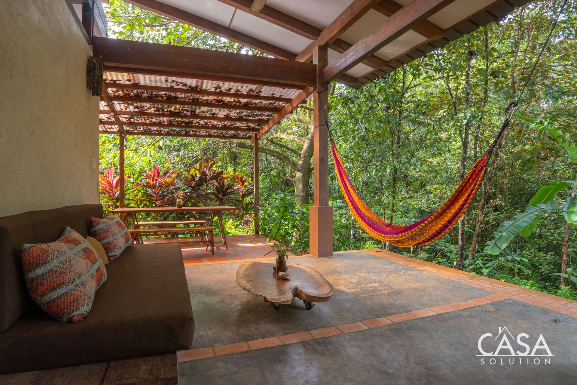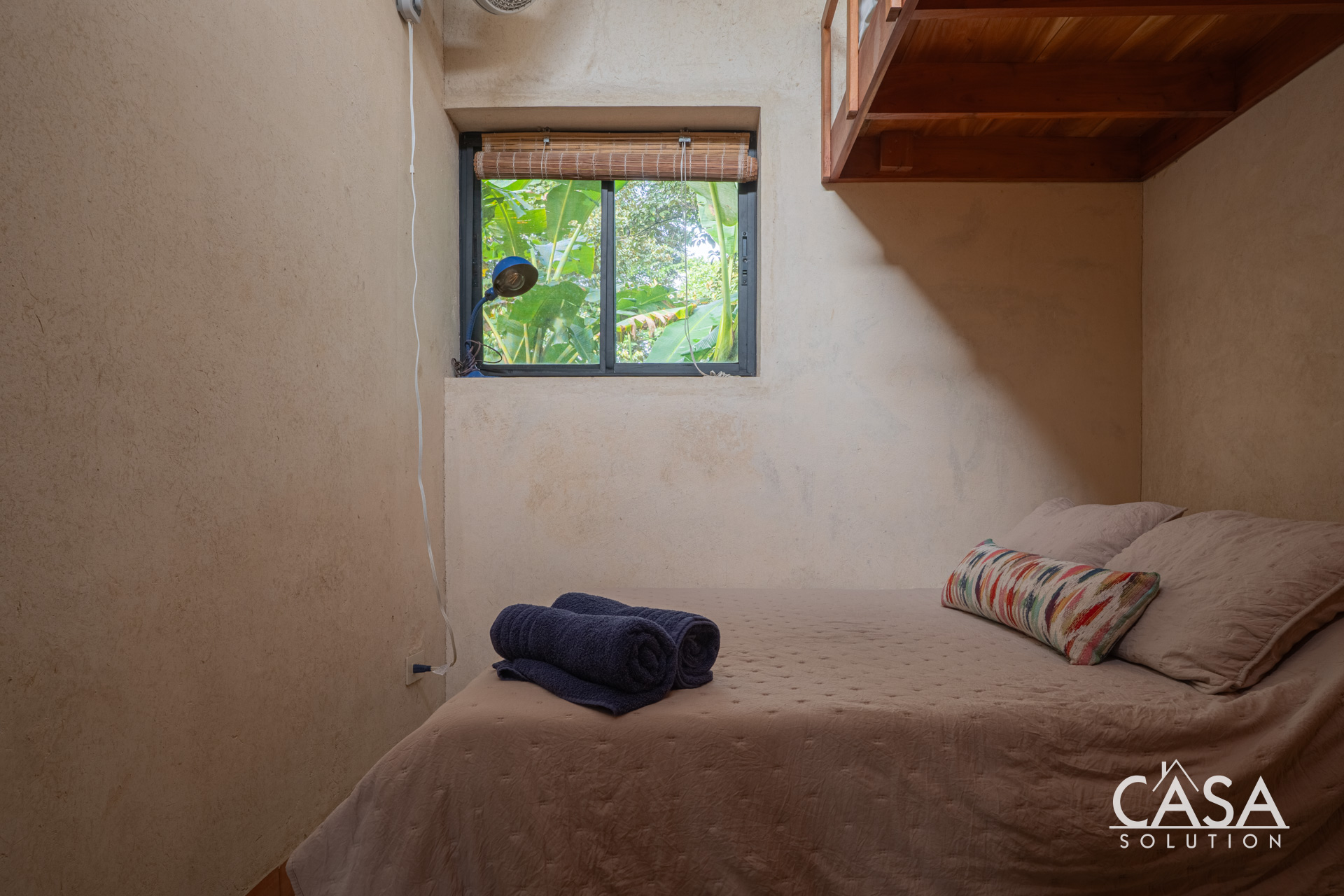 The surrounding garden features banana plants, medicinal herbs, turmeric, and ginger, adding to the property’s tropical charm. The gently sloped terrain merges with the nearby forest, where you can enjoy the sound of a creek and the peaceful rhythm of nature.