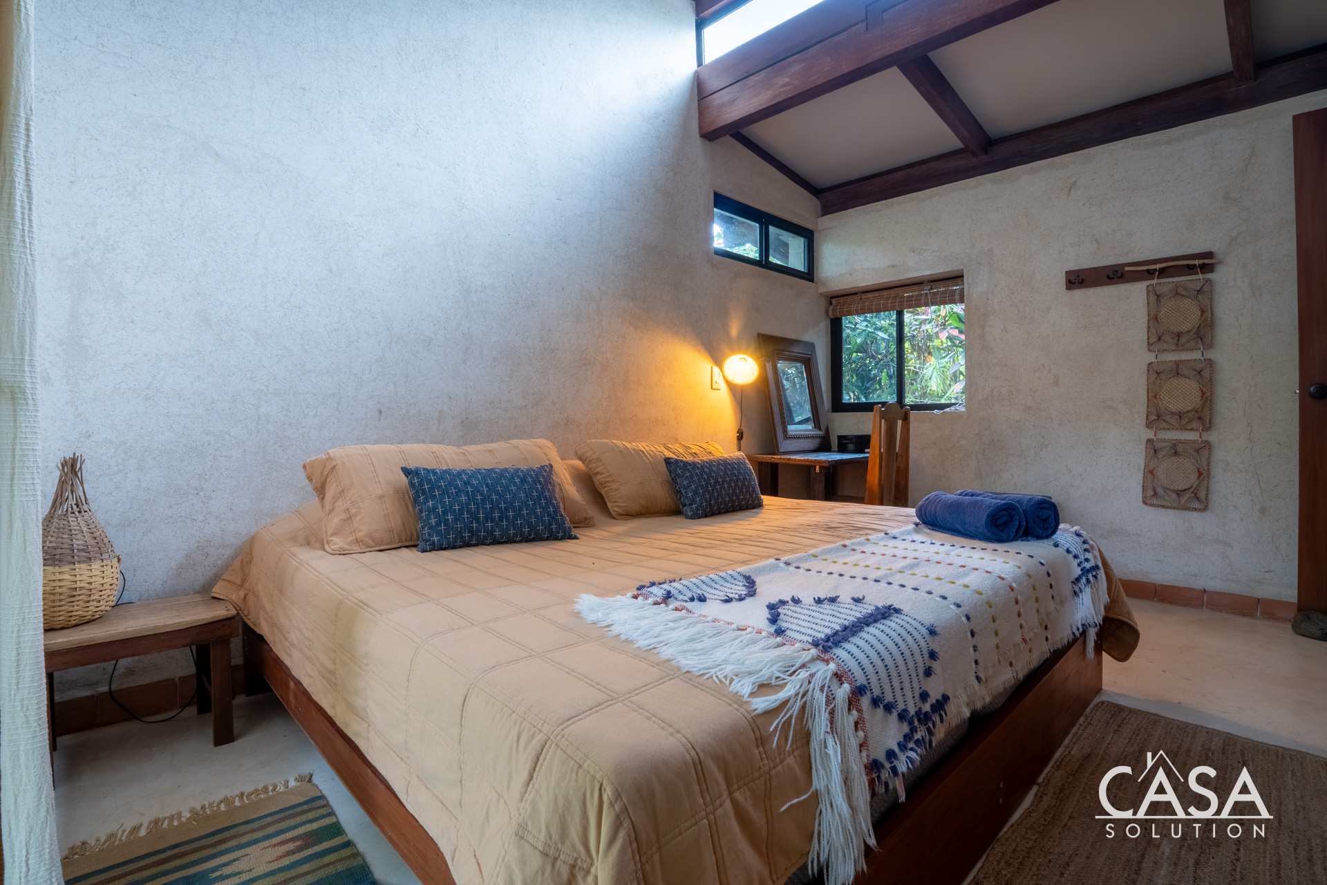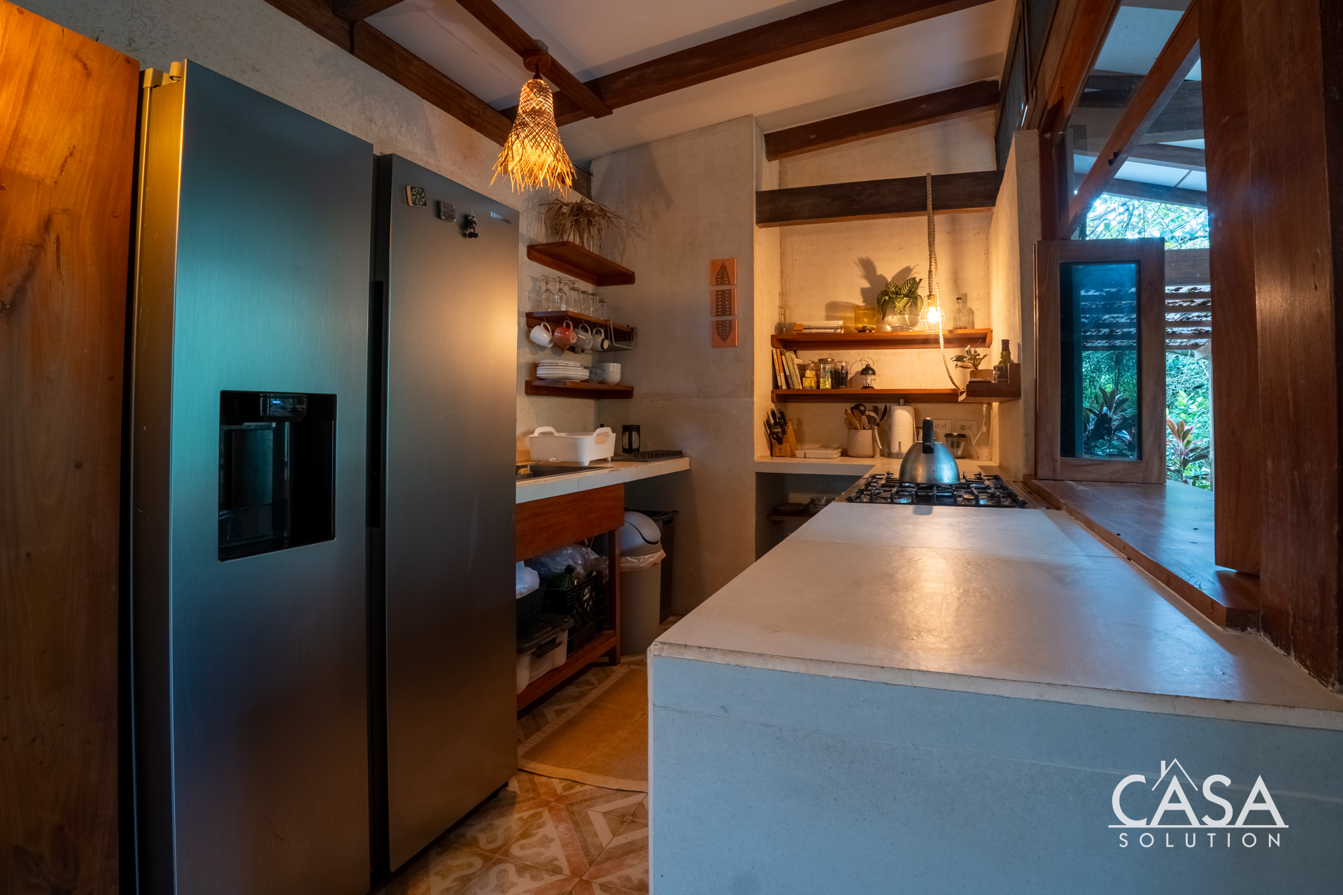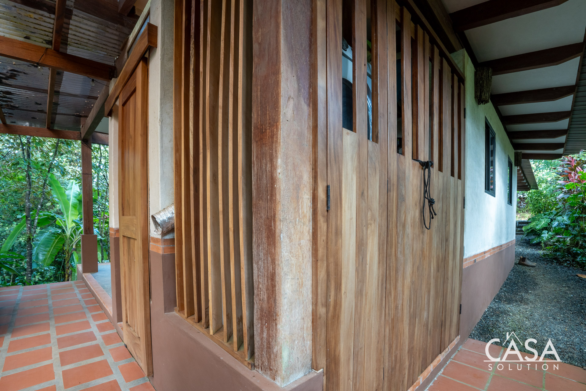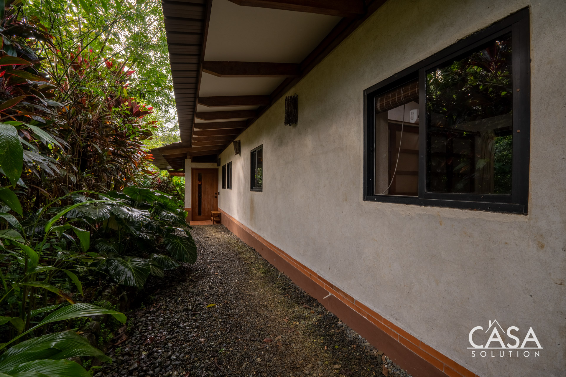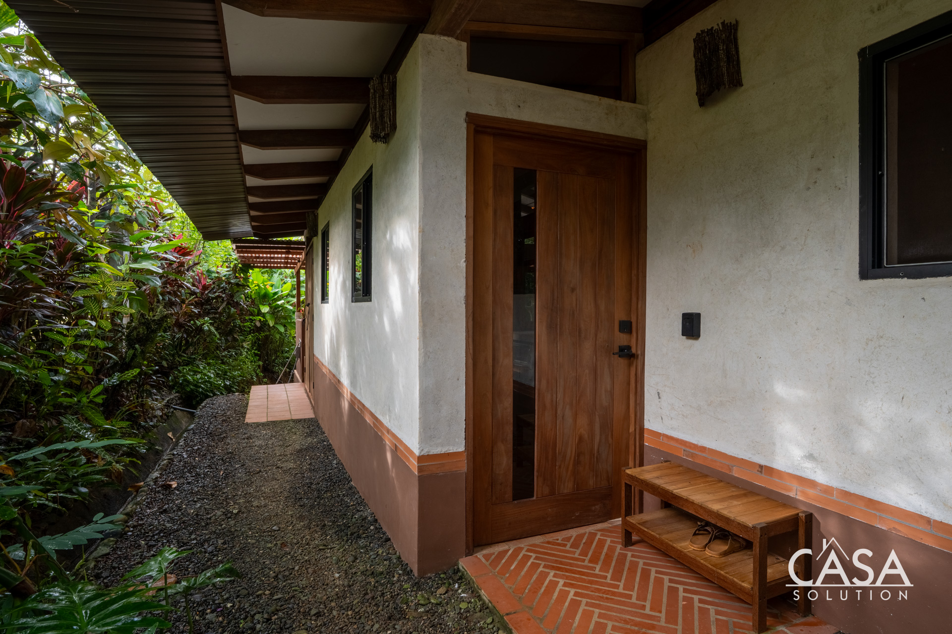 The surrounding garden features banana plants, medicinal herbs, turmeric, and ginger, adding to the property’s tropical charm. The gently sloped terrain merges with the nearby forest, where you can enjoy the sound of a creek and the peaceful rhythm of nature.