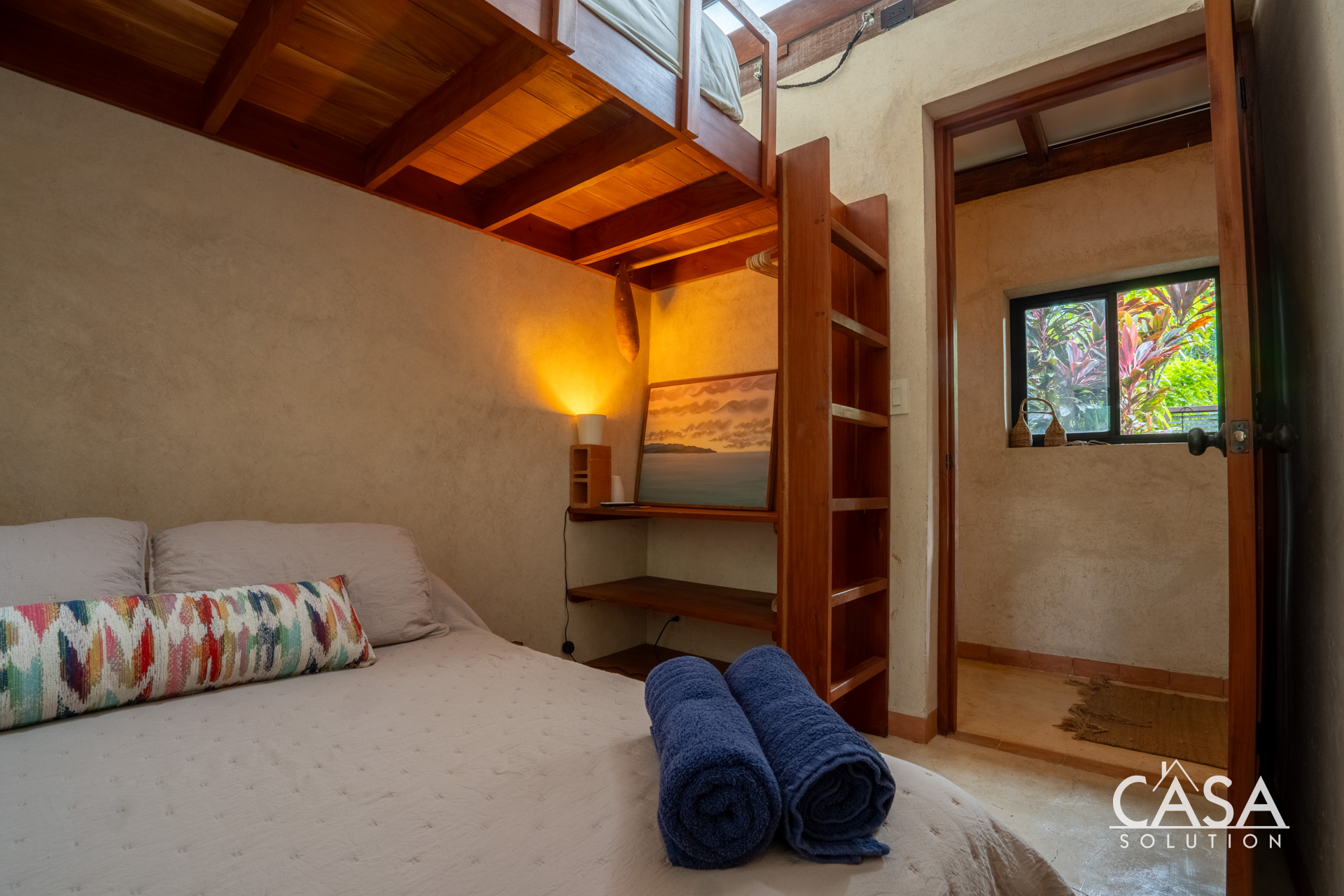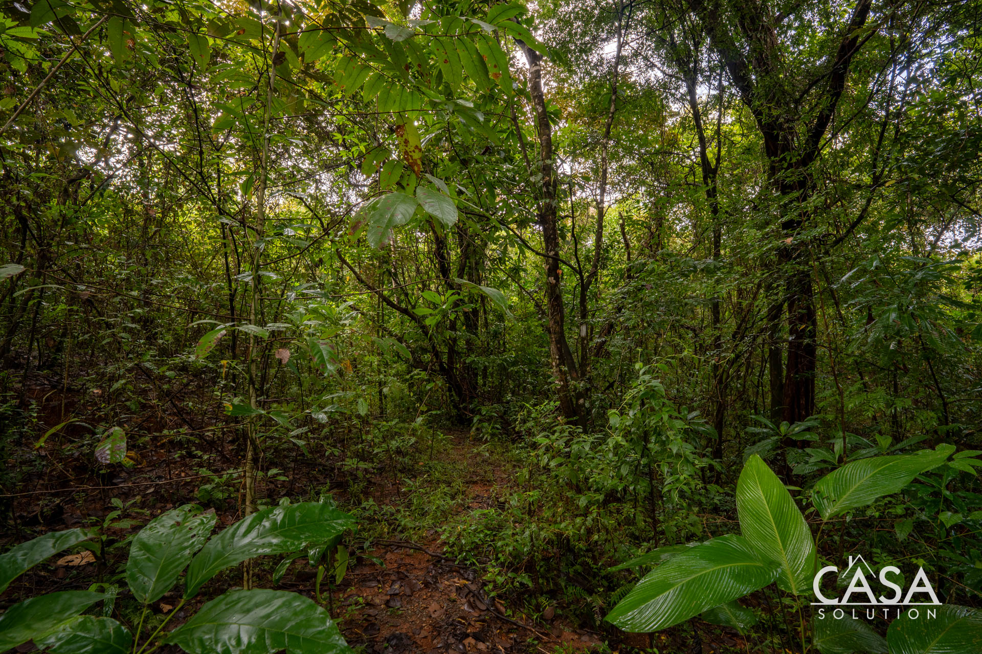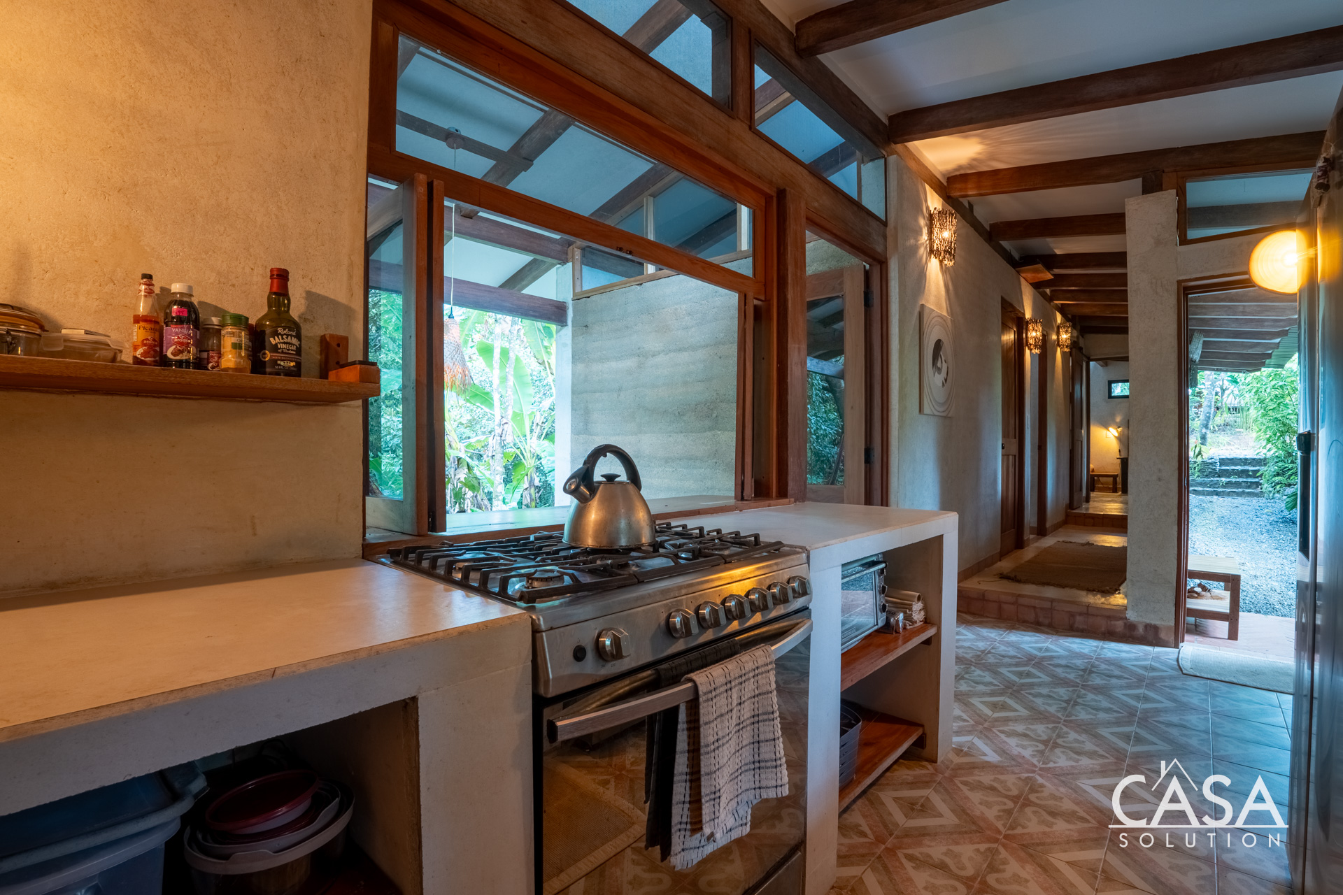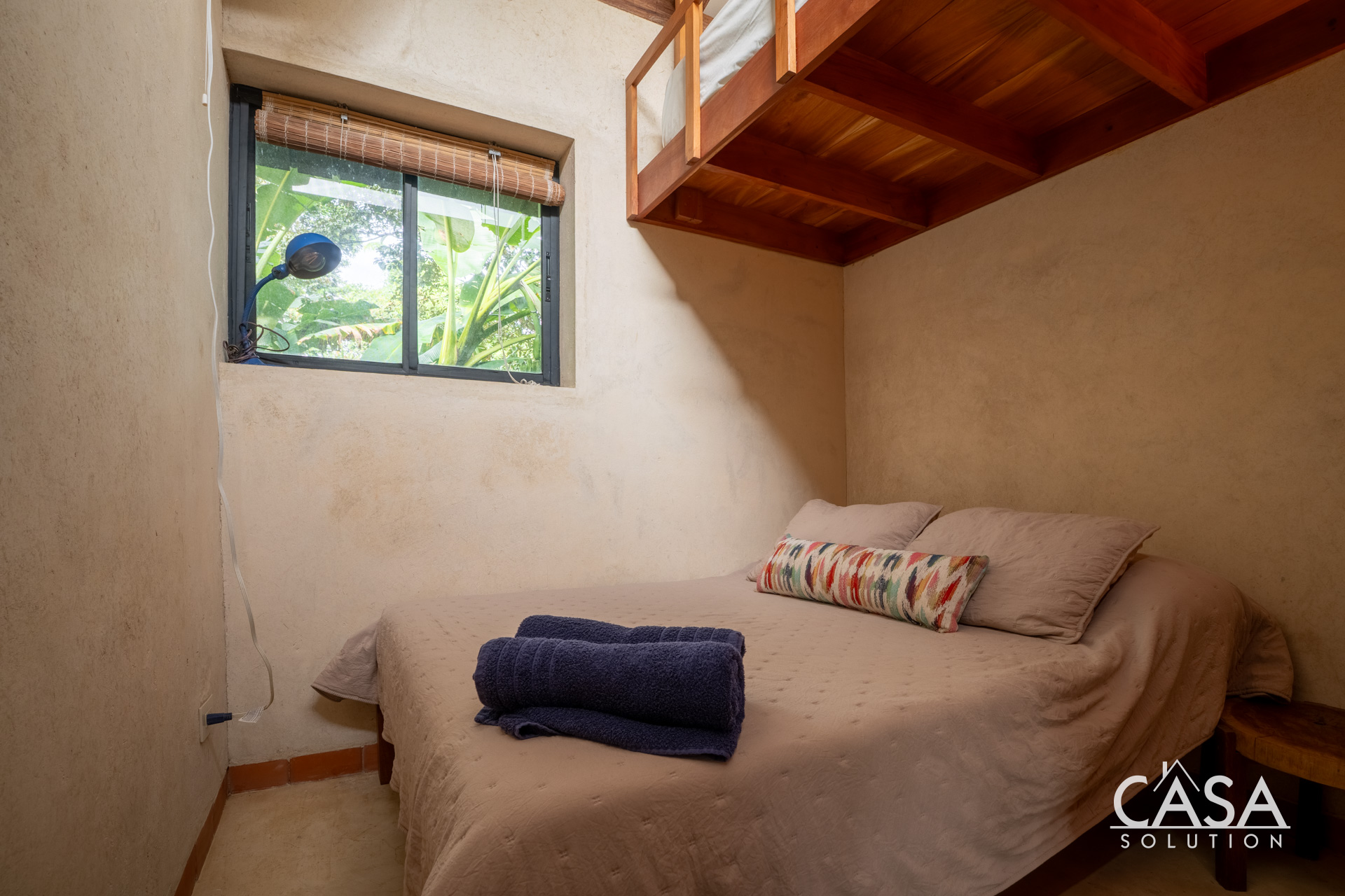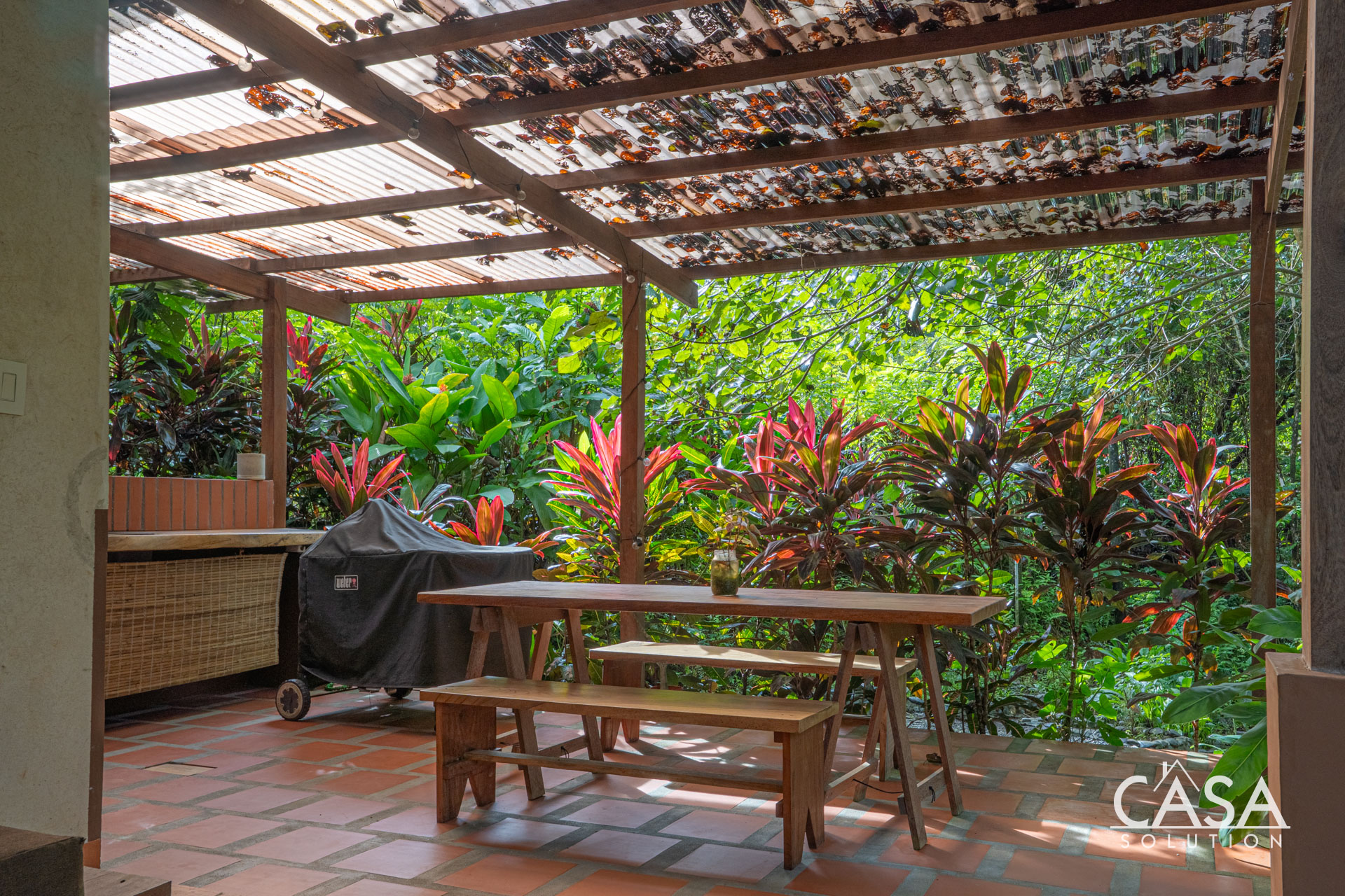 The surrounding garden features banana plants, medicinal herbs, turmeric, and ginger, adding to the property’s tropical charm. The gently sloped terrain merges with the nearby forest, where you can enjoy the sound of a creek and the peaceful rhythm of nature.