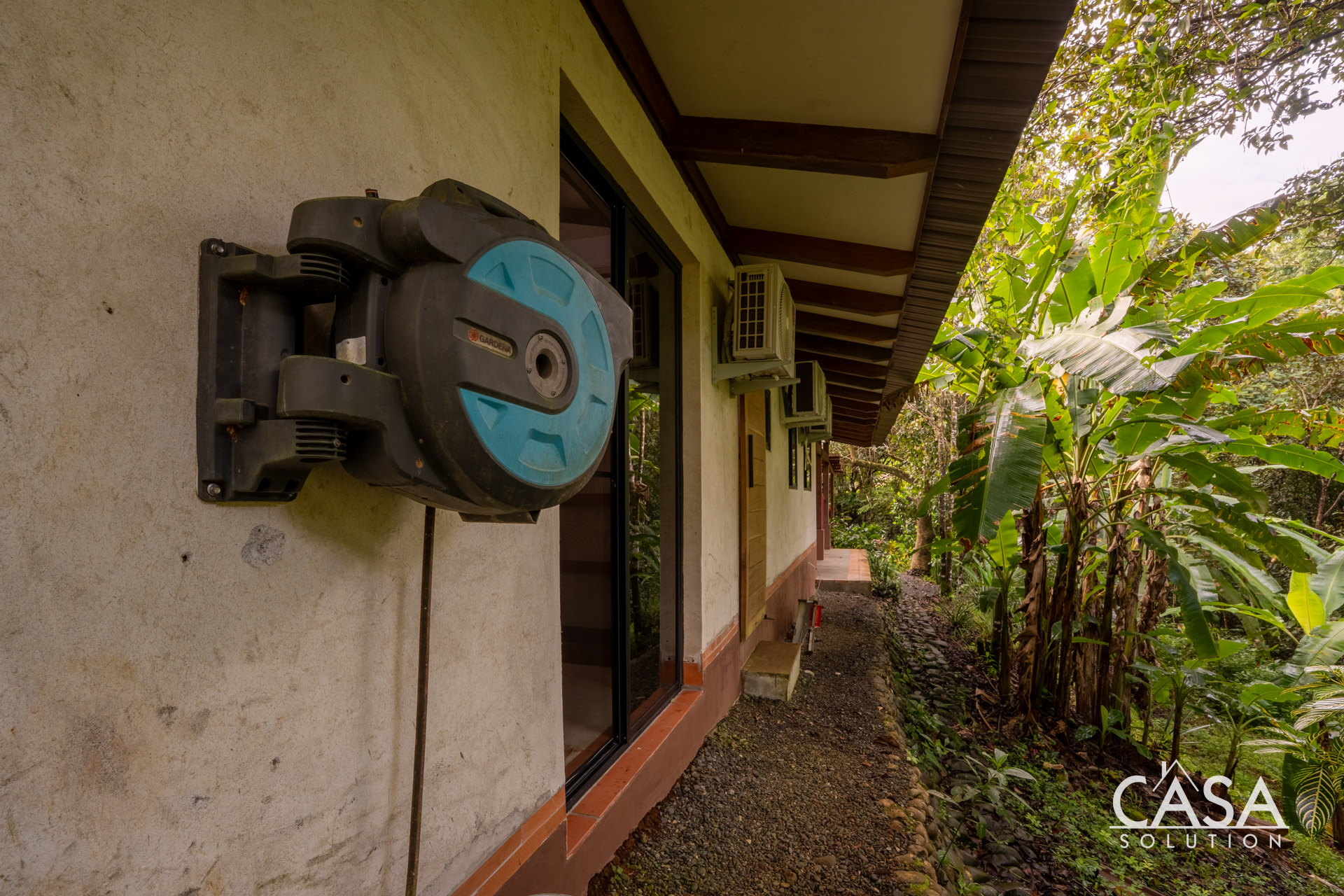 This home was built with a focus on sustainable living. It’s connected to the electrical grid (Naturgy) and municipal water (Torio P&D), and it includes a reserve water tank for backup. The ecological wastewater treatment system uses a biodigester and wetland with aquatic plants, keeping maintenance low and impact minimal.