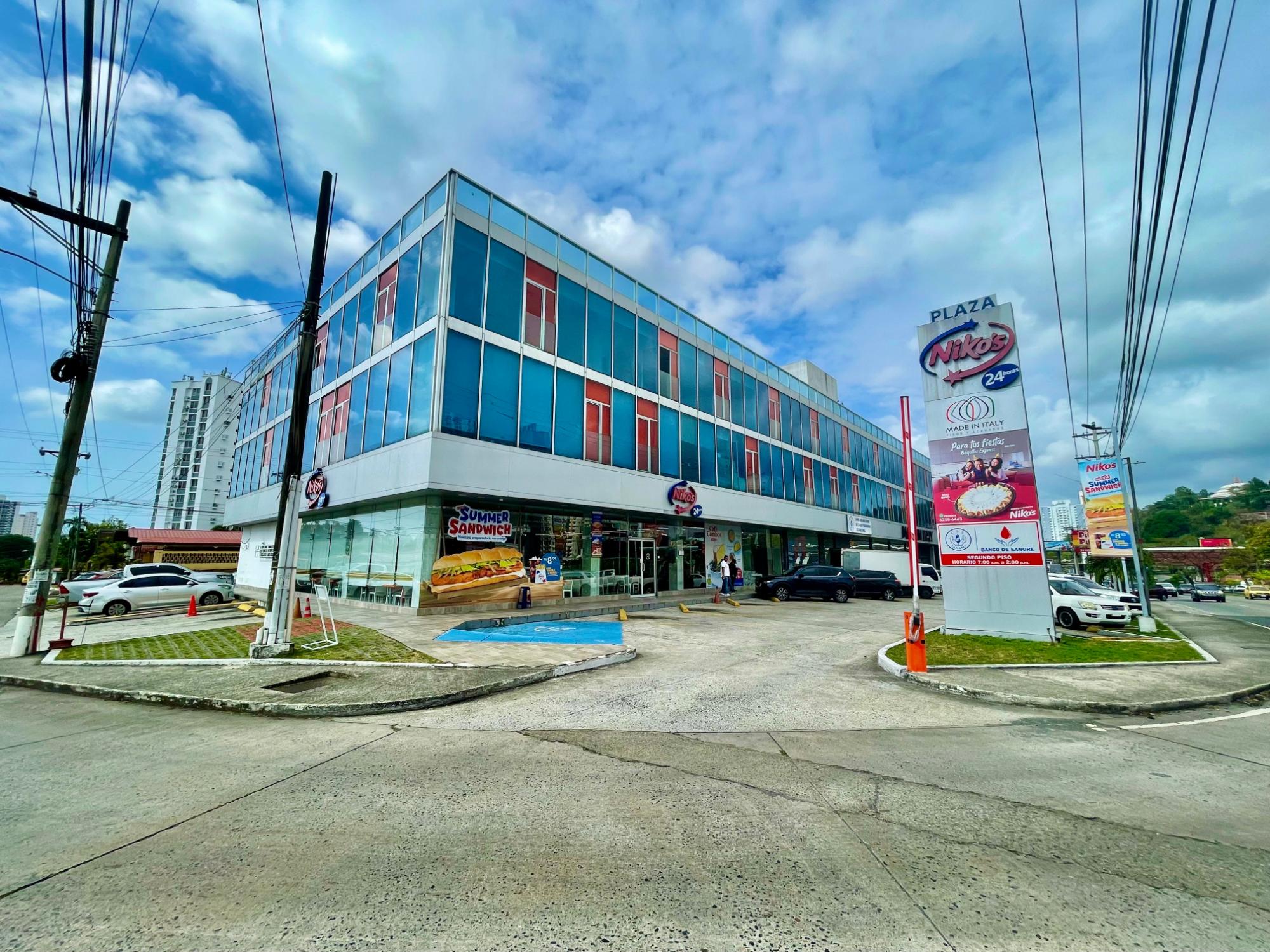 Four-story commercial building: basement, ground floor, first and second floors for commercial use. Built of masonry with modern architecture, it is located on Via Ricardo J. Alfaro and Calle 78-B Norte, in the Villa Cáceres sector, Betania district. The basement consists of a lobby, a parking area with capacity for 19 parking spaces and 24 linear spaces, a storage area, an equipment room, and a water reserve tank with a capacity of 75,000 gallons. The ground floor has seven premises, currently grouped into three, and an entrance lobby. Levels 100 and 200 consist of a lobby, a circulation corridor, and 28 office spaces, each with its own multi-use restroom and equipment room. The rooftop has an enclosed lobby area and a large open area where the A/C equipment is located. However, according to reports, it has been designed to house another level of offices.