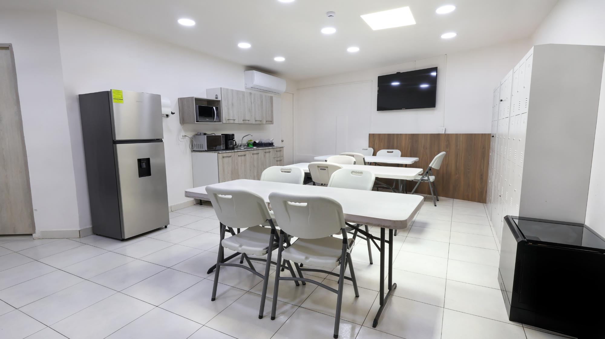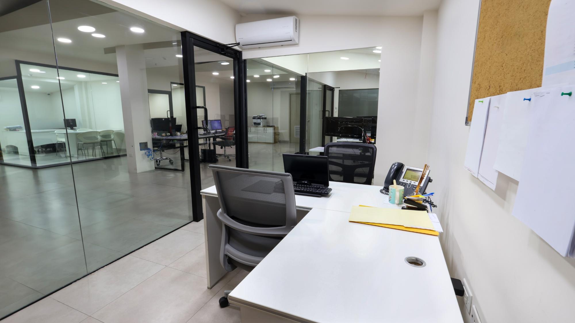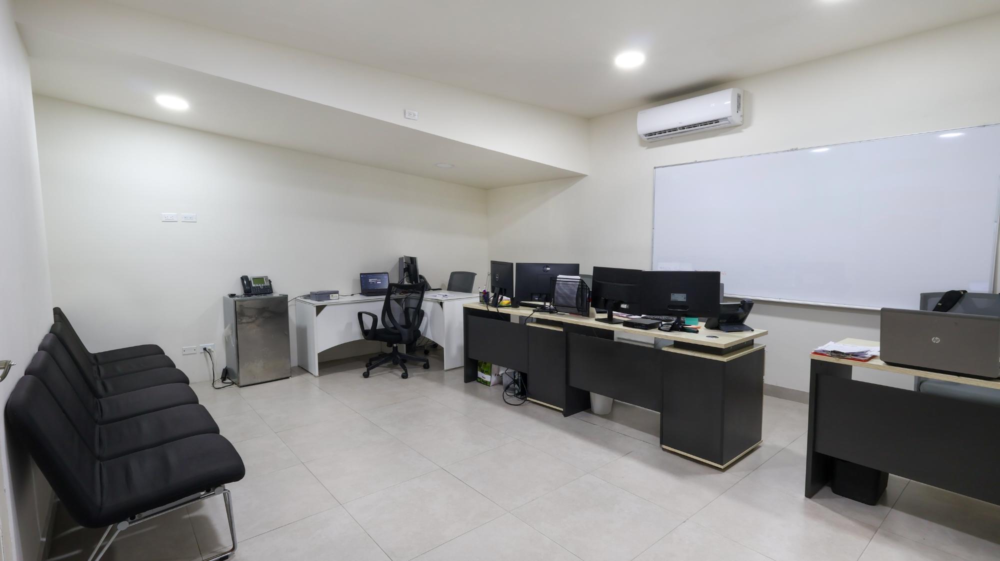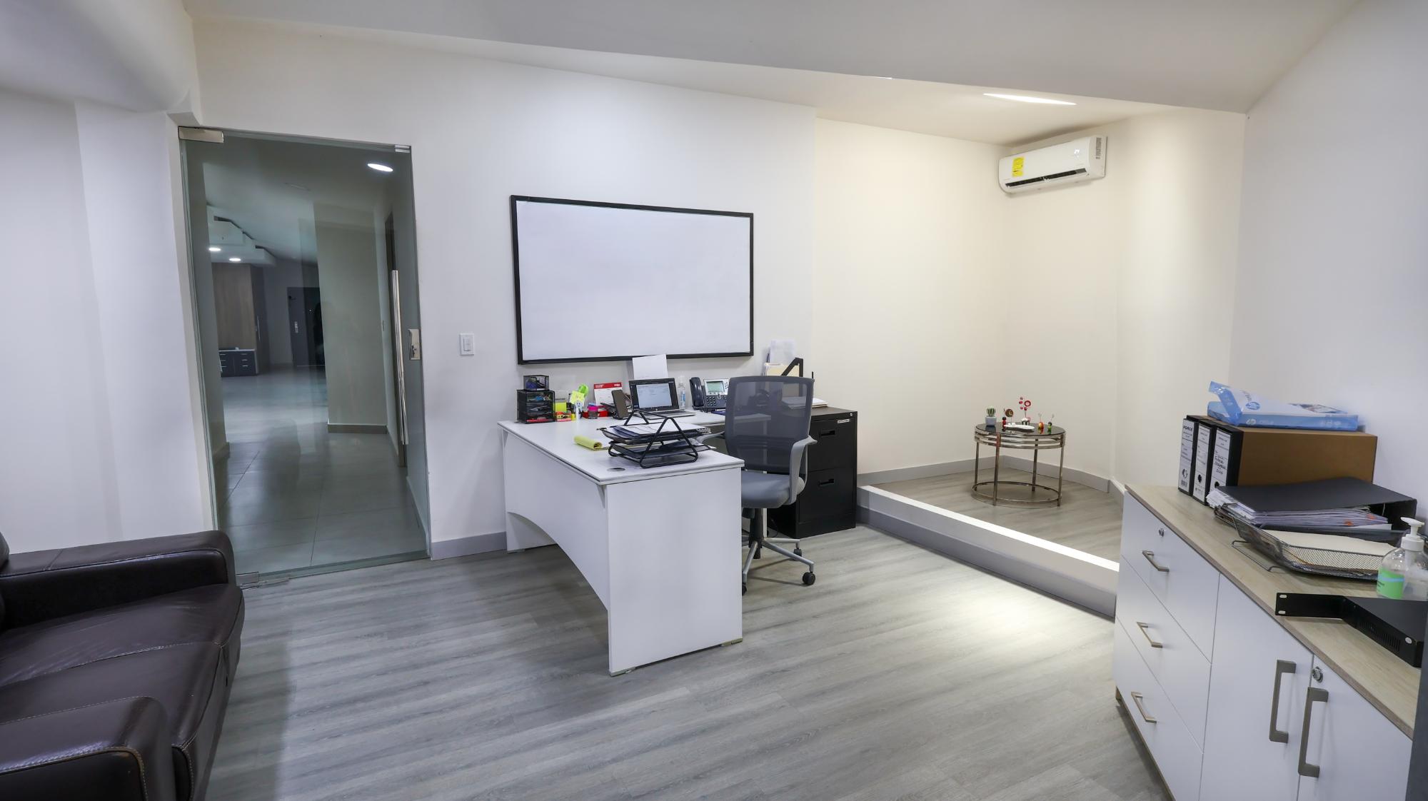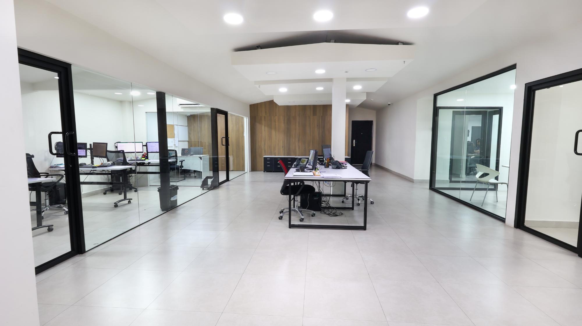 There are 2 plots of land of 420m2 and 579.35m2 that add up to 999.35m2. The plots are entirely built in a fully remodeled commercial space. It has several closed offices, a cubicle area, a meeting room, a cafeteria, a reception, 3 bathrooms and parking spaces.