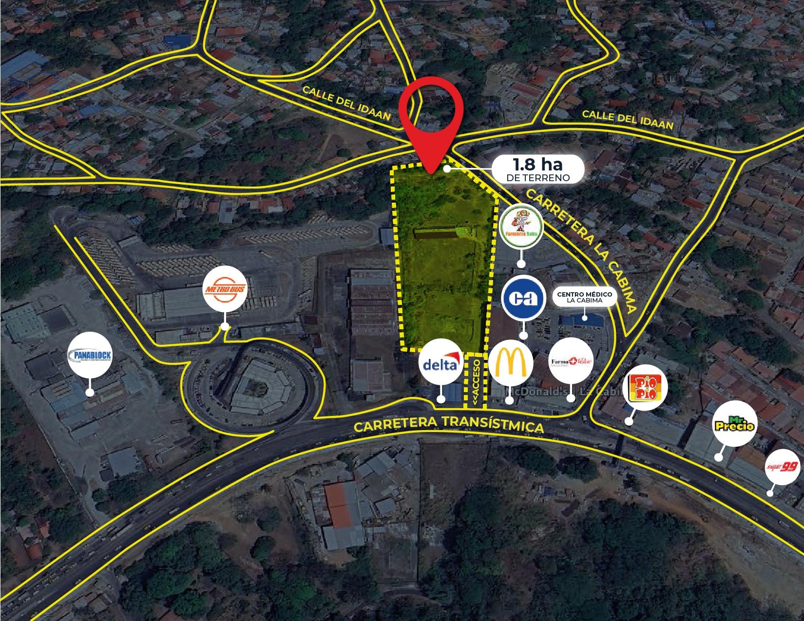 Land for sale in La Cabima with a strategic location and high commercial potential. Right next to McDonald's and behind a Delta gas station, this 1.8-hectare lot has direct access from the Transístmica Highway and La Cabima's main road, in an area with a population density of over 250,000. It is an ideal opportunity for investors and brands seeking a presence in a high-traffic, growing area. Surrounded by established businesses, this lot is perfect for developing a shopping mall, supermarket, medical center, warehouse, franchise, or a mixed-use project. Its connectivity, visibility, and surroundings make it a safe and profitable investment. If you're looking for a lot that combines location, constant foot traffic, and potential returns, this is it.
