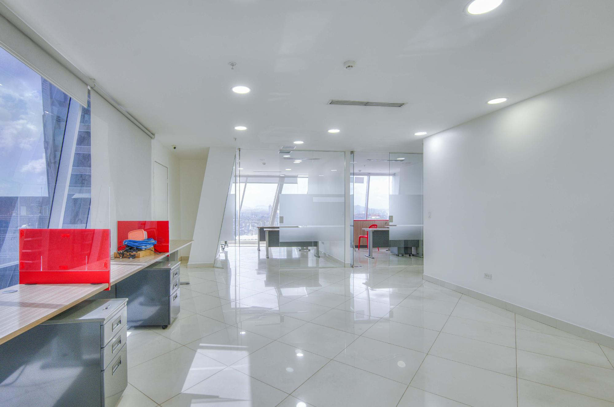 Commercial office space of 255 m² located in Obarrio, available for sale. It has 2 bathrooms and 4 parking spaces. The property offers an ideal office space, with access for people with reduced mobility and 4 elevators. It includes air conditioning, an odor extractor, and curtains/blinds. It has potable water and a water reserve tank. The office is delivered finished and ready for occupancy. The building has a guardhouse and visitor parking, ensuring security and convenience. Access is via a concrete street and there is a covered garage. Obarrio is a dynamic commercial area, with easy access to public transportation and main avenues. Nearby are supermarkets, banks, pharmacies, and a wide variety of restaurants and shops. The area offers health services, educational centers, and recreational spaces, ideal for professionals and businesses.