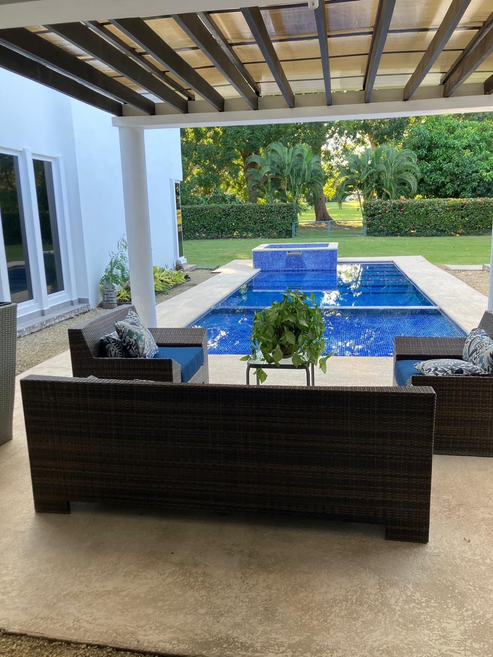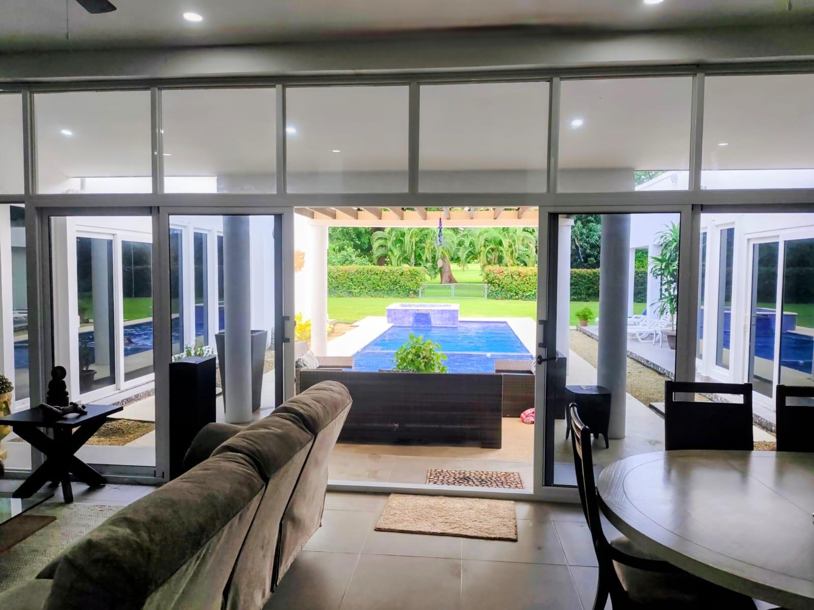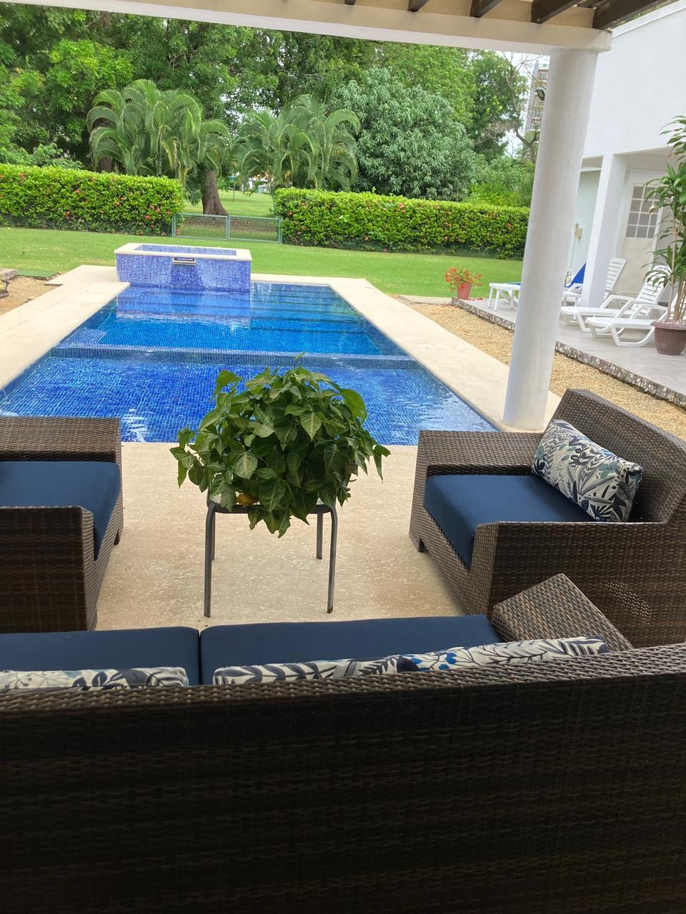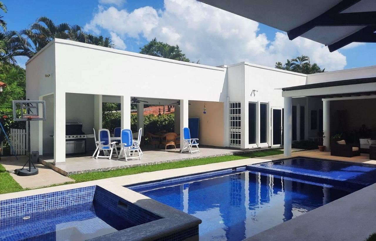 Beautiful residence located in the Coronado Golf Club, with 1,250 square meters of land, with the possibility of purchasing another adjacent 1,250 square meter lot: It consists of 4 bedrooms, the master bedroom with a walk-in closet and bathroom, 3 secondary bedrooms, each with its own private bathroom and walk-in closet, a bathroom and a maid's bathroom. Two storage rooms, one inside and one outside. Enclosed laundry room, an inside and outside storage room, many open areas, and an outdoor terrace and BBQ area. Power generator. Large spaces. Indoor dining room, with a recently remodeled kitchen, and laundry room. Spectacular outdoor terrace with dining and outdoor living room. BBQ area, pool with water heater and whirlpool jacuzzi, children's area, and trees and ornamental plants for the enjoyment of the area with your family. Beautiful skylights. 3 covered parking spaces and several additional spaces. Wooden security doors. The spacious living space provides light and fresh air throughout the residence. Air conditioning and ceiling fans are included. Possible access to the Golf Club, Beach Club, and Club Coronado facilities, and the option to purchase a golf club share for golf enthusiasts. This is a perfect residence for a large family. It's lush with greenery, well-maintained, and offers plenty of space to enjoy the outdoors without the hustle and bustle of other areas. It's private, fenced, and has all the amenities within. Access to the beach is a 10-minute drive. Access to the Golf Club is a 5-minute walk. Access to major supermarkets, restaurants, shops, and public and private services is also available.