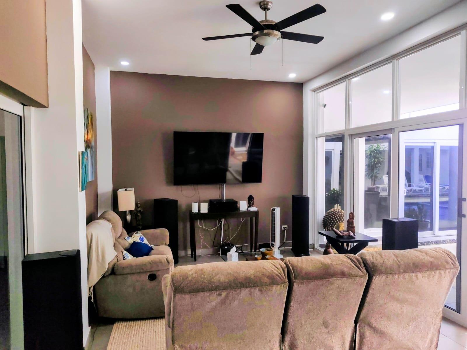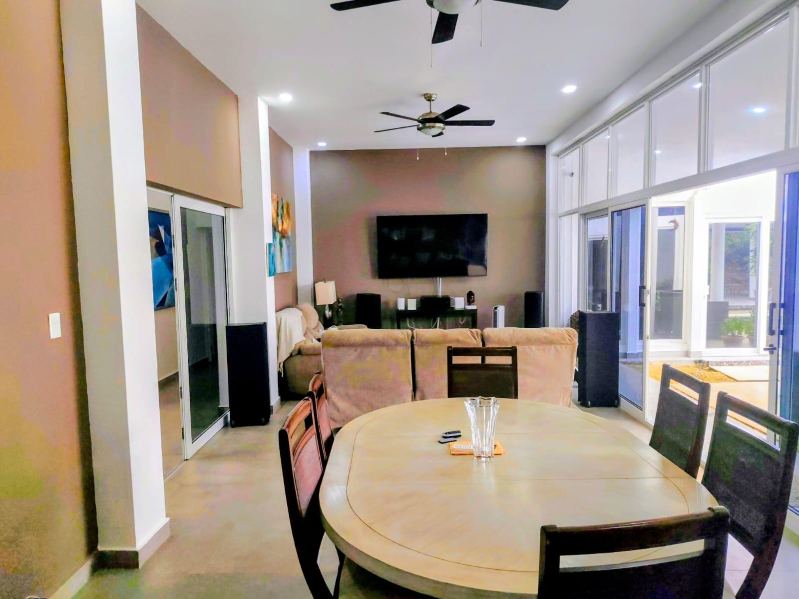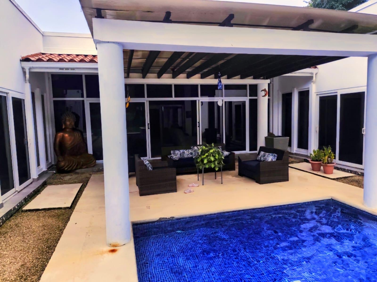 Beautiful residence located in the Coronado Golf Club, with 1,250 square meters of land, with the possibility of purchasing another adjacent 1,250 square meter lot: It consists of 4 bedrooms, the master bedroom with a walk-in closet and bathroom, 3 secondary bedrooms, each with its own private bathroom and walk-in closet, a bathroom and a maid's bathroom. Two storage rooms, one inside and one outside. Enclosed laundry room, an inside and outside storage room, many open areas, and an outdoor terrace and BBQ area. Power generator. Large spaces. Indoor dining room, with a recently remodeled kitchen, and laundry room. Spectacular outdoor terrace with dining and outdoor living room. BBQ area, pool with water heater and whirlpool jacuzzi, children's area, and trees and ornamental plants for the enjoyment of the area with your family. Beautiful skylights. 3 covered parking spaces and several additional spaces. Wooden security doors. The spacious living space provides light and fresh air throughout the residence. Air conditioning and ceiling fans are included. Possible access to the Golf Club, Beach Club, and Club Coronado facilities, and the option to purchase a golf club share for golf enthusiasts. This is a perfect residence for a large family. It's lush with greenery, well-maintained, and offers plenty of space to enjoy the outdoors without the hustle and bustle of other areas. It's private, fenced, and has all the amenities within. Access to the beach is a 10-minute drive. Access to the Golf Club is a 5-minute walk. Access to major supermarkets, restaurants, shops, and public and private services is also available.