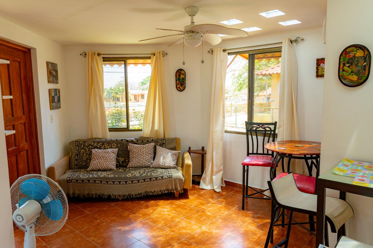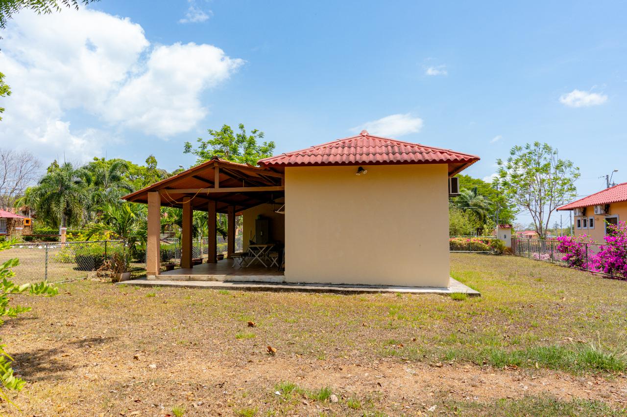 This charming house is fenced. Fully equipped bright kitchen, two terraces, one front and one back. Two hammocks on the back terrace. The main bedroom also works as a study since it has an independent exit from the house. It has a sink built into one corner and space for a kitchen. There is a social area and a swimming pool within the community. -Antón and Rio Hato offers: one of the main supermarkets. Fish market. Restaurants. Malls. -Located approximately 2.5 hours from Panama City and about 6 minutes from the Interamericana (highway) -The beach (Farallón) is only about 25 minutes from there. -Close to gas stations, pharmacies and small grocery stores as well -20 minutes from Penonome by car