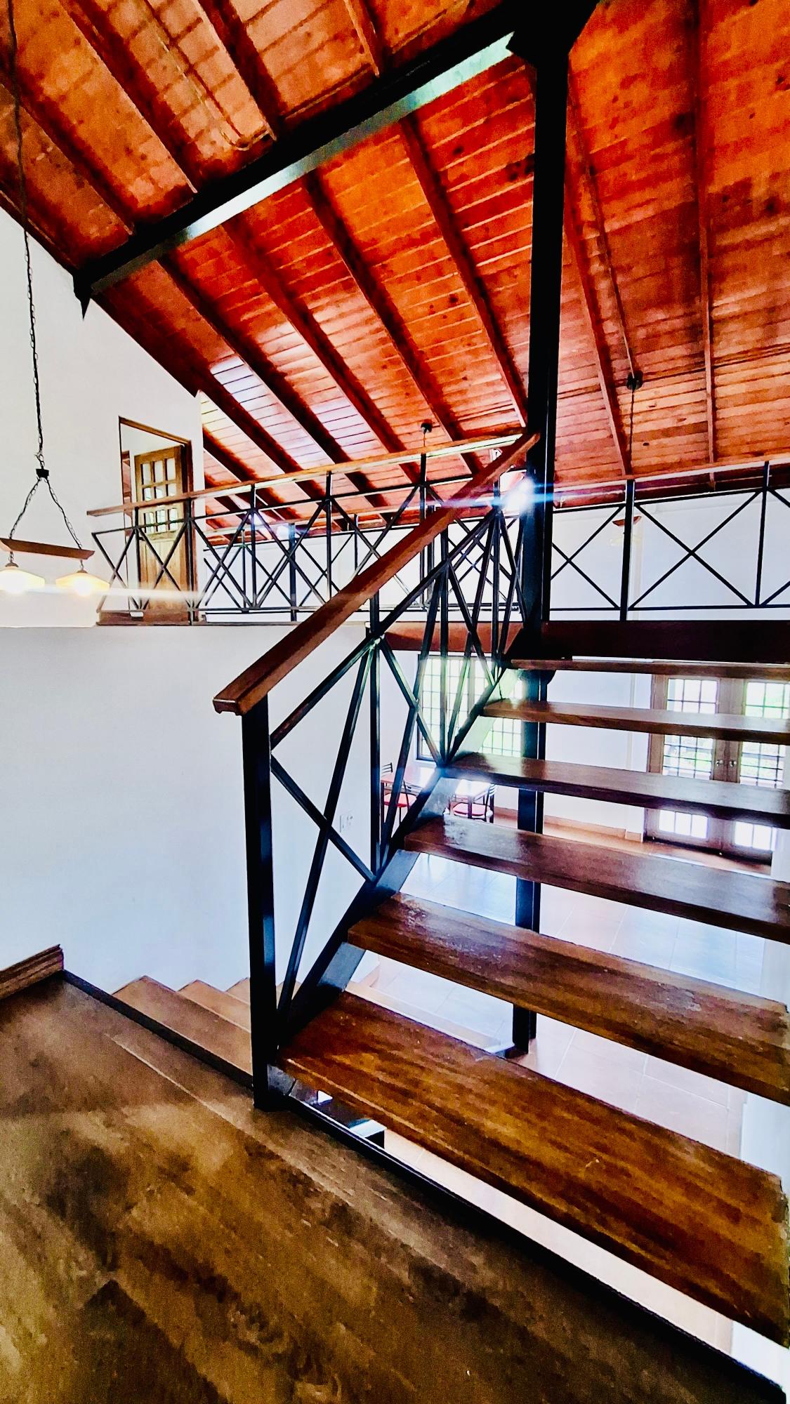 3 levels, wood-burning fireplace, has a storage room, electric gate.