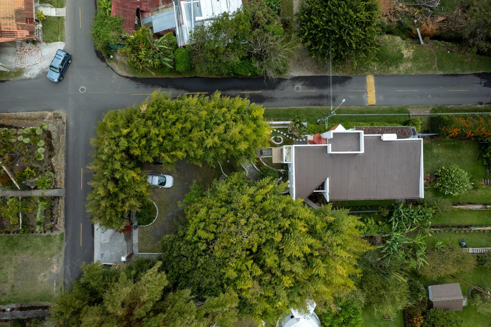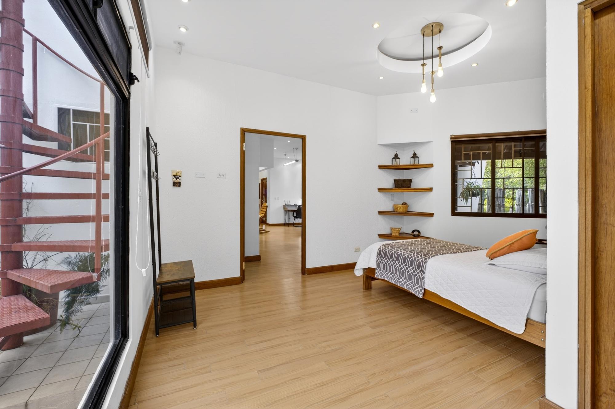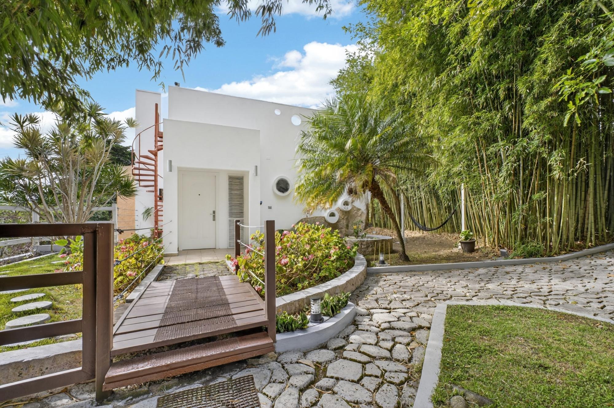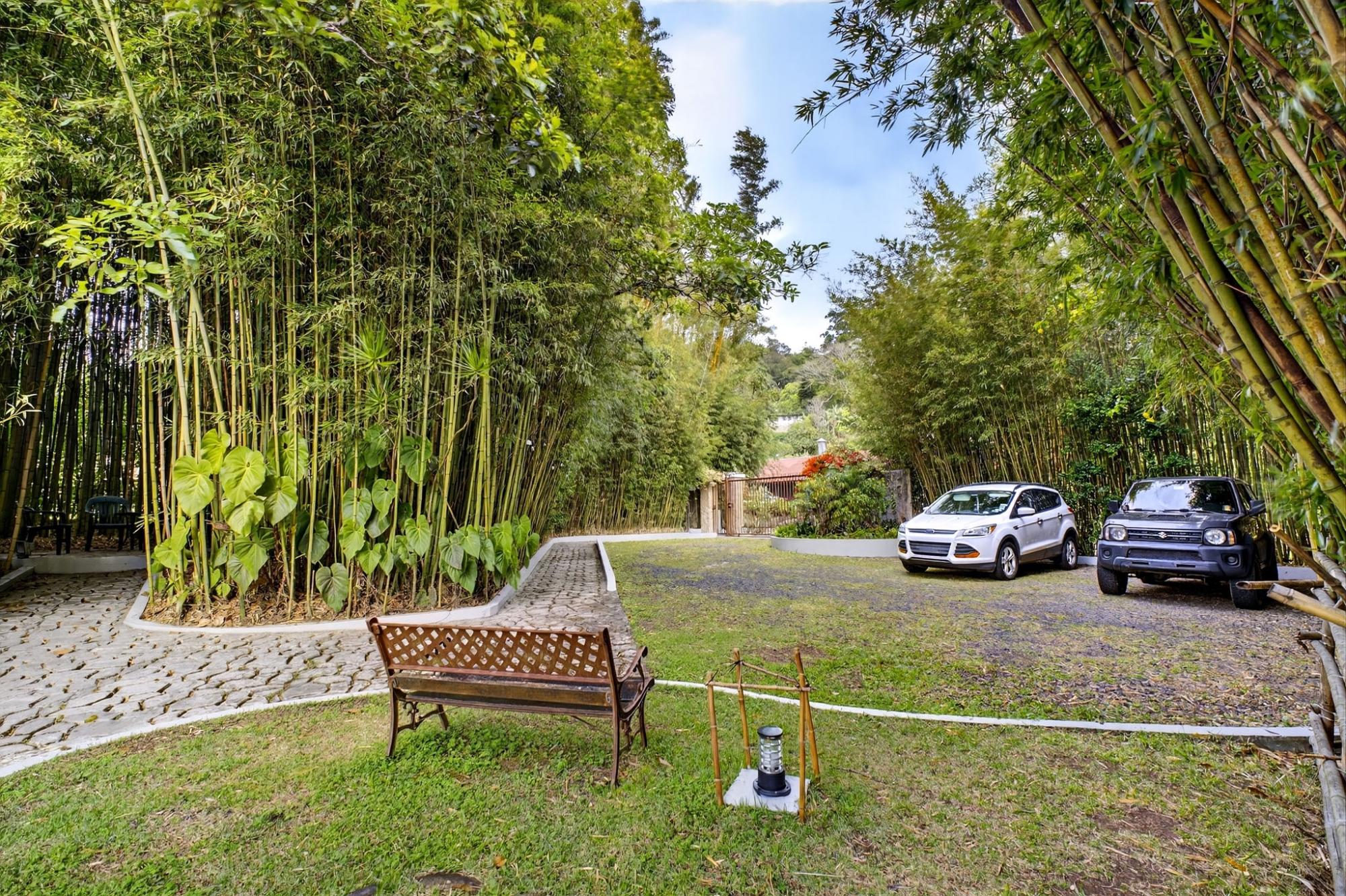 Contemporary 3BR residence on a rare 800 m² corner lot in downtown Boquete. Currently operating as a consistently rented short-term rental, this property offers immediate income and strong upside potential. High ceilings, abundant natural light, rooftop access via spiral staircase, and lush bamboo landscaping create a private urban retreat within walking distance to restaurants, cafés, and shops. Stone pathways and curated garden seating enhance the guest experience. The lower level, currently used for storage, offers excellent potential for conversion to commercial space, office, gallery, or additional rental unit. Prime in-town location with expansion flexibility and mixed-use appeal.