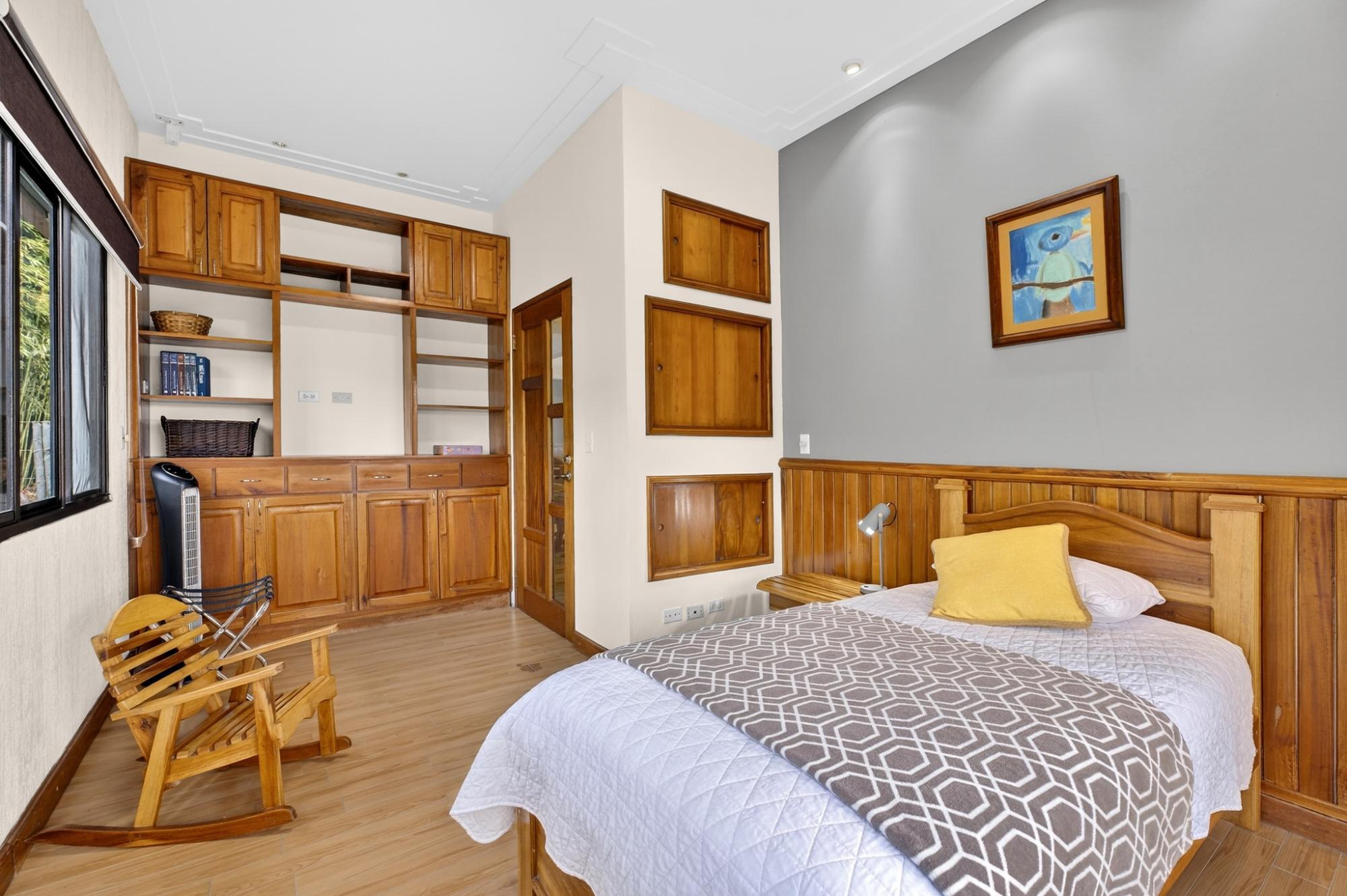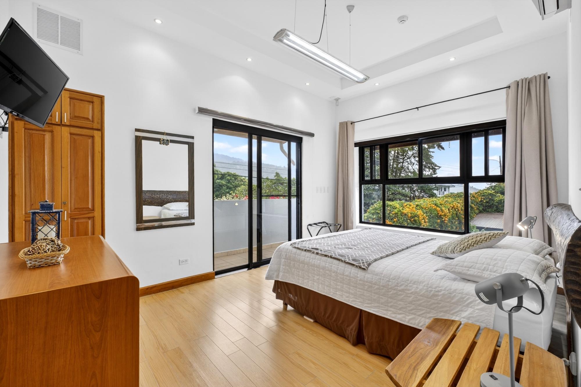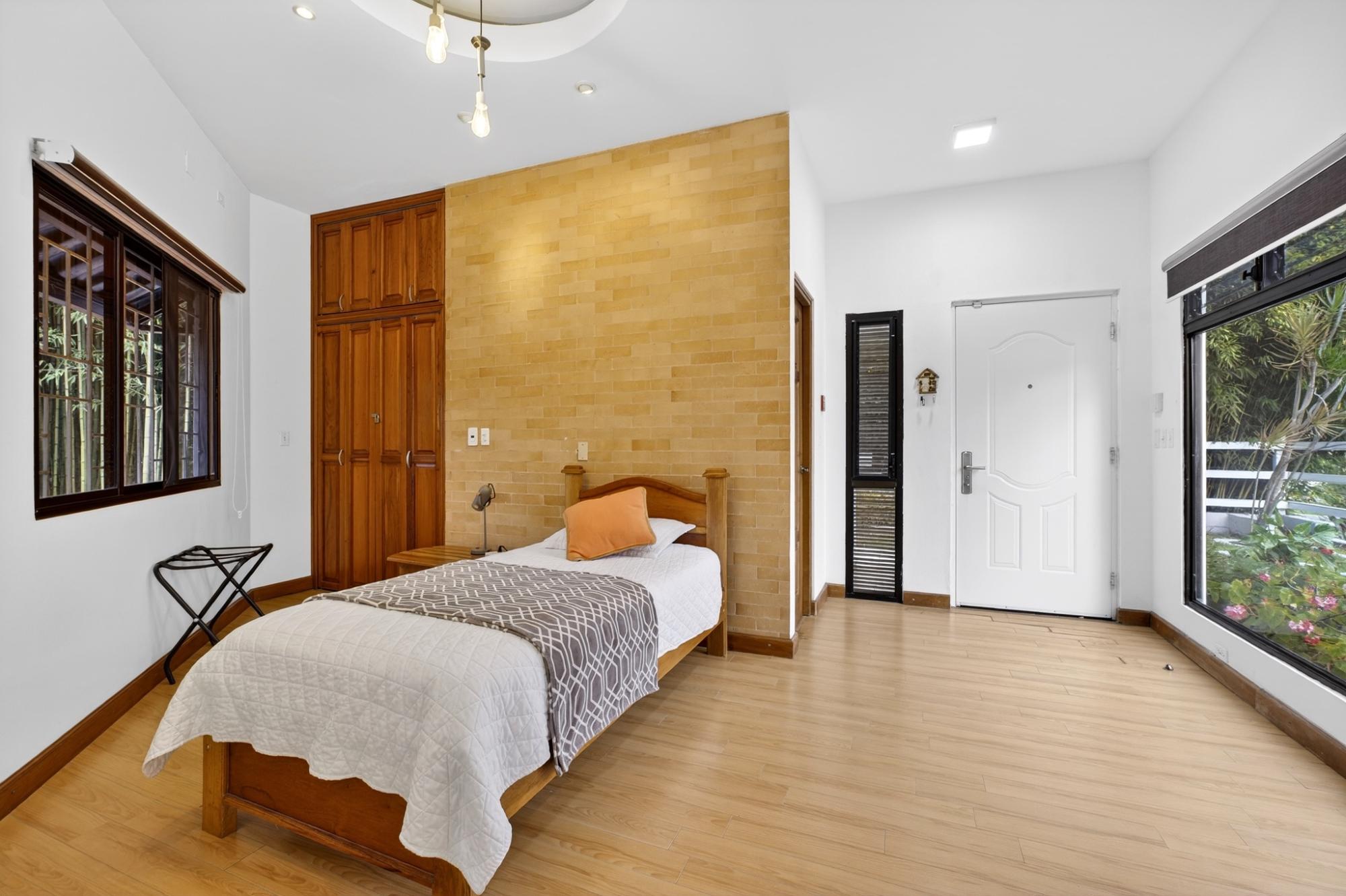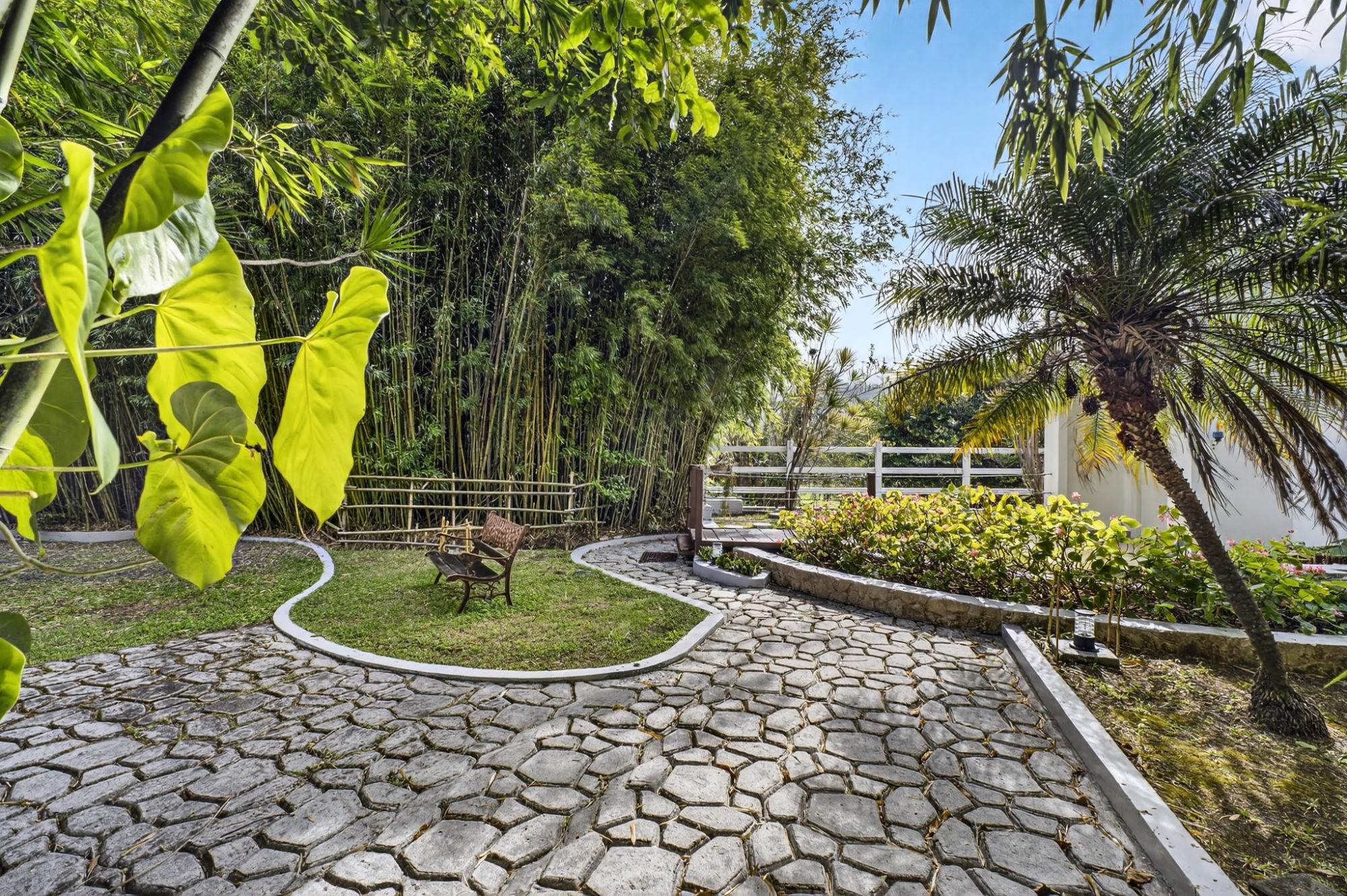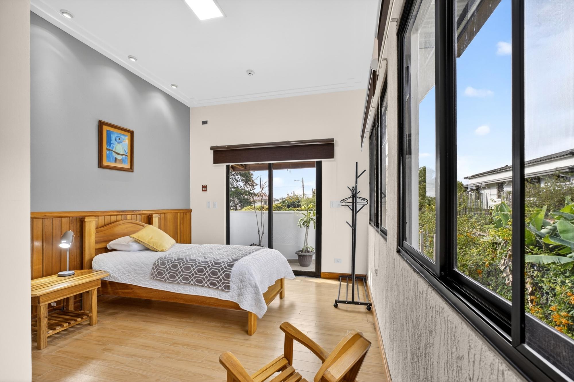 Contemporary 3BR residence on a rare 800 m² corner lot in downtown Boquete. Currently operating as a consistently rented short-term rental, this property offers immediate income and strong upside potential. High ceilings, abundant natural light, rooftop access via spiral staircase, and lush bamboo landscaping create a private urban retreat within walking distance to restaurants, cafés, and shops. Stone pathways and curated garden seating enhance the guest experience. The lower level, currently used for storage, offers excellent potential for conversion to commercial space, office, gallery, or additional rental unit. Prime in-town location with expansion flexibility and mixed-use appeal.