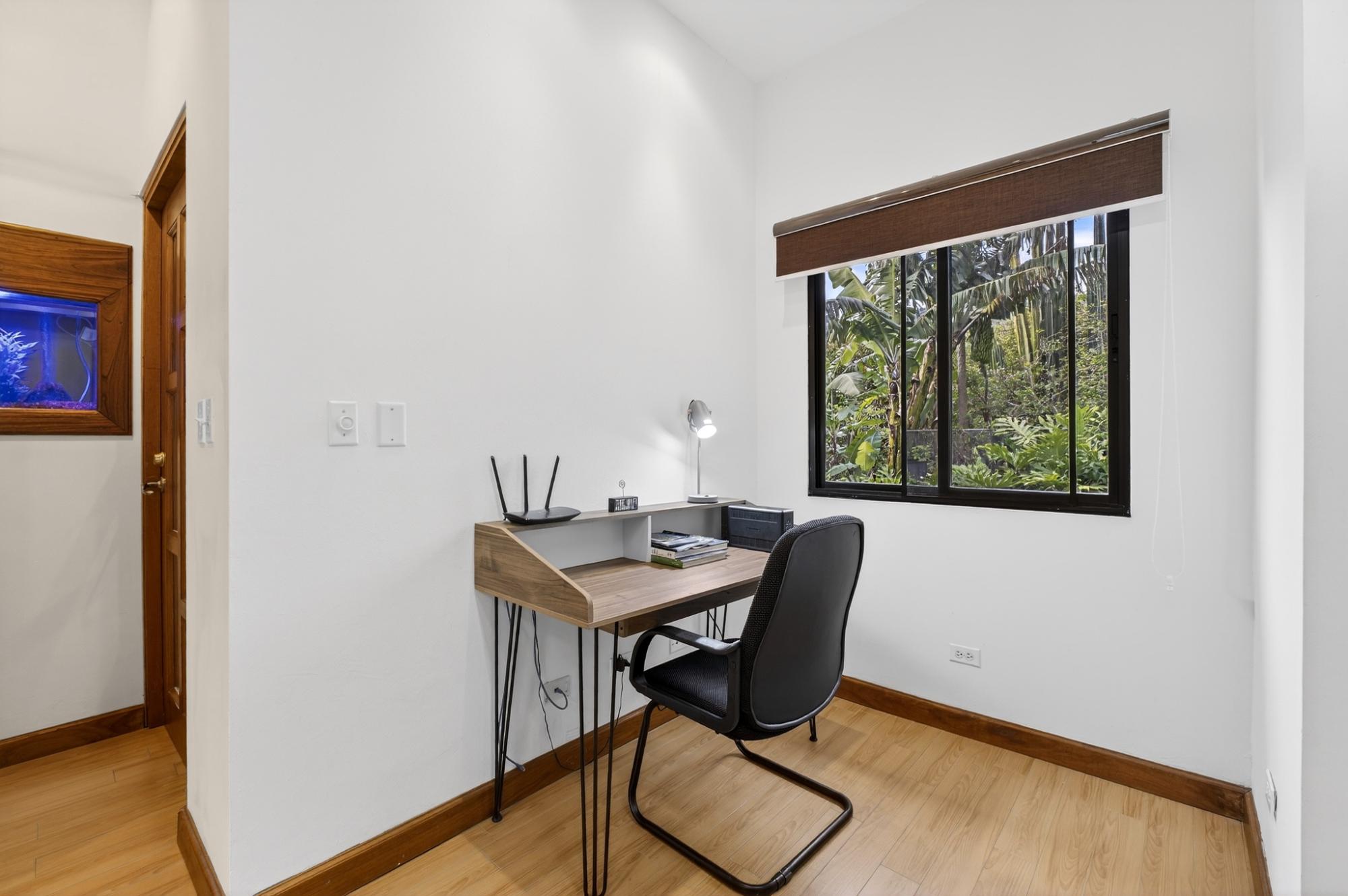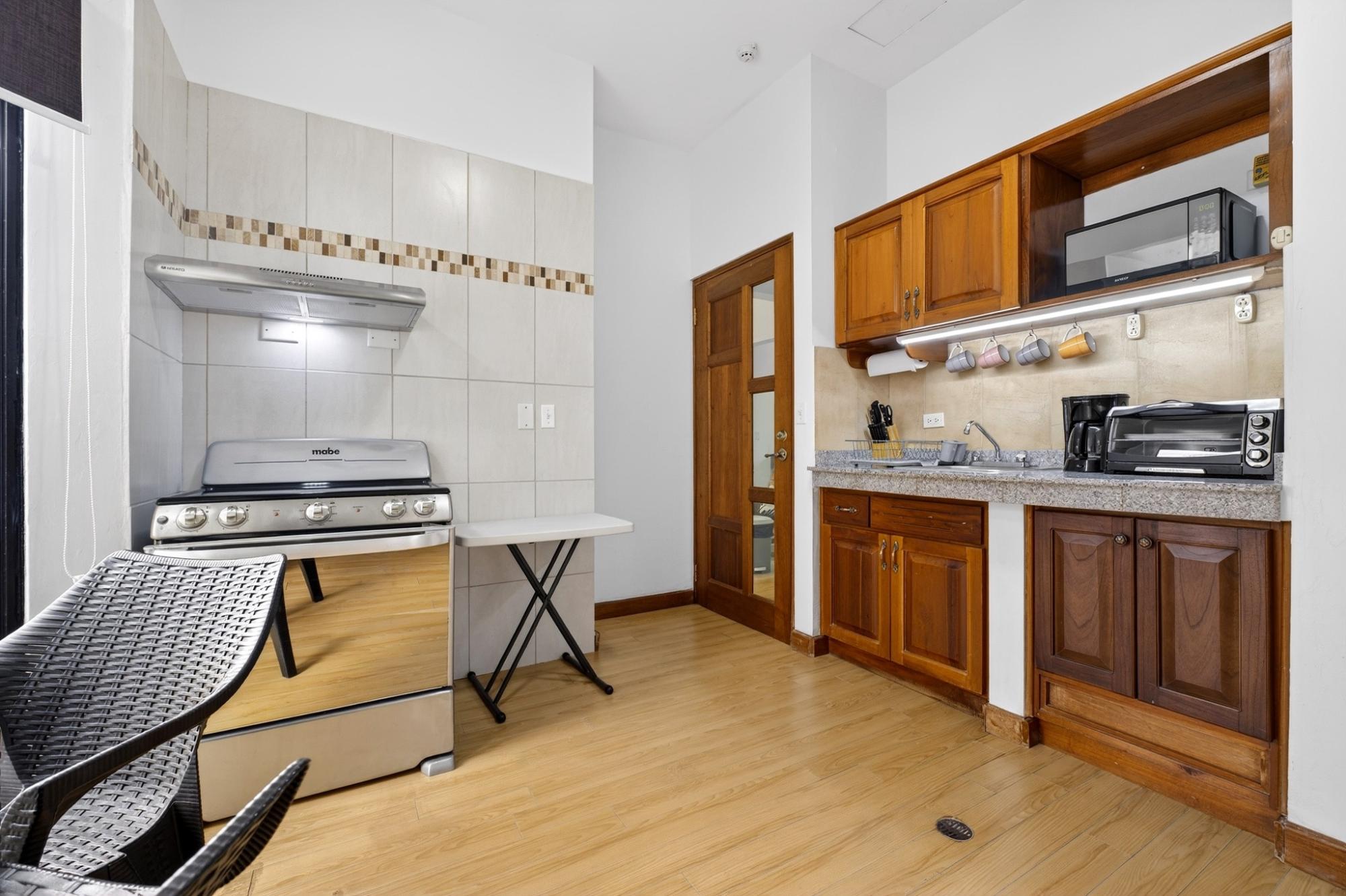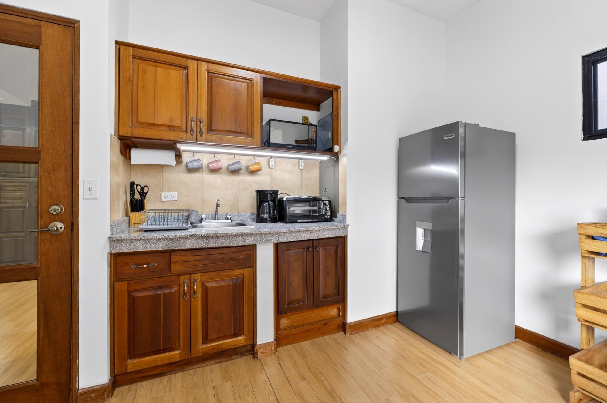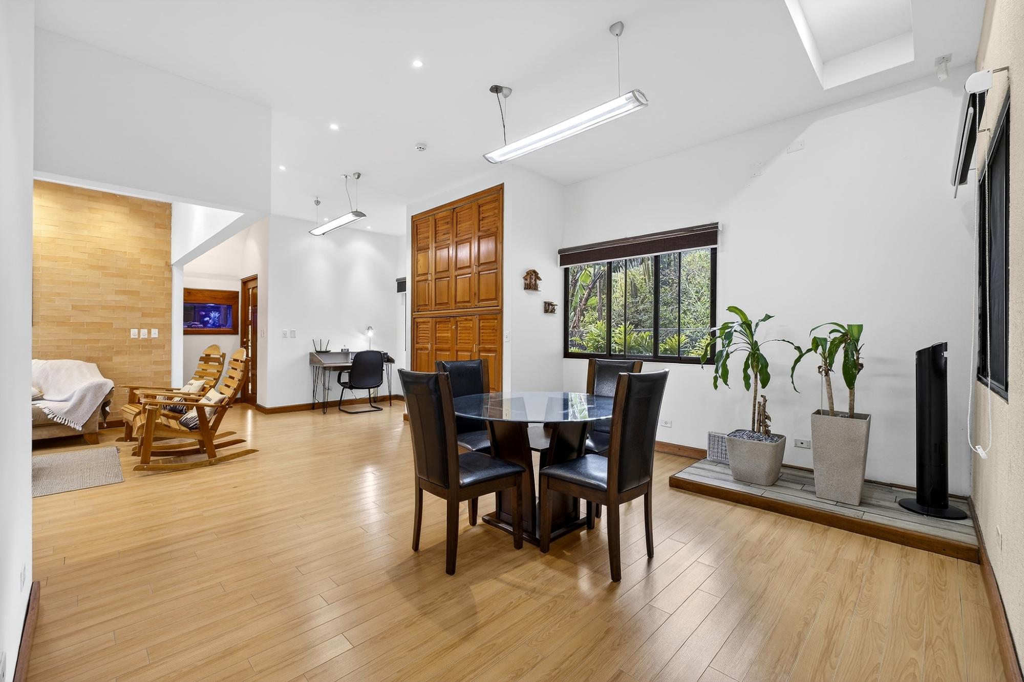Contemporary 3BR residence on a rare 800 m² corner lot in downtown Boquete. Currently operating as a consistently rented short-term rental, this property offers immediate income and strong upside potential. High ceilings, abundant natural light, rooftop access via spiral staircase, and lush bamboo landscaping create a private urban retreat within walking distance to restaurants, cafés, and shops. Stone pathways and curated garden seating enhance the guest experience. The lower level, currently used for storage, offers excellent potential for conversion to commercial space, office, gallery, or additional rental unit. Prime in-town location with expansion flexibility and mixed-use appeal.