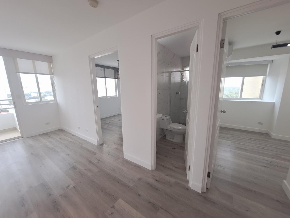 This cozy apartment has been remodeled with modern finishes, offering a fresh and functional atmosphere. It features: 2 spacious and well-lit bedrooms,1 renovated bathroom with premium fixtures and ceramic finishes, Open-concept living and dining area with optimized spaces, Kitchen with sintered quartz countertops and updated cabinetry, High-tech gray vinyl flooring, Balcony with panoramic west-facing views One covered parking space. The property is located in a building with 24/7 security, social area, swimming pool, gym, and more. Its strategic location provides easy access to main roads, schools, shopping centers, and supermarkets. Perfect for those seeking a move-in ready home or a secure investment in a high-appreciation area. Contact us today and discover your next new home!