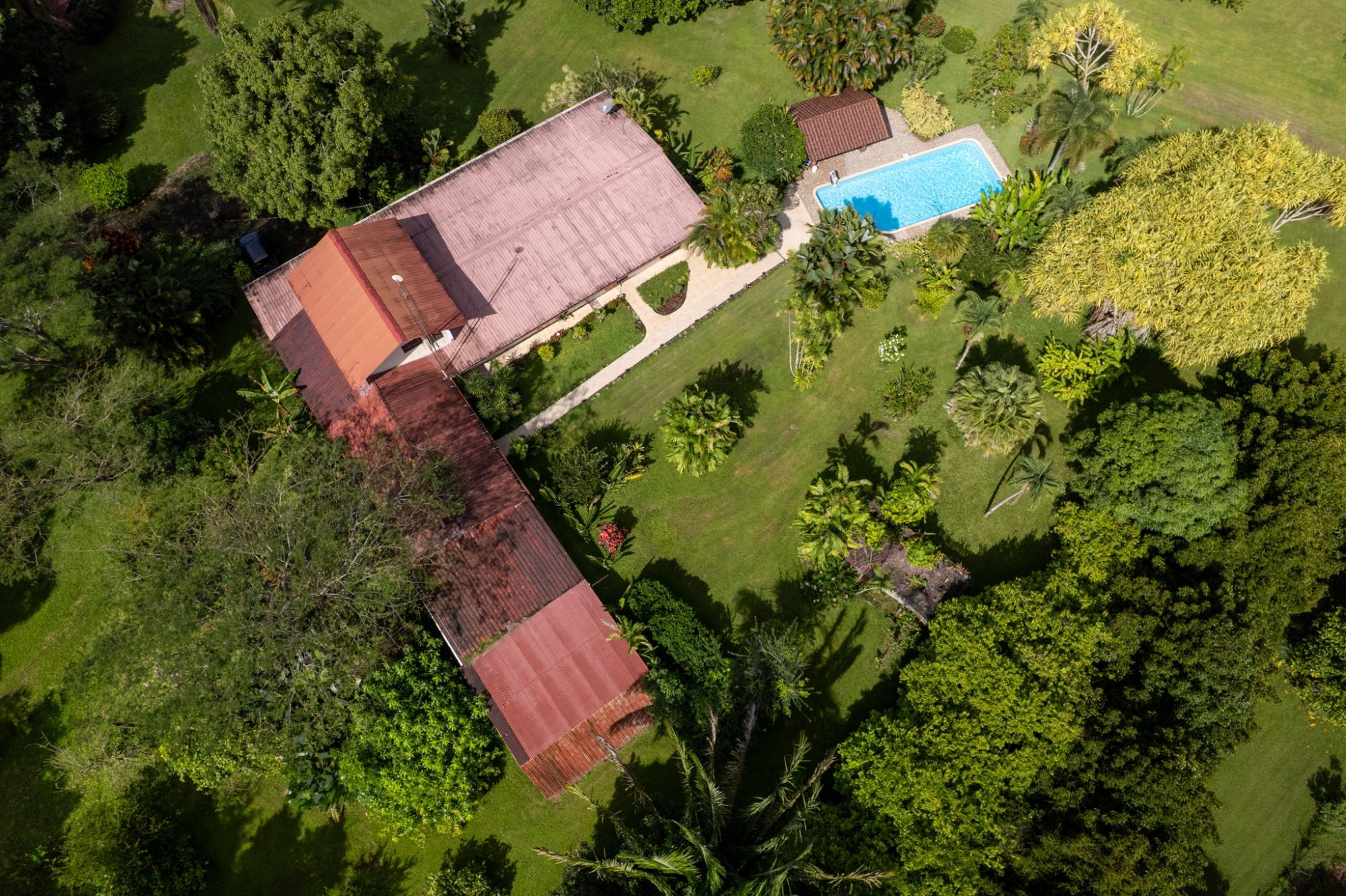 Welcome to an exceptional estate where understated luxury meets natural abundance. Nestled in the temperate highlands of Bugaba, this nearly 3-hectare fully titled property offers a rare mix of elegance, privacy, and self-sufficiency just minutes from the Pan-American Highway with easy paved-road access. Through the gated entry, a cobblestone-style drive leads to the 2,200 sq ft furnished main residence designed for comfort and open-air entertaining. Expansive covered verandas invite year-round enjoyment, while a private pool, ambient lighting, and lush tropical landscaping create a setting of refined leisure. Features include a separate upper-level guest quarters, resort-style pool with night lighting, private well, four-stall horse barn and workshop, flourishing orchards of avocado, citrus, and mango, plus a living privacy fence of fragrant limoncello hedges. An adjoining ranch of up to 35 hectares is also available in 5-6 hectare parcels for equestrian use, boutique agriculture, or further estate development.