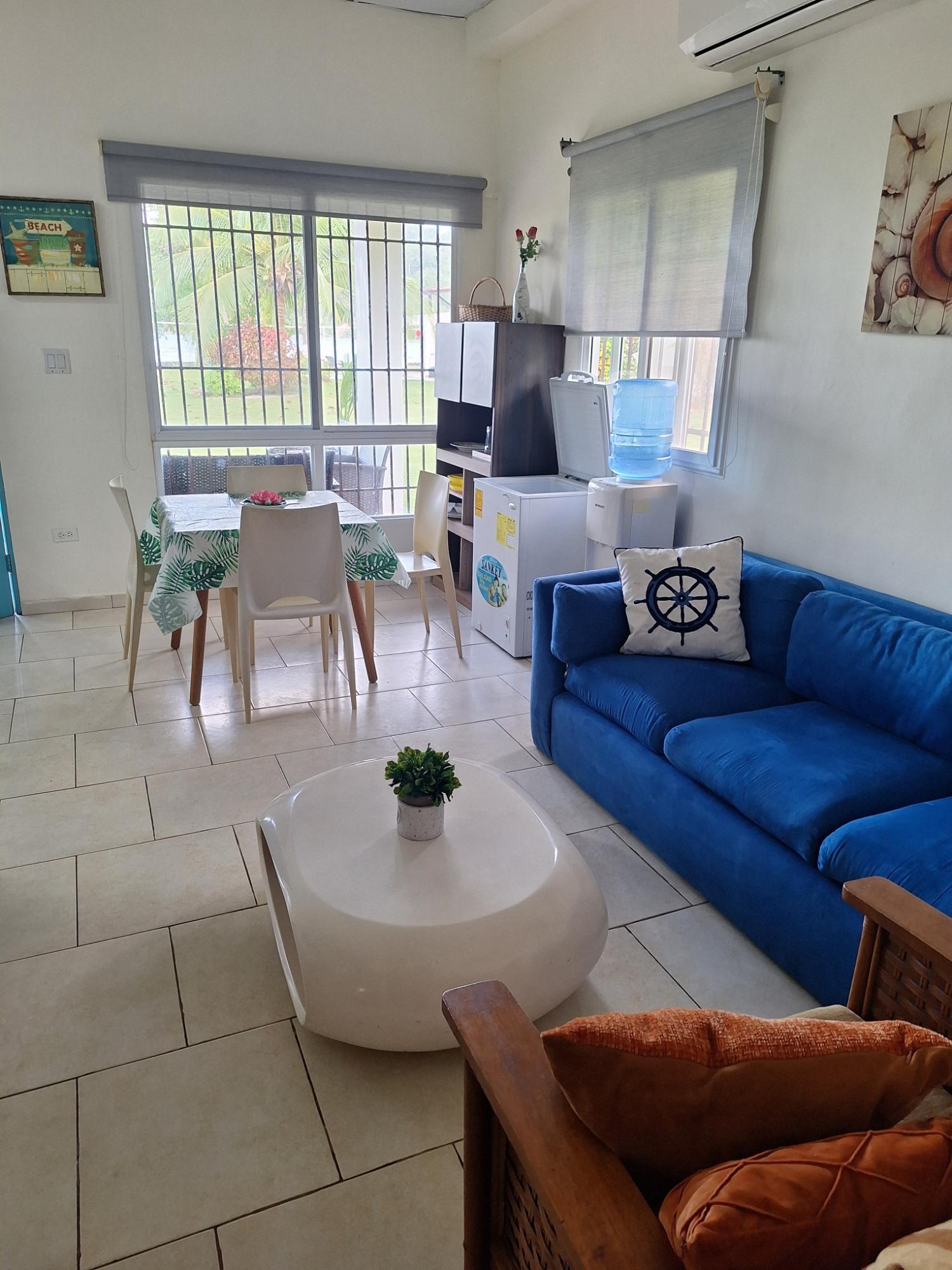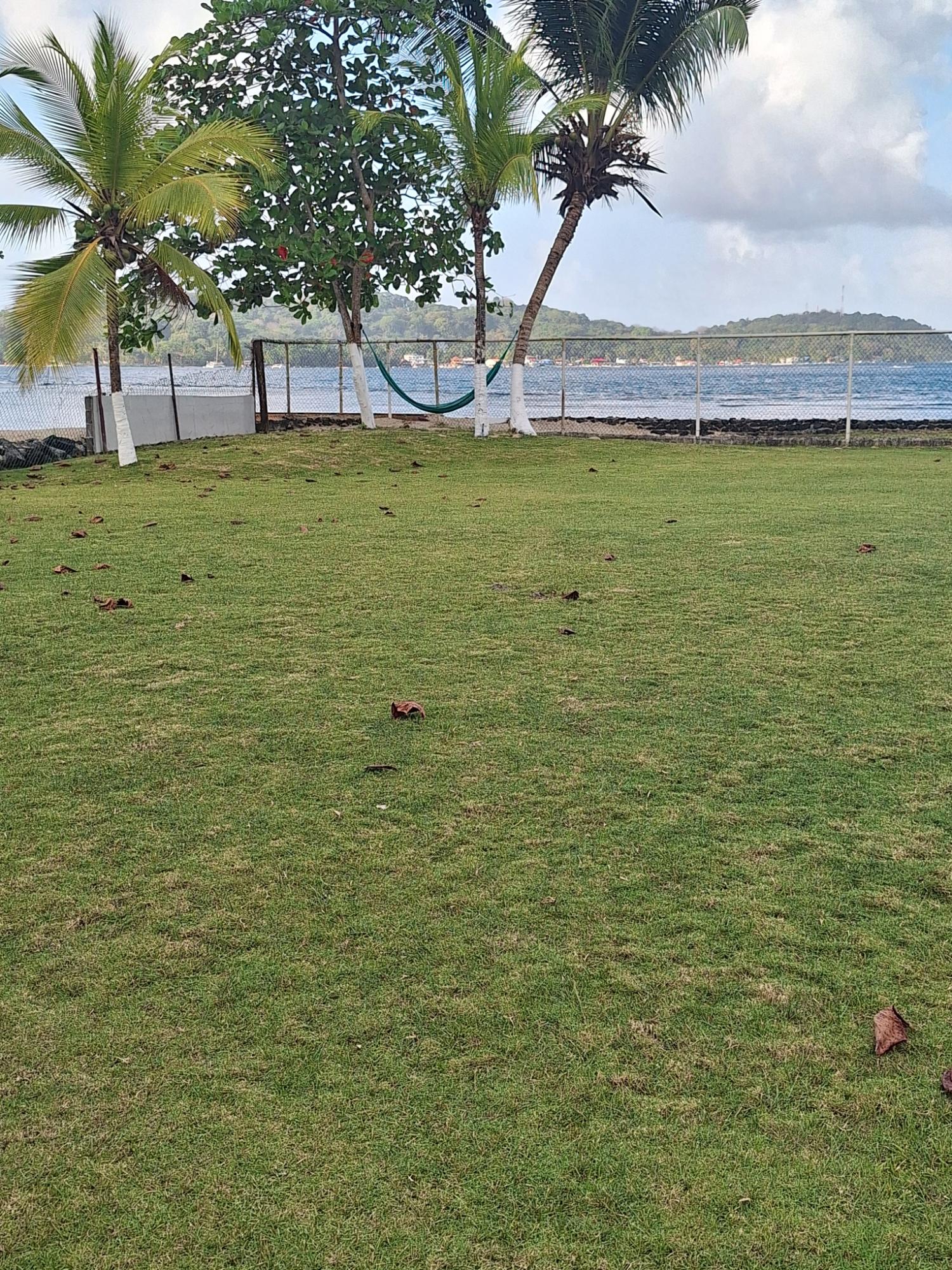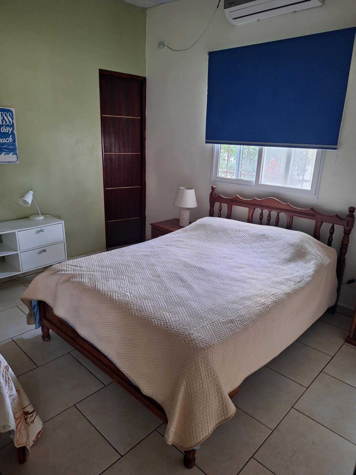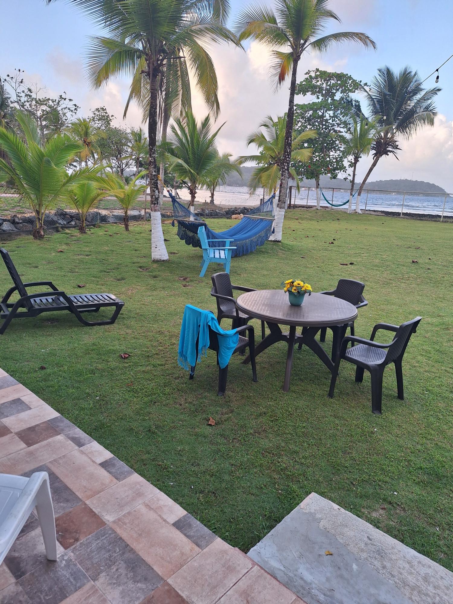 The ocean-view house has a huge patio and two bedrooms, two bathrooms, a living-dining room, a kitchen, a terrace, and an outdoor shower. The property has a town aqueduct and a spring that provides crystal-clear water year-round.