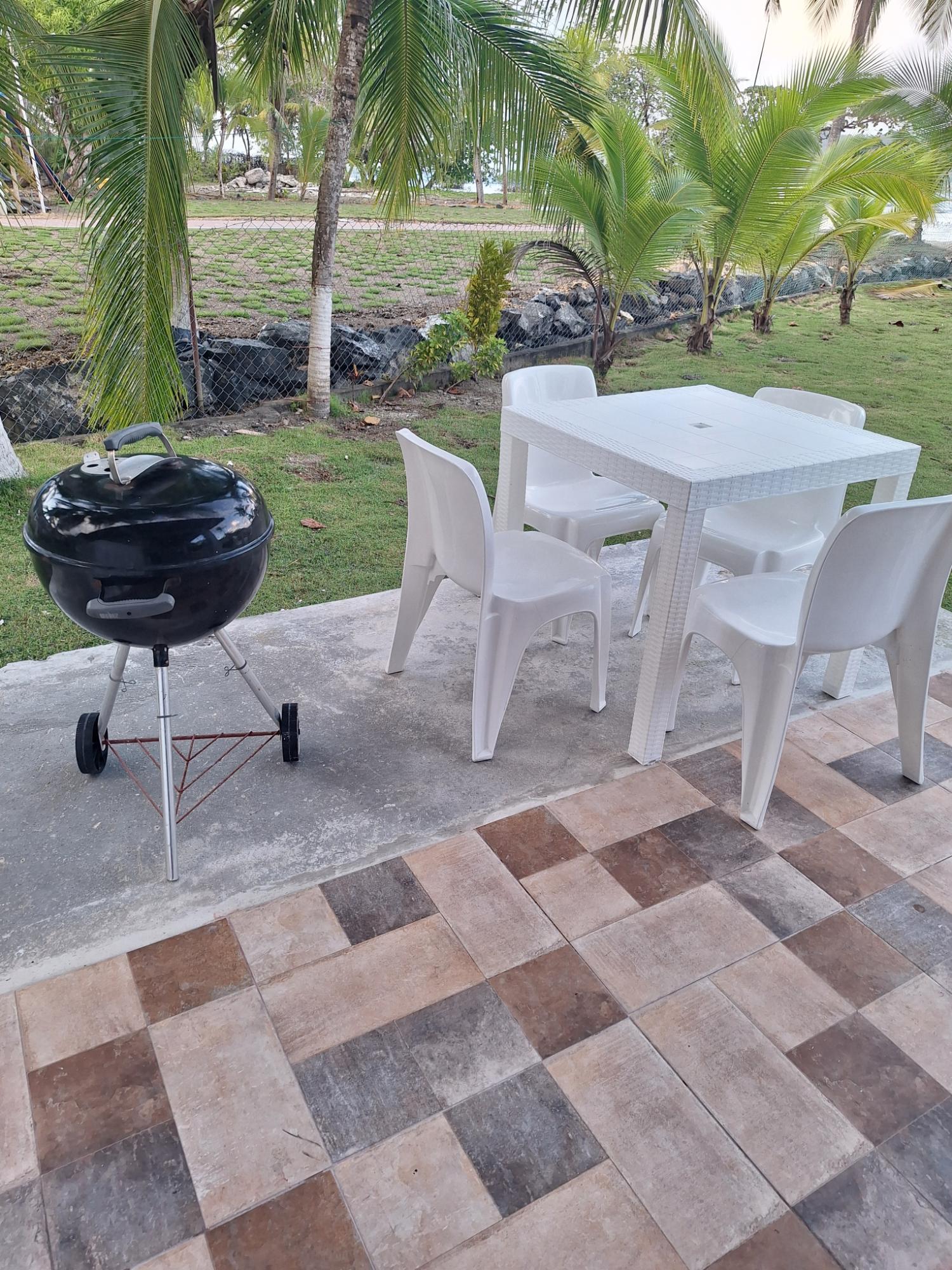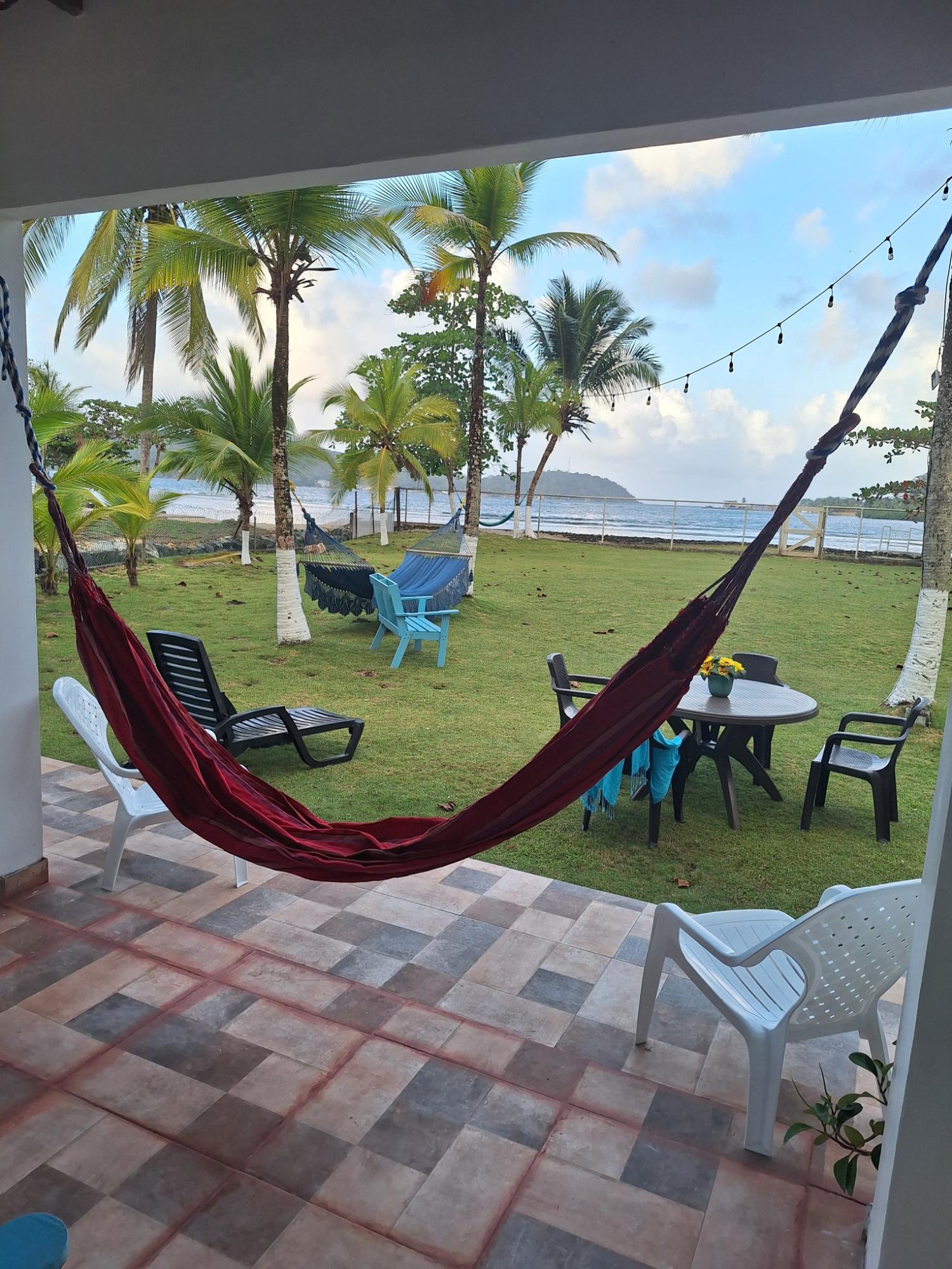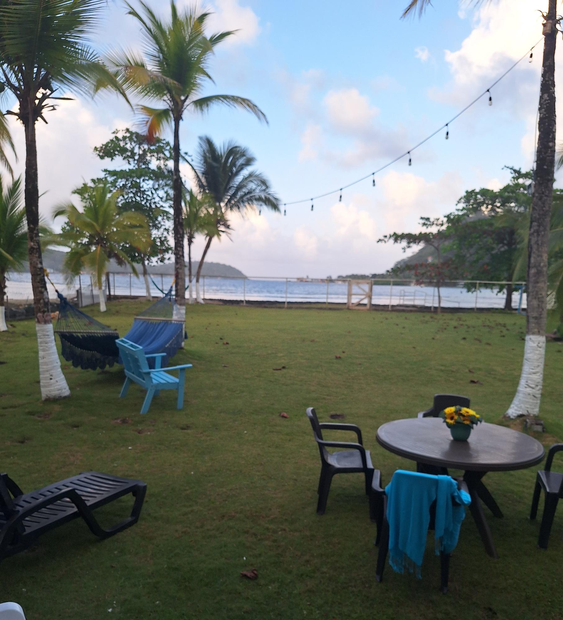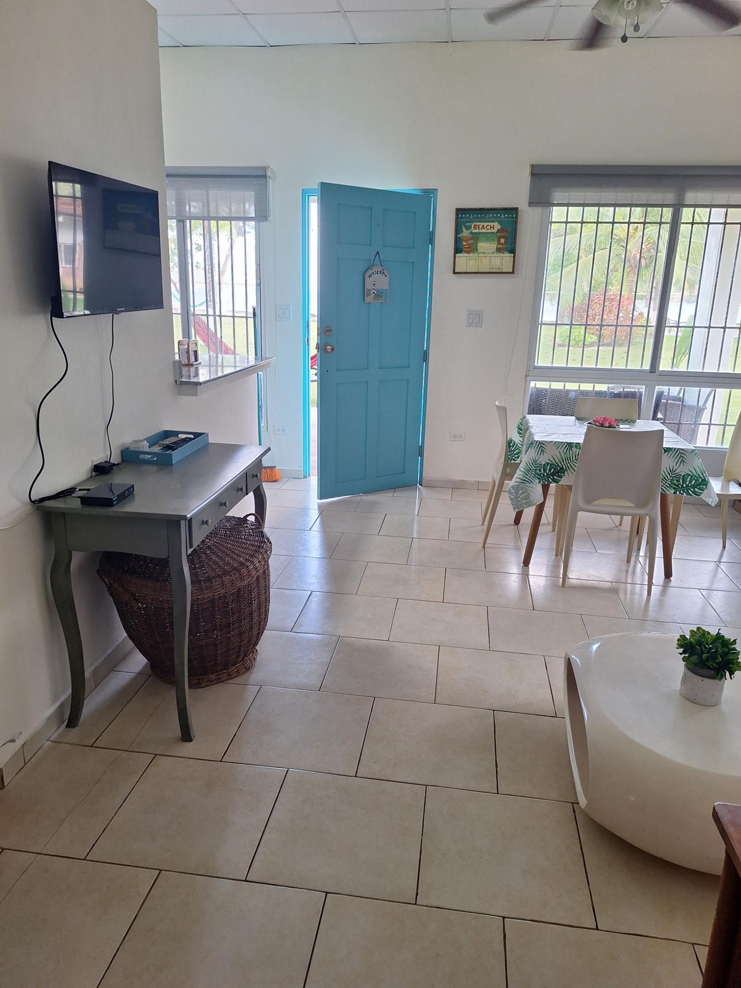 The ocean-view house has a huge patio and two bedrooms, two bathrooms, a living-dining room, a kitchen, a terrace, and an outdoor shower. The property has a town aqueduct and a spring that provides crystal-clear water year-round.