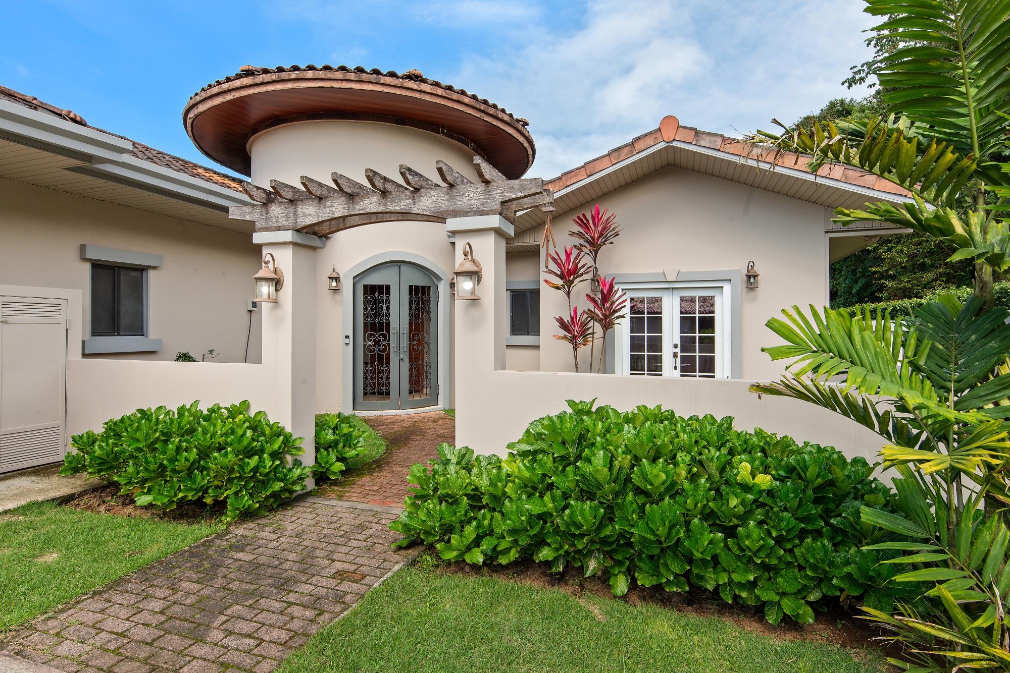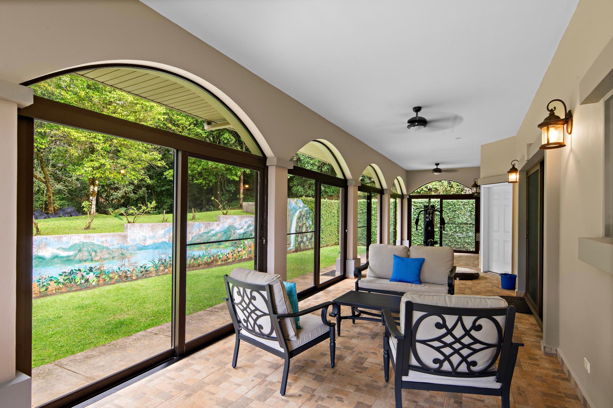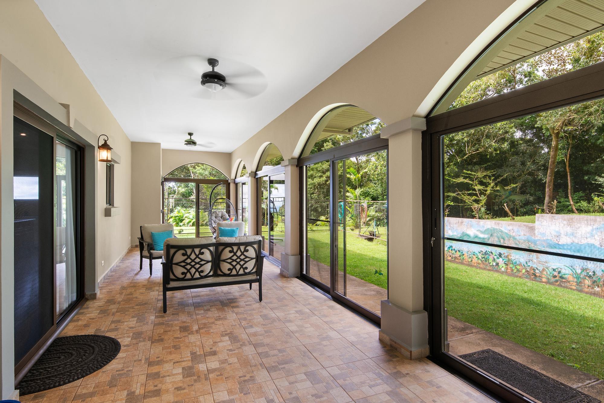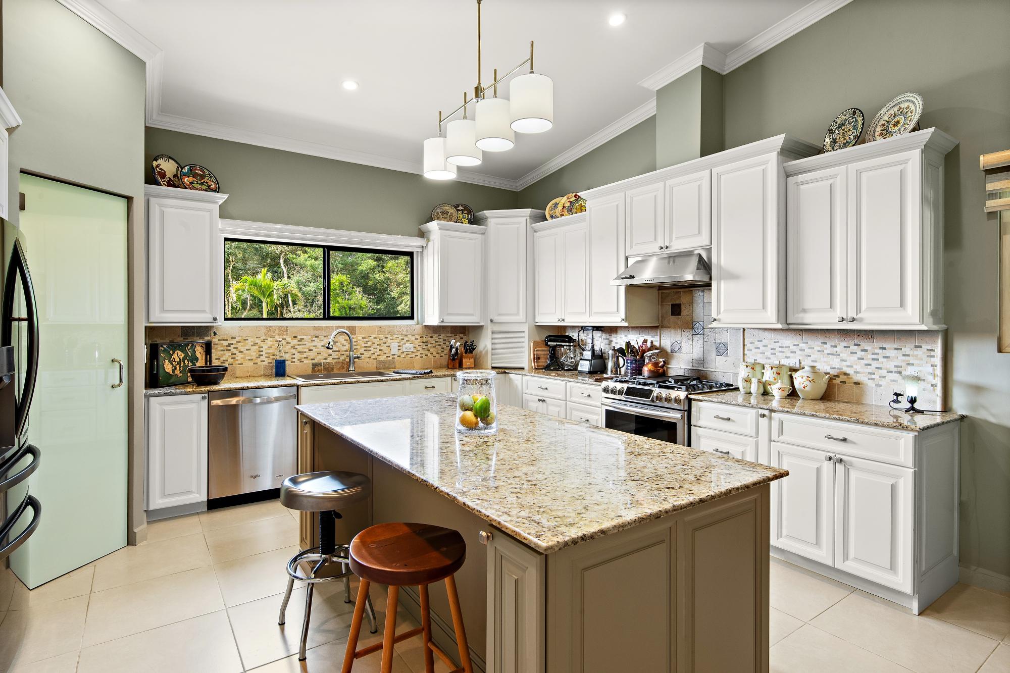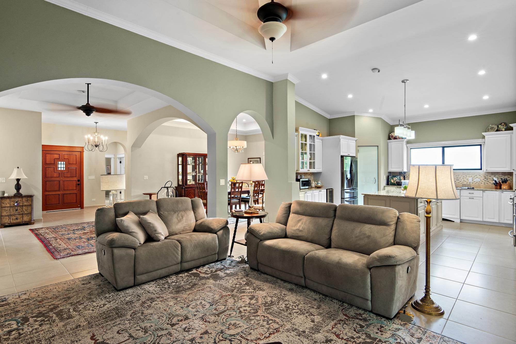 Discover an exceptional blend of classic elegance and modern luxury in this sprawling single-level home, nestled on a double lot within a lush, private, and secure setting. With top-tier construction and extensive high-end features, this property offers a sophisticated, worry-free lifestyle. The estate boasts attractive terracotta rooflines and beautiful tropical landscaping. This is a property built for comfort and security: Security & Peace of Mind:Enjoy enhanced security with furtec security screens + 24 hour security provided by Lucero and a robust 18-hour battery backup system for uninterrupted living. Ready for Pets:The property features fencing already in place for dogs, ensuring a safe environment for your pets. Feature:The property includes a helipad outside. The home’s open-concept design flows perfectly into versatile spaces that embrace the tropical environment: Formal Dining Area:Defined by an elegant tray ceilingwith a chandelier, this space flows via French doors to the exterior. Enclosed Terrace:Enjoy the tropics year-round in the stunning, enclosed terrace. Featuring a vaulted ceiling and expansive arched glass sliding doors, it provides a bright, weather-protected space perfect for relaxing or entertaining. Along with a Matey exercise machine for staying in shape. The Atrium: An atrium brings beauty with a unique architectural feature. The beautifully designed kitchen and utility spaces are equipped with premium features for efficiency and enjoyment: Gourmet Kitchen:A chef’s delight featuring extensive white cabinetry, granite countertops, and a large central island.
